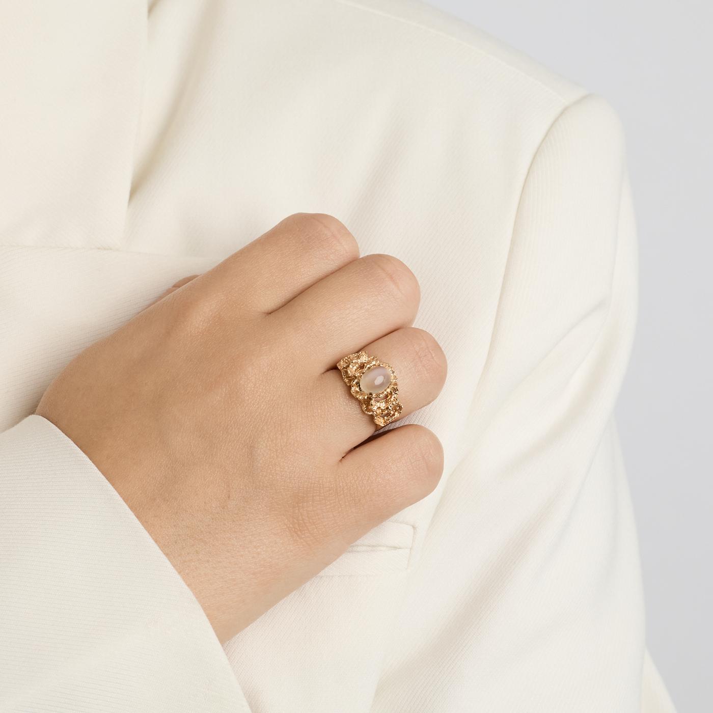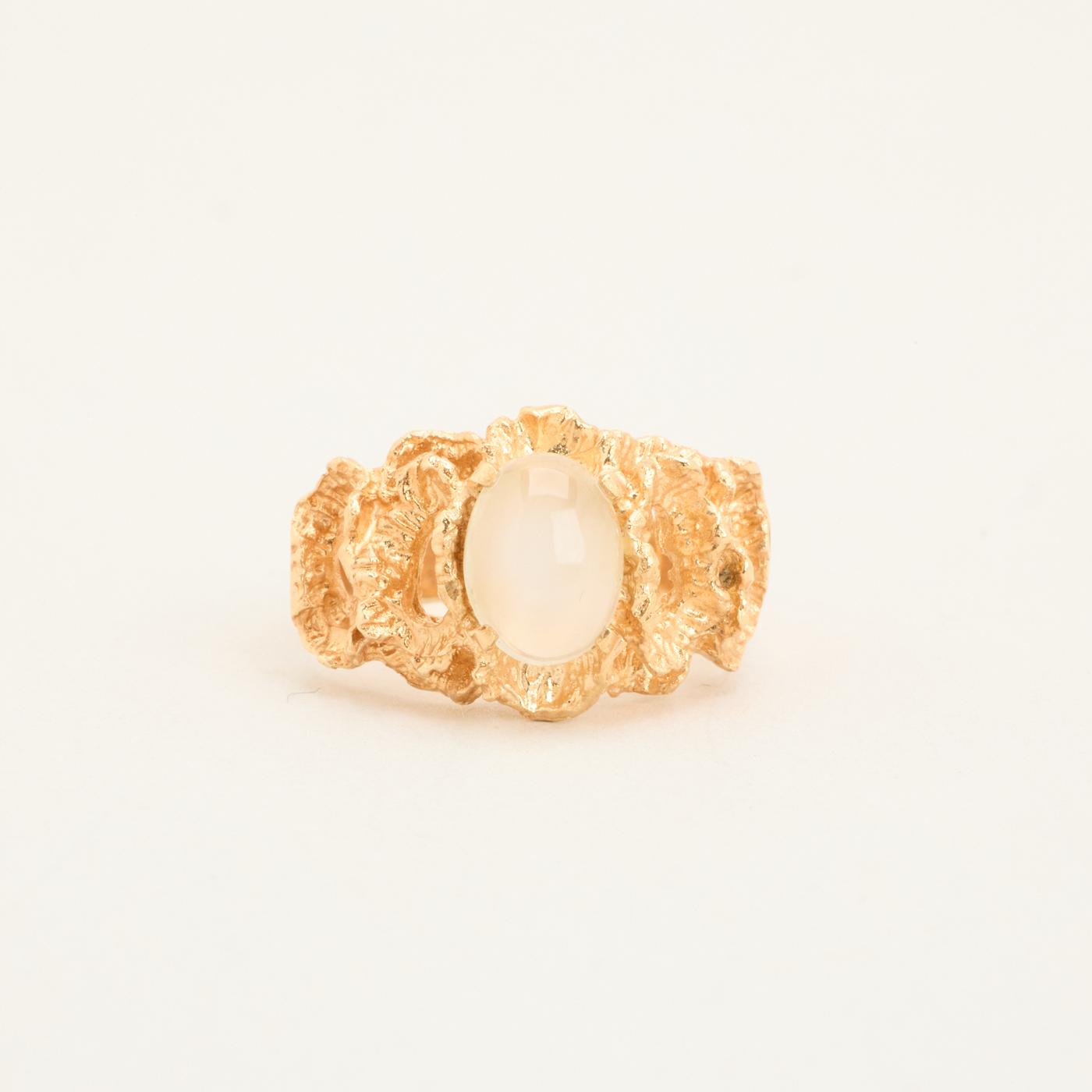 Gypsyring i 14K rosaguld med en månesten, Str. 53