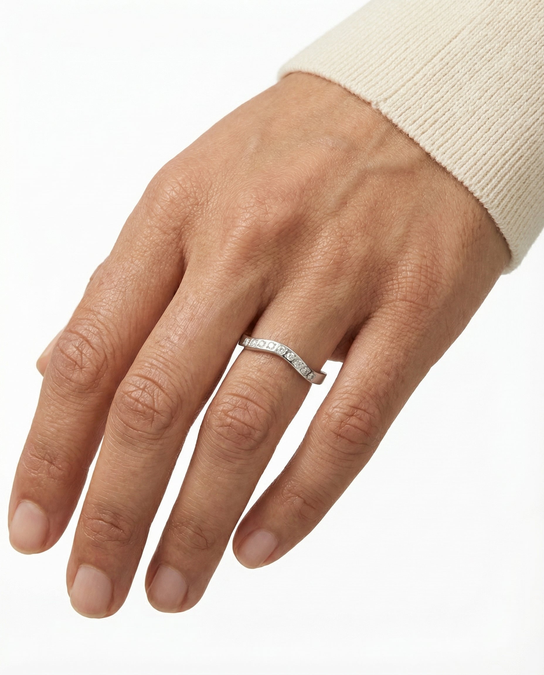 Bånd i 14K hvidguld med diamanter (0.06 ct), Str. 55