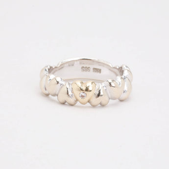 Hjertering med diamant (0.01 ct) i 14 karat str. 55