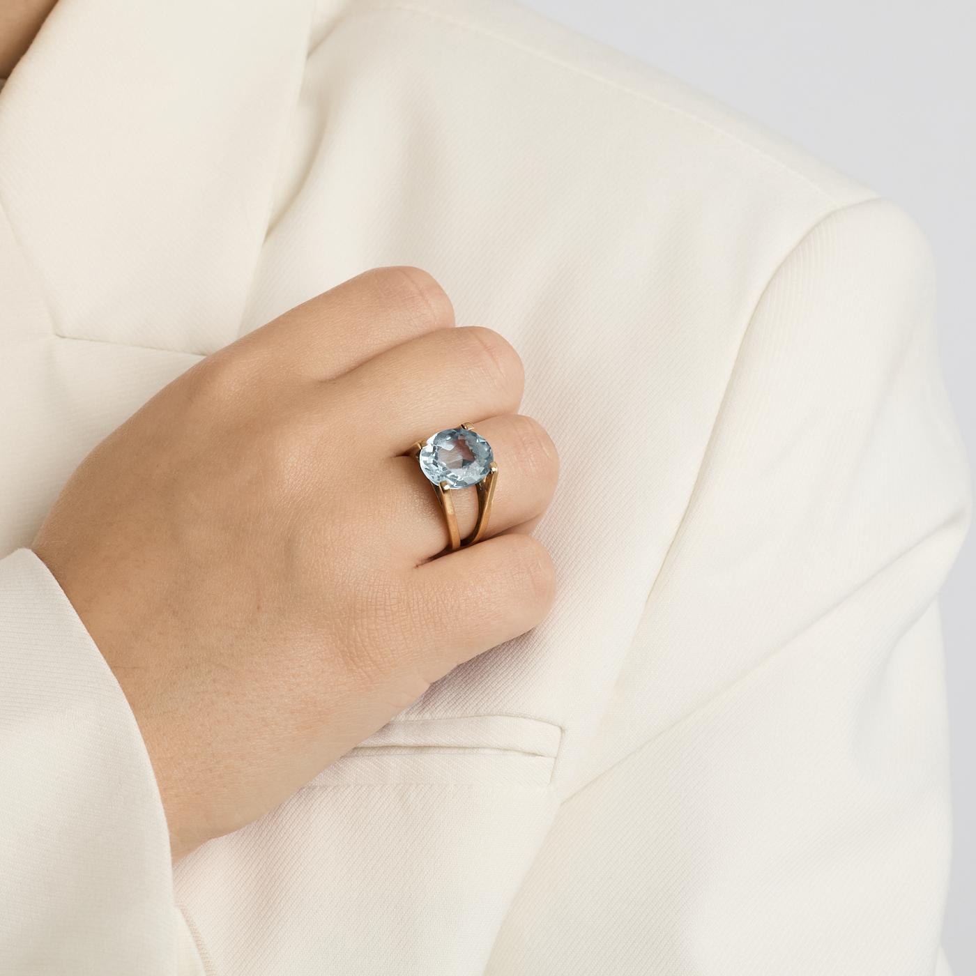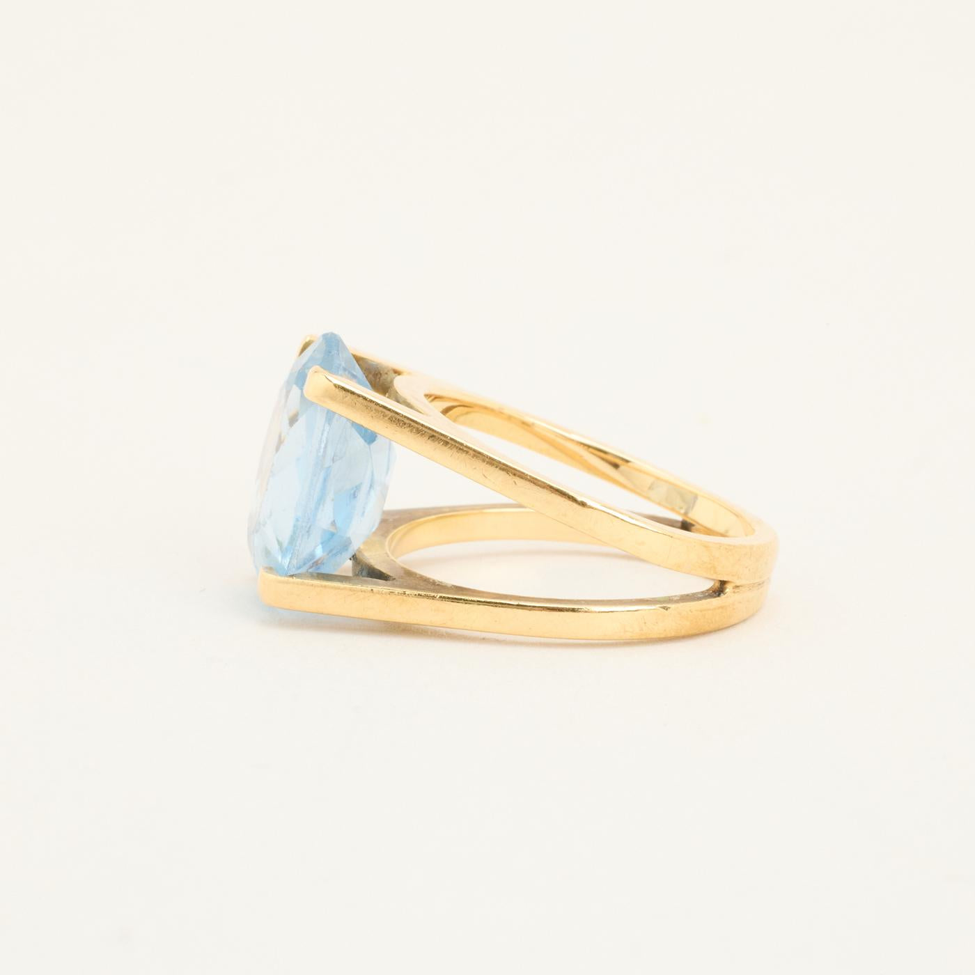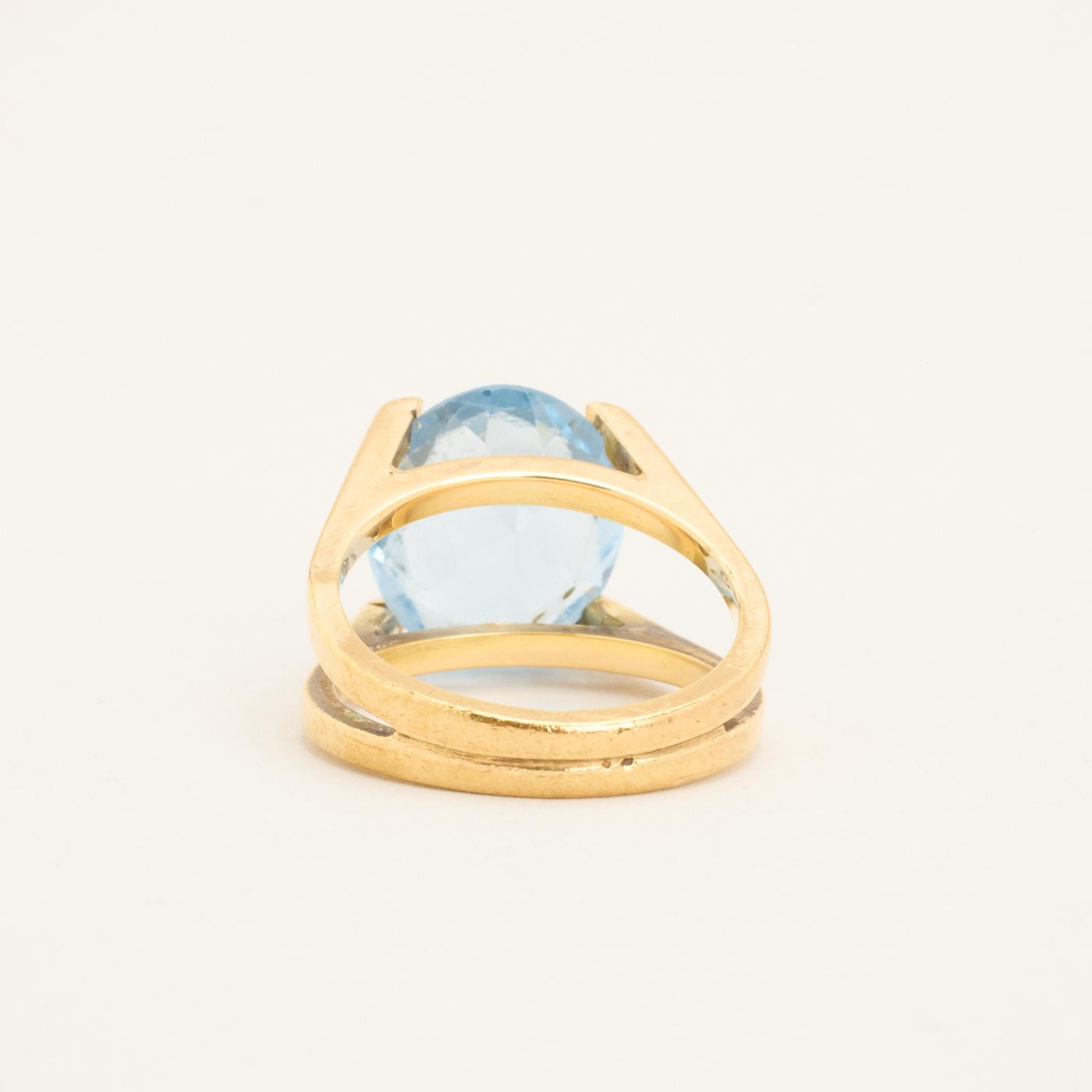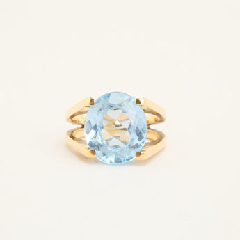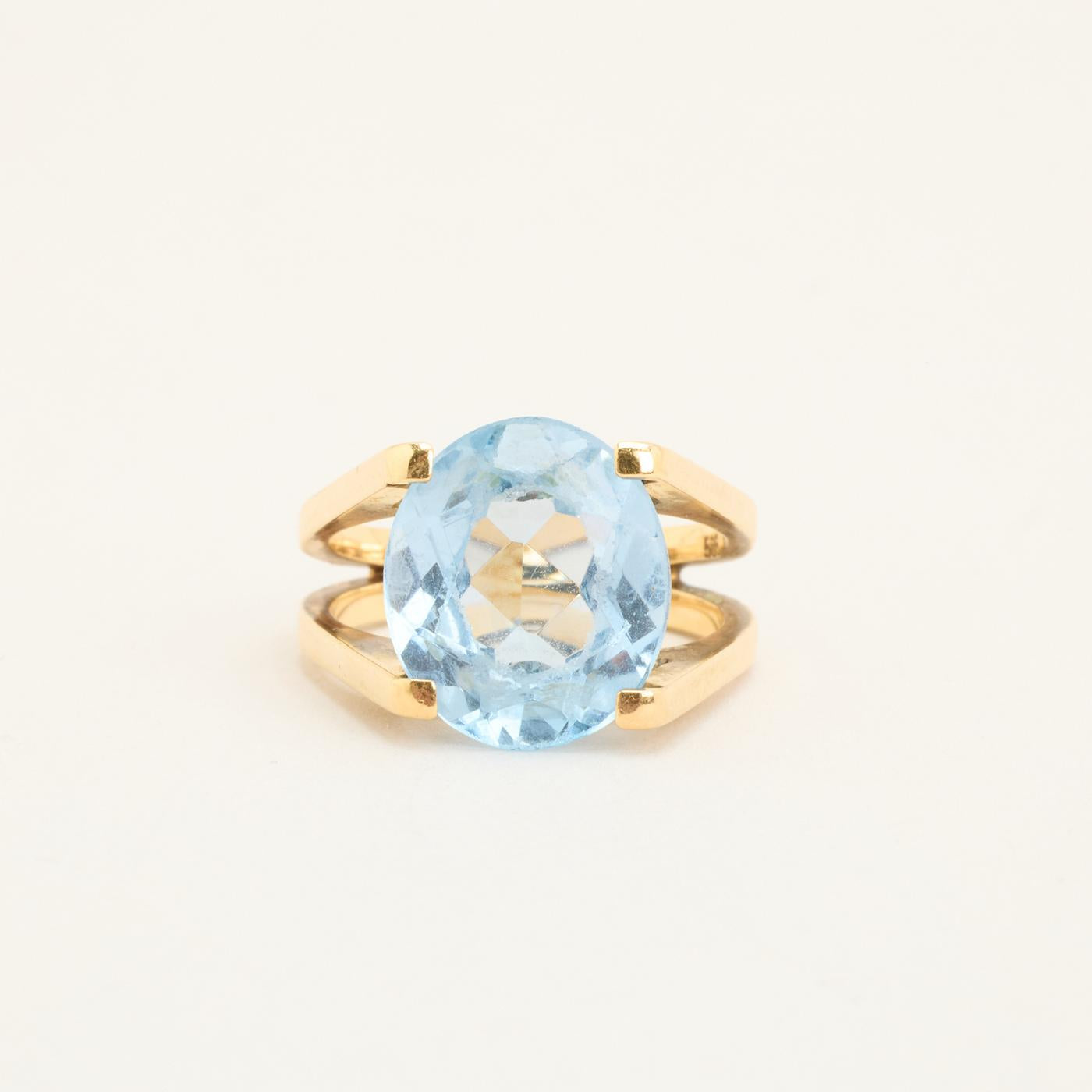 Cocktailring i 14K guld med lyseblå sten, Str. 54