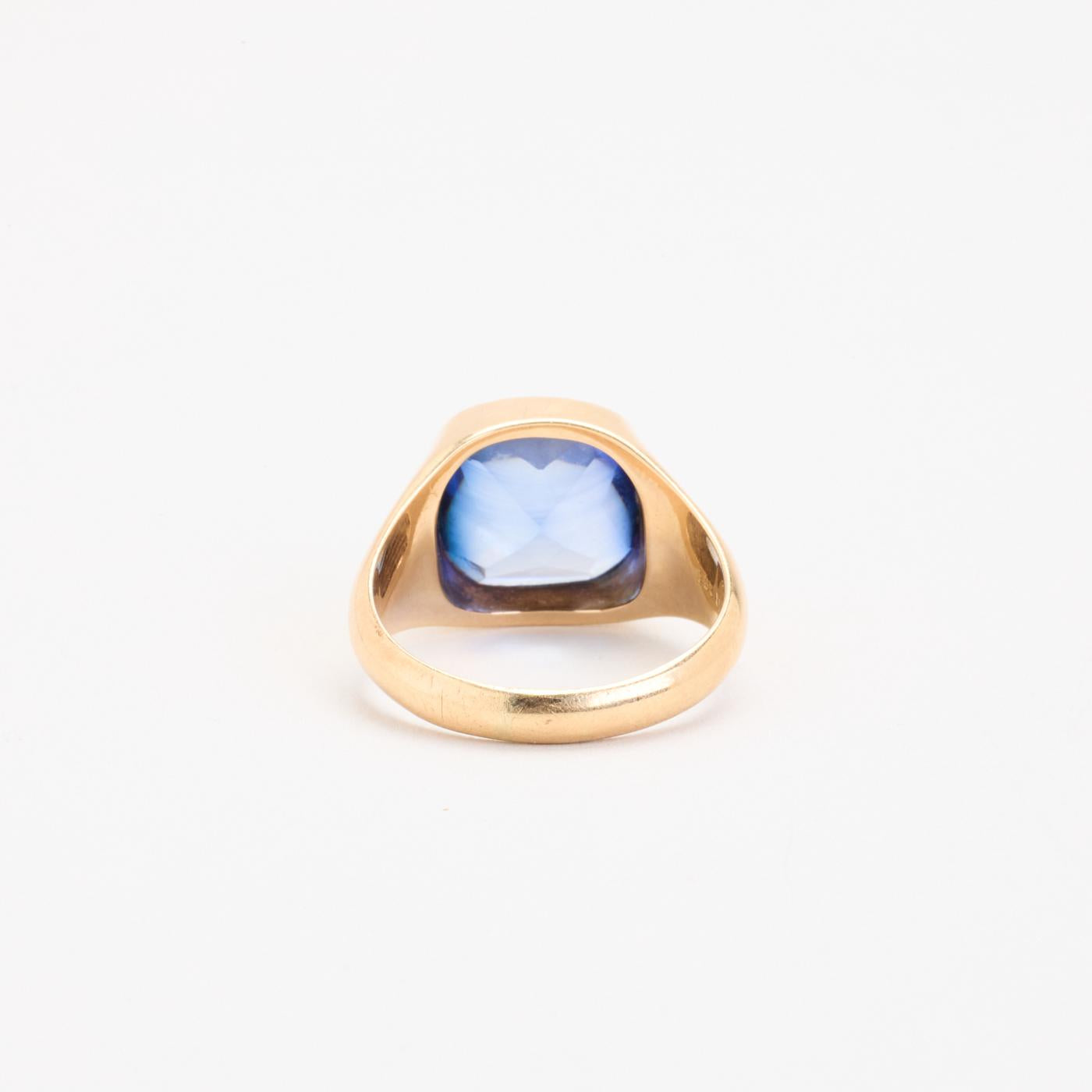 Signetring i 14K guld med blå sten, Str. 65
