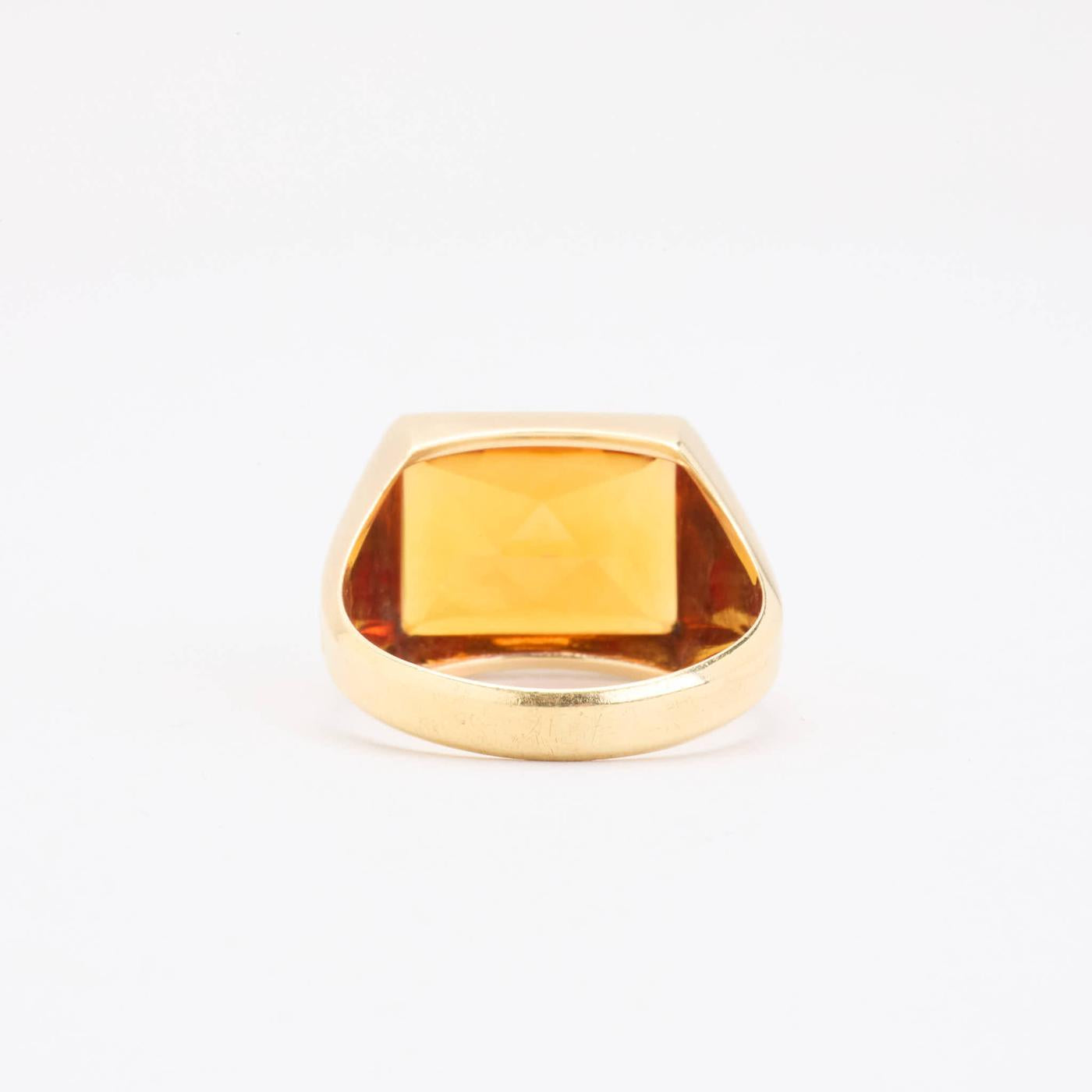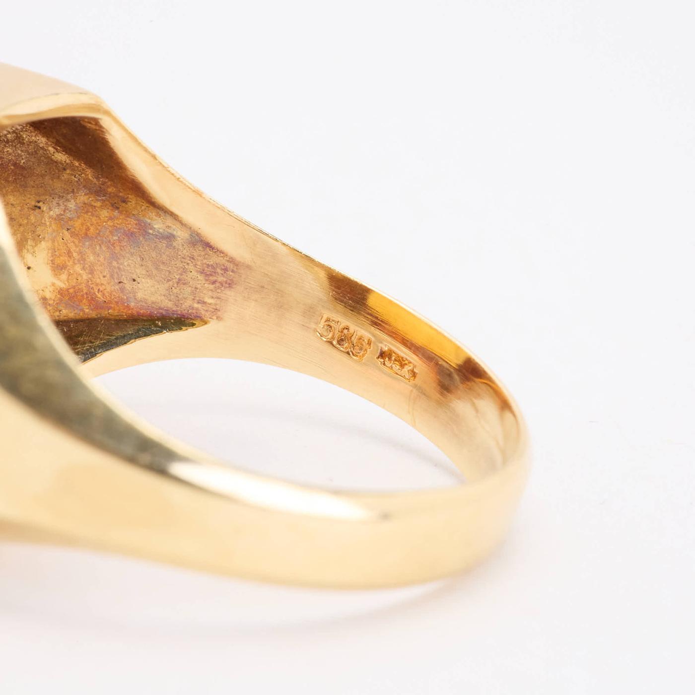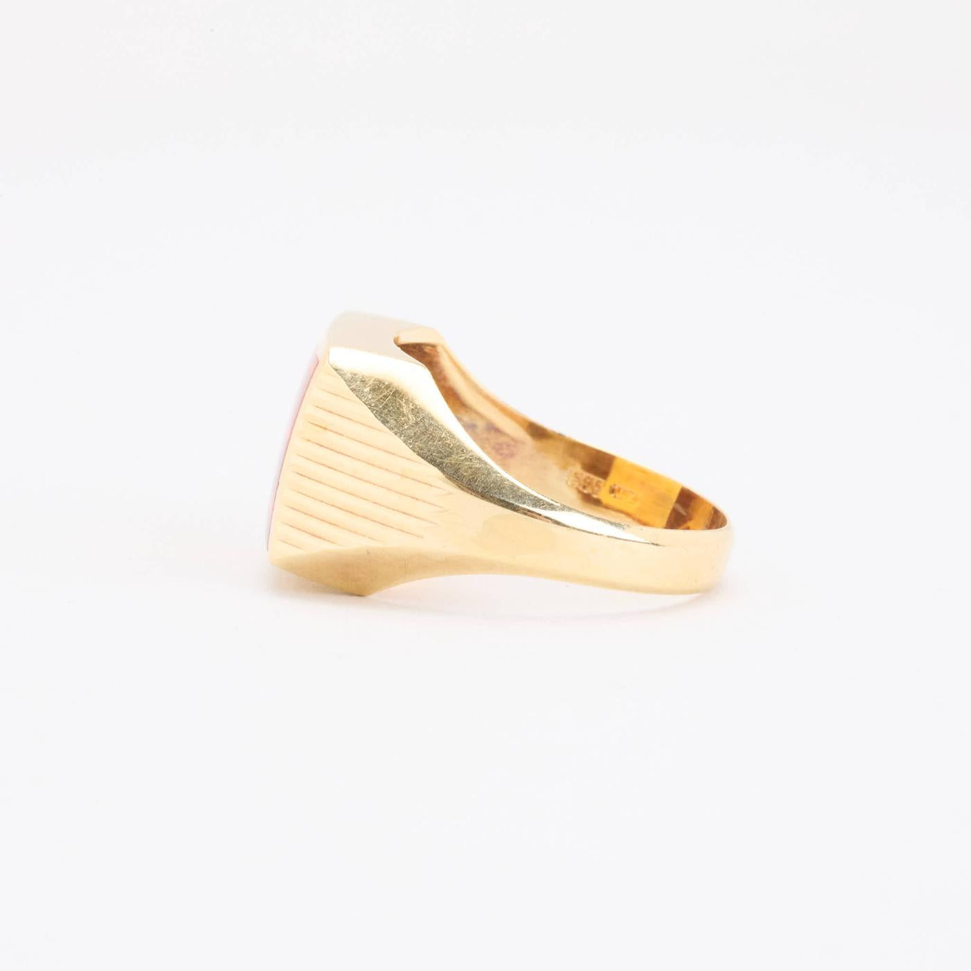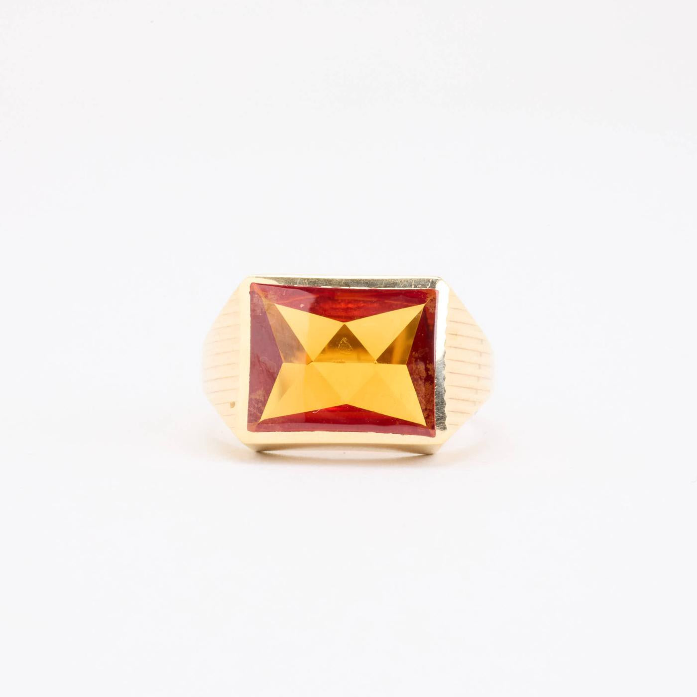 Signetring i 14K guld med en orange sten, Str. 67