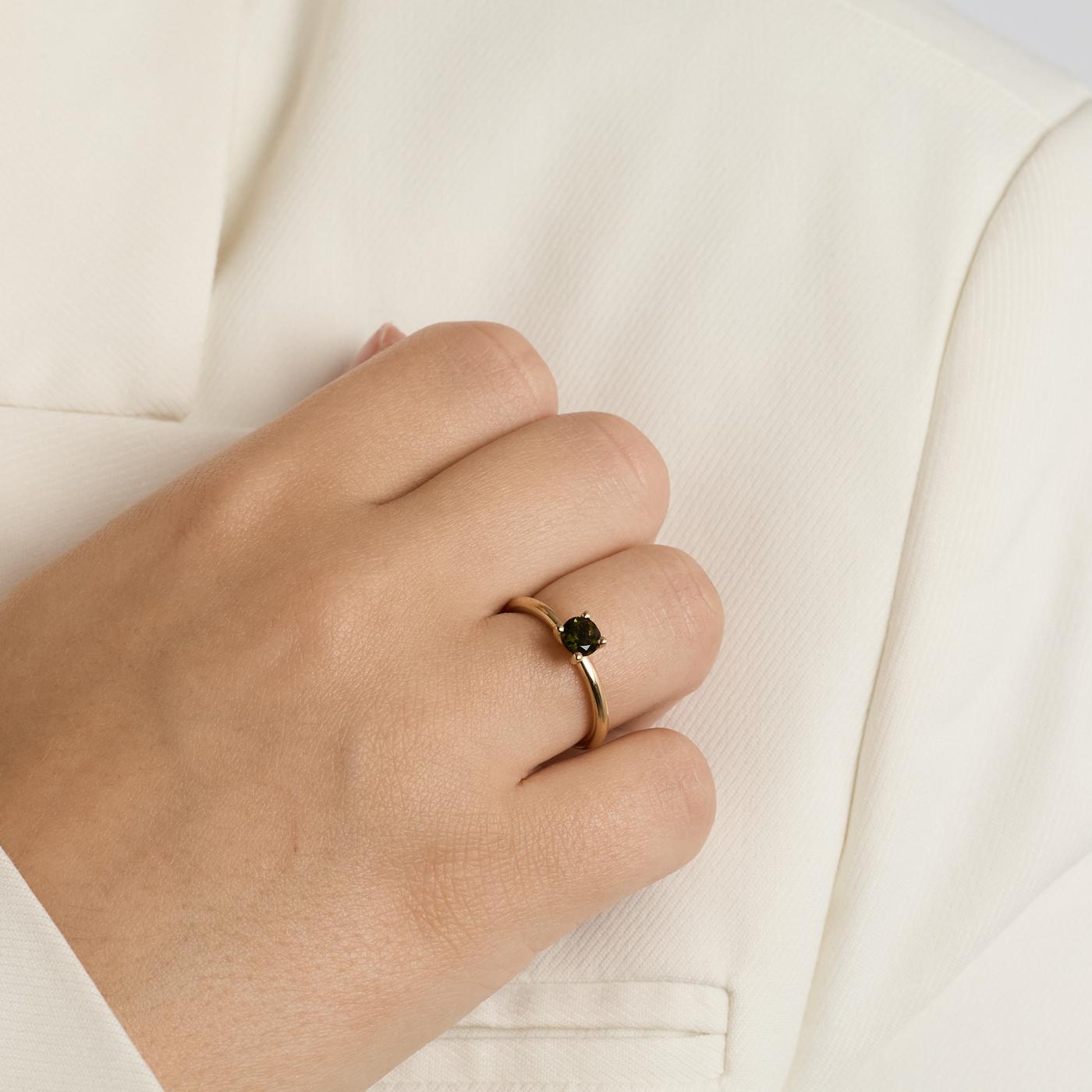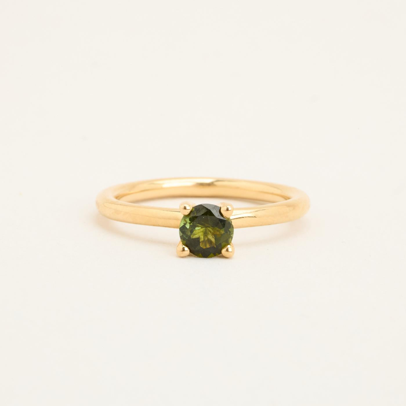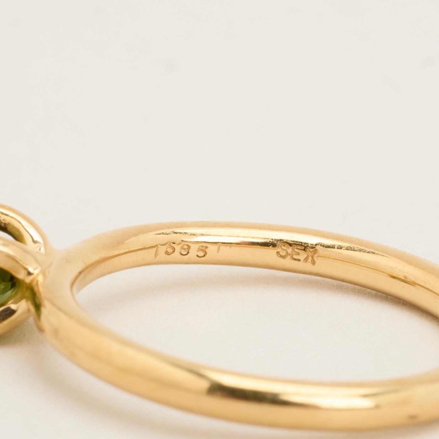 Solitairering i 14K guld med grøn sten, str. 53, 2.75 g