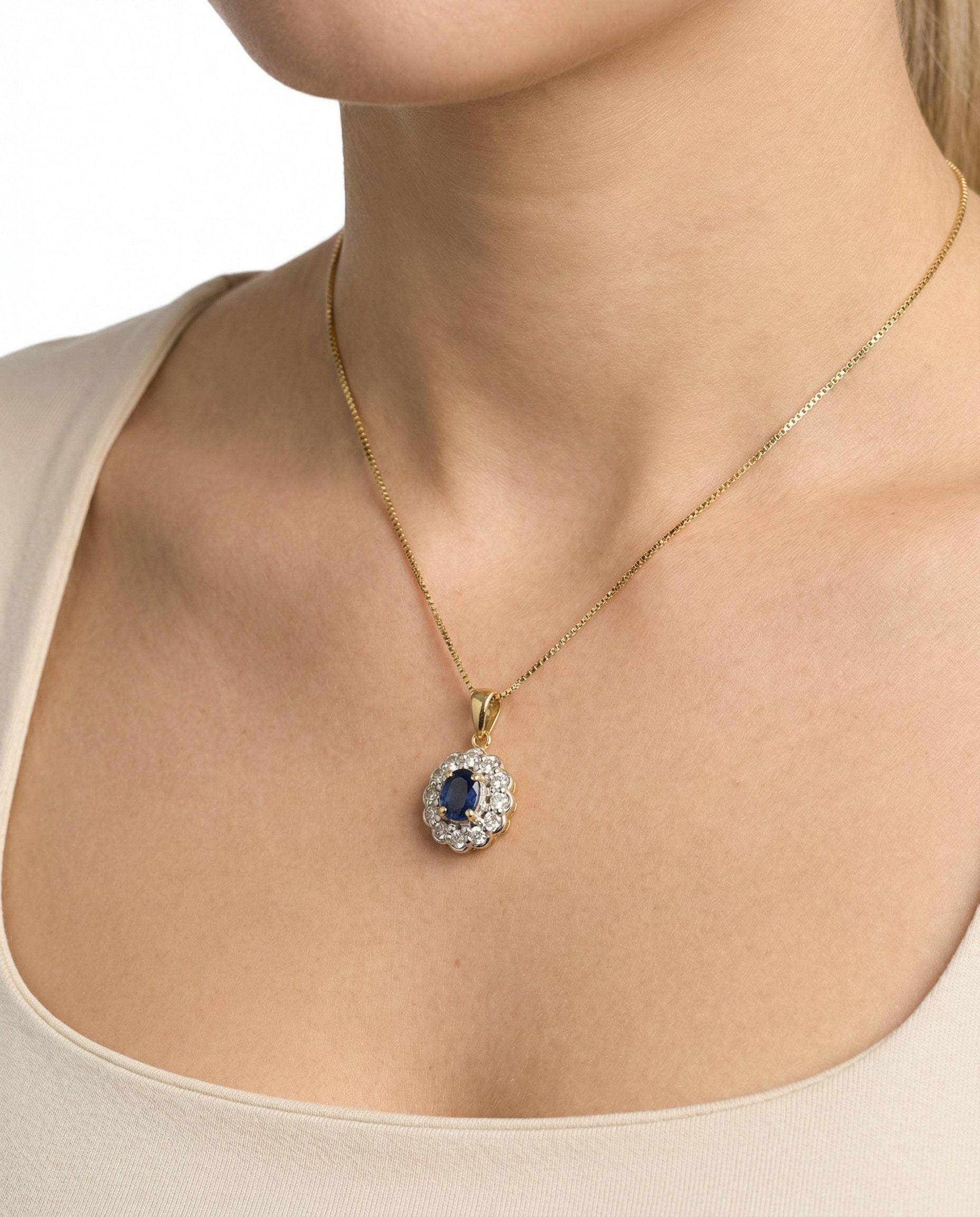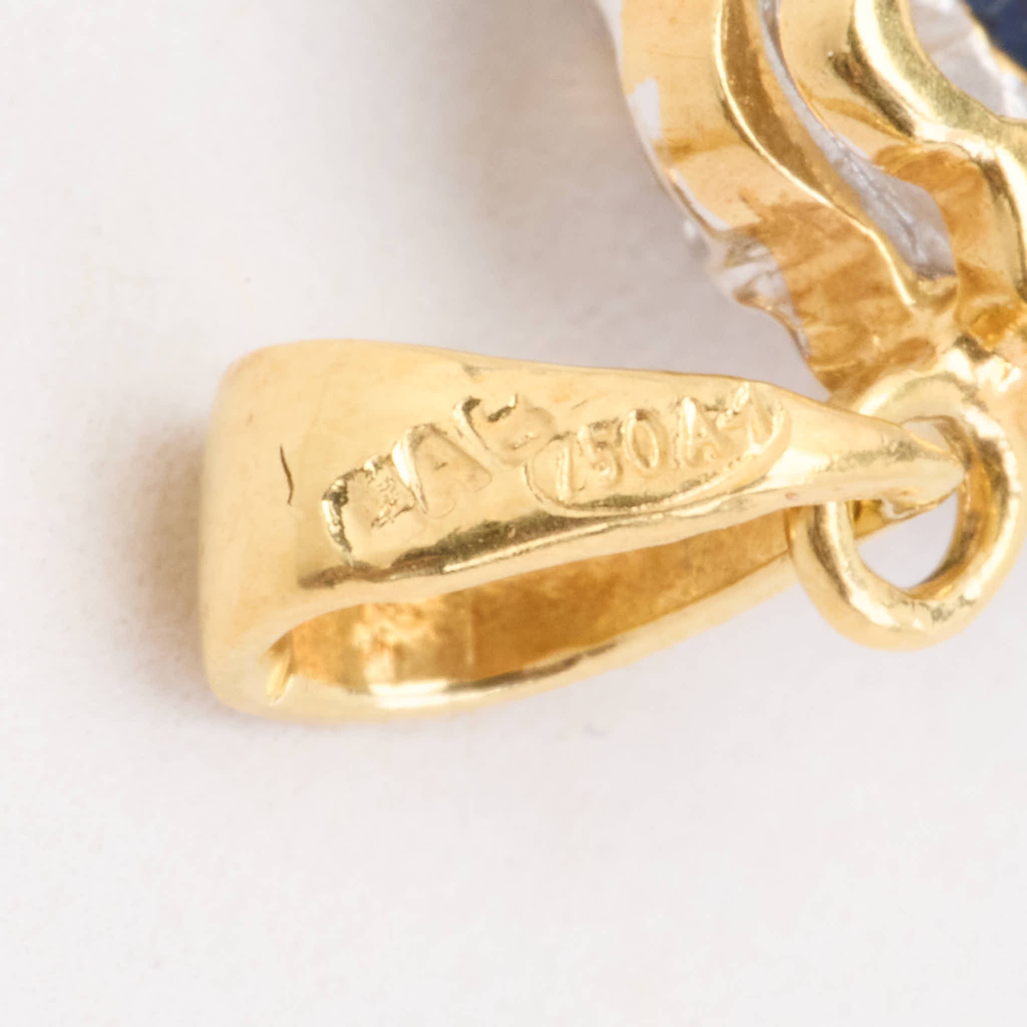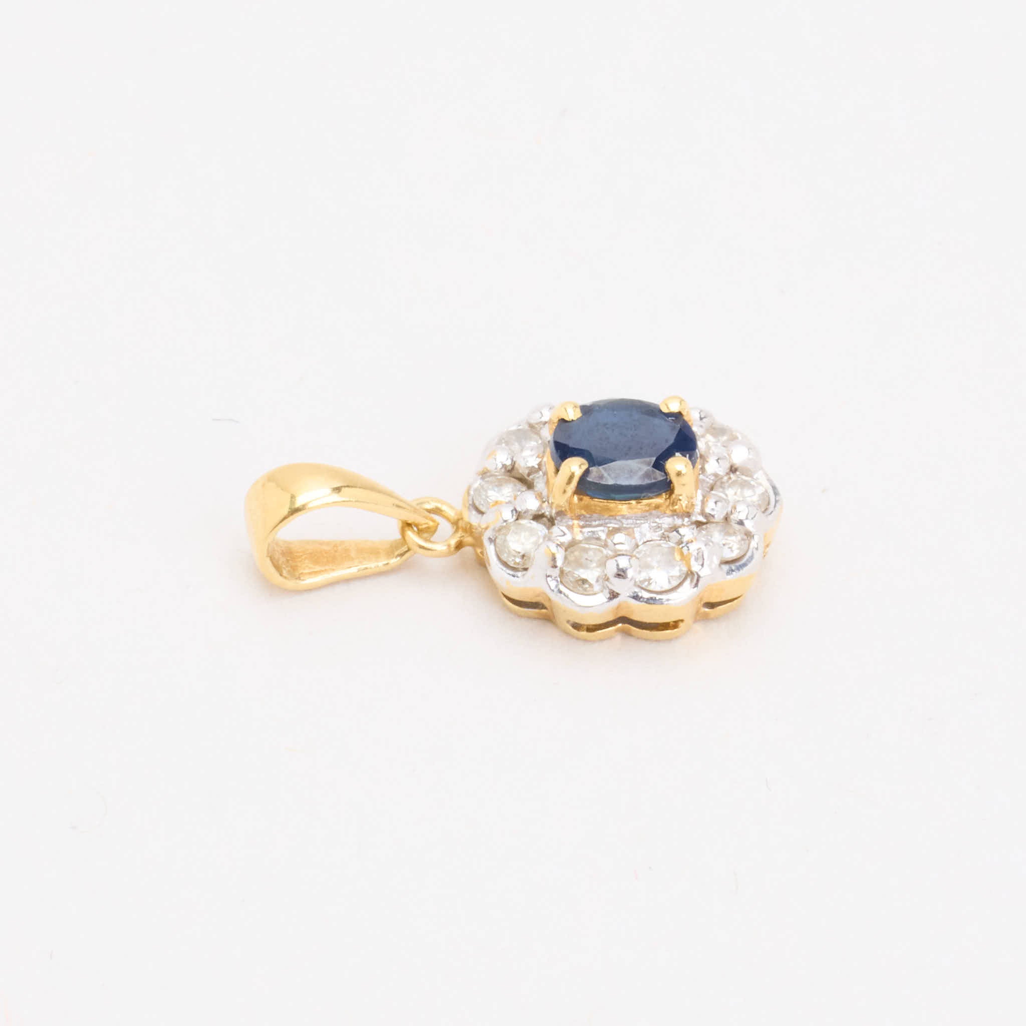 Roset vedhæng med diamant (0.26 ct) i 18 karat med en Safir, 1.5 cm