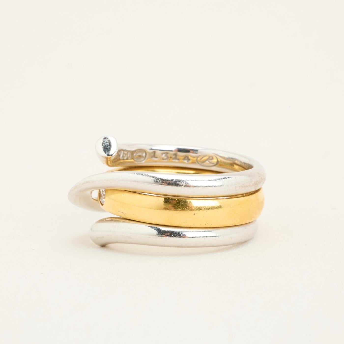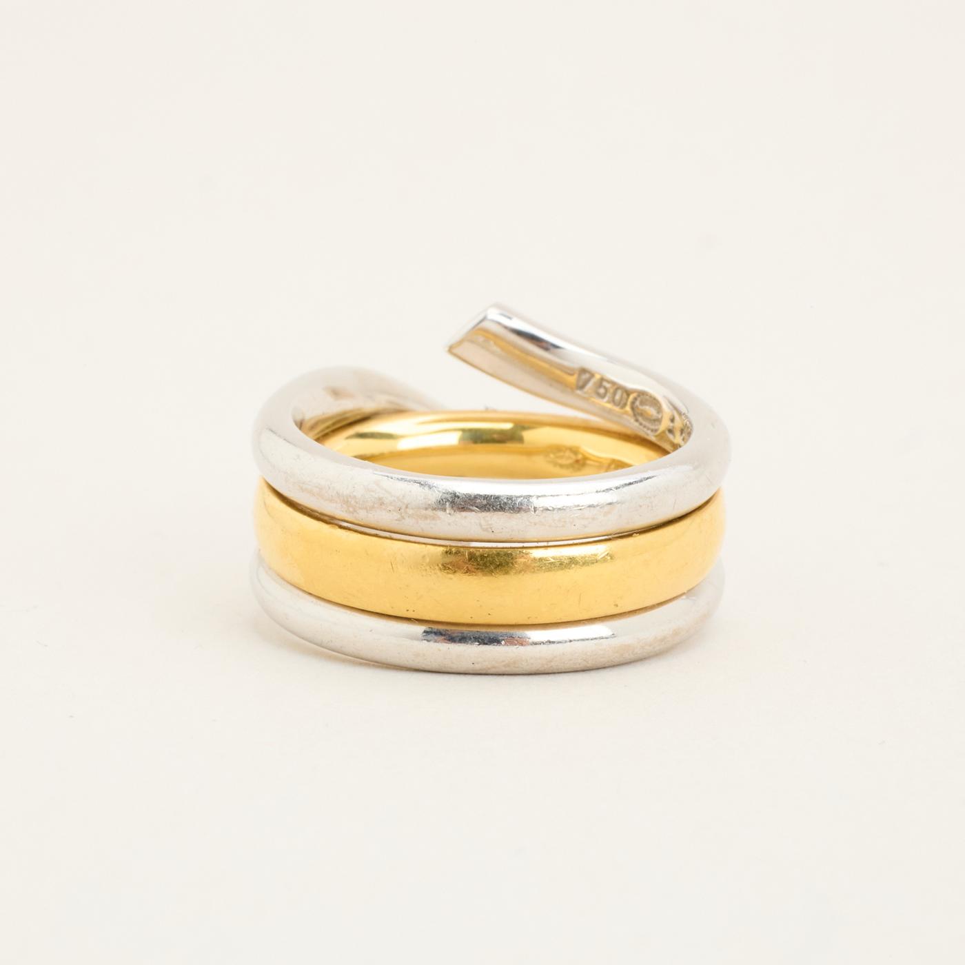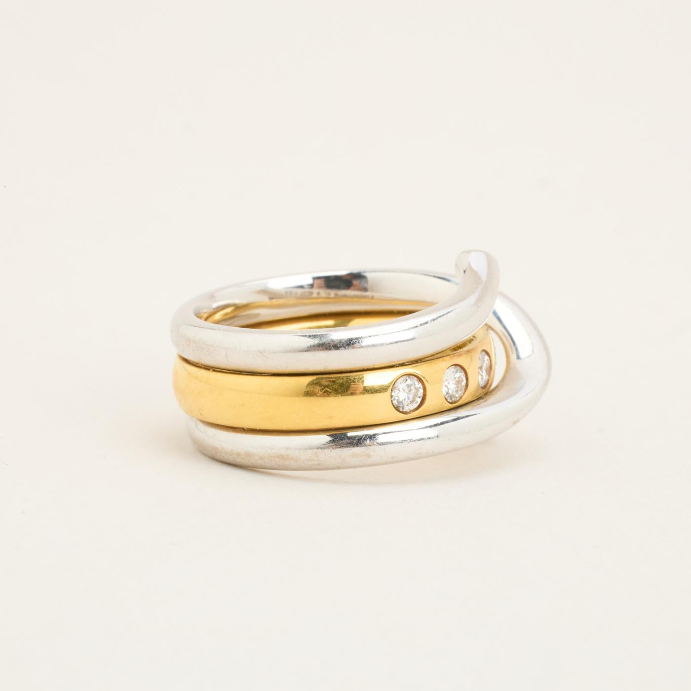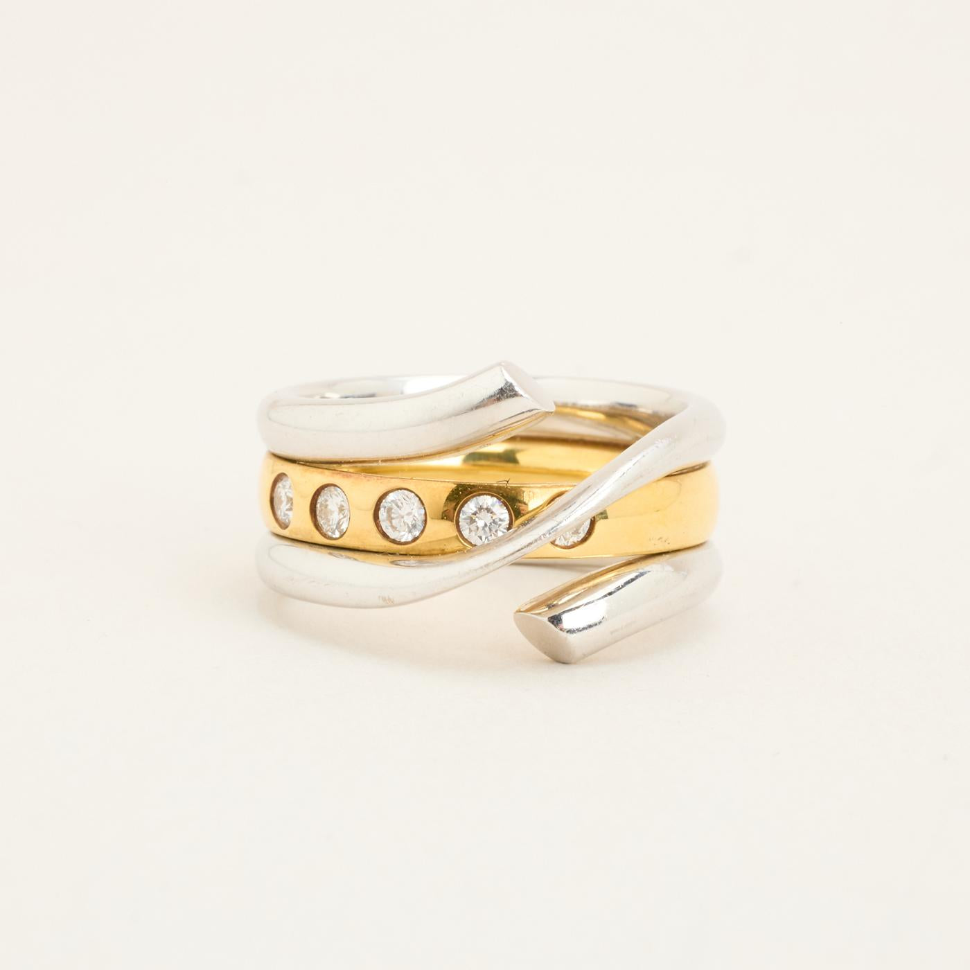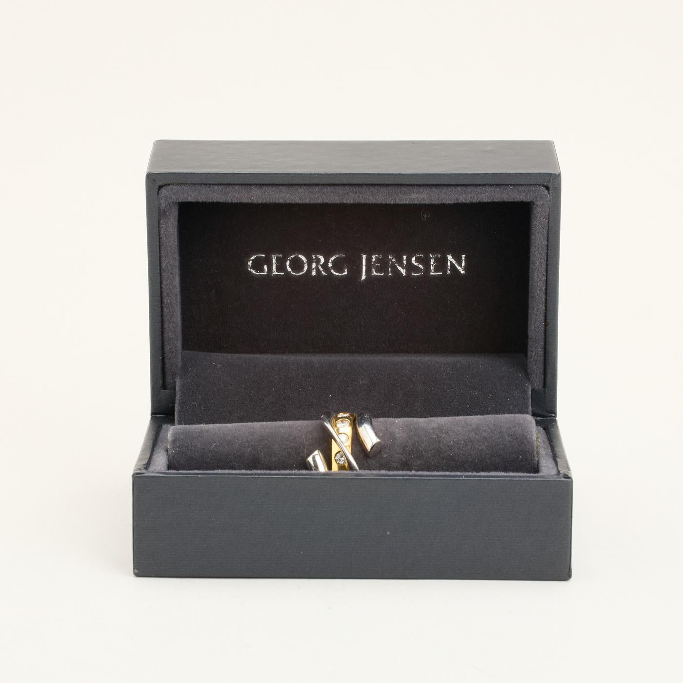 Georg Jensen Crossoverring i 18K guld og hvidguld med diamanter (0.24 ct), Str. 55