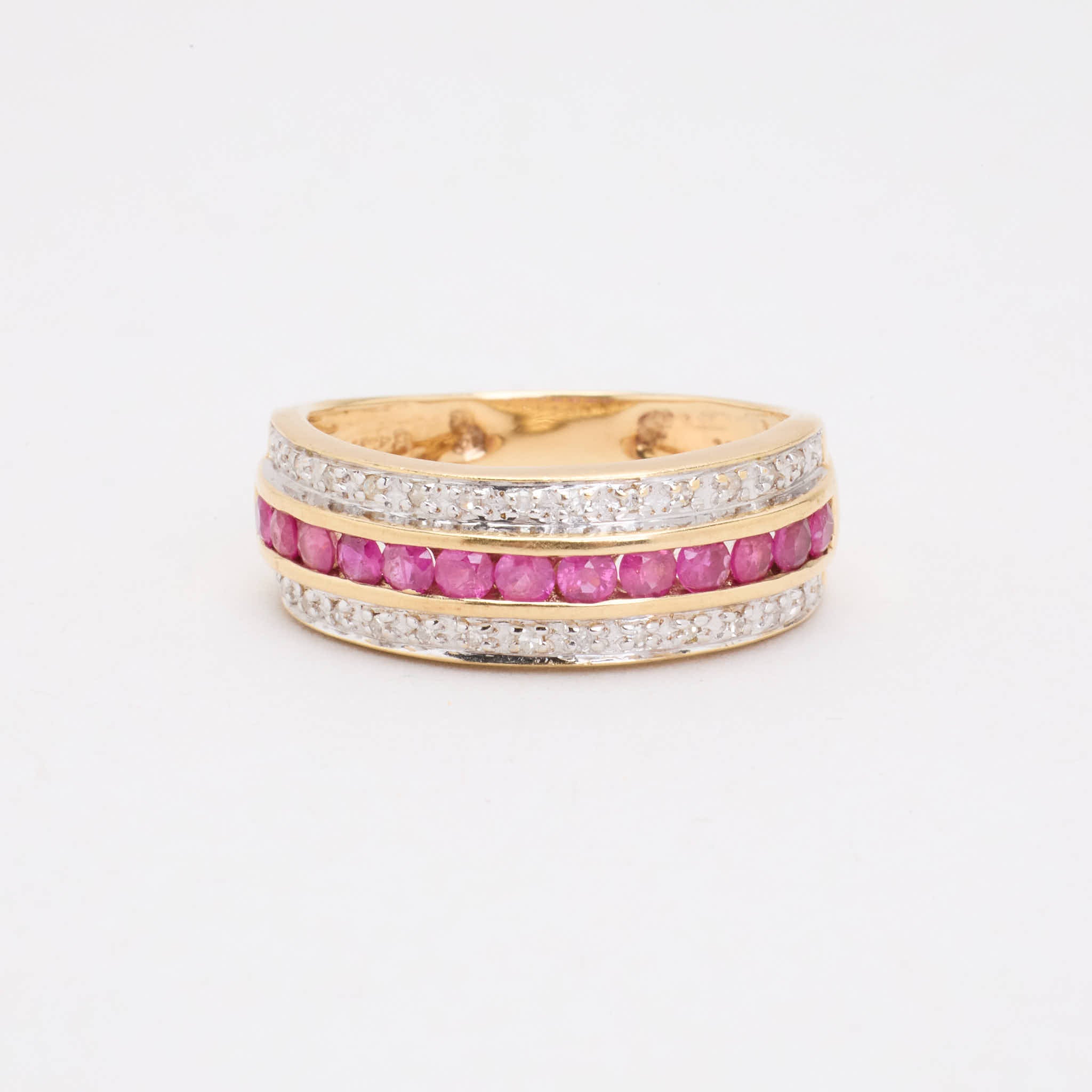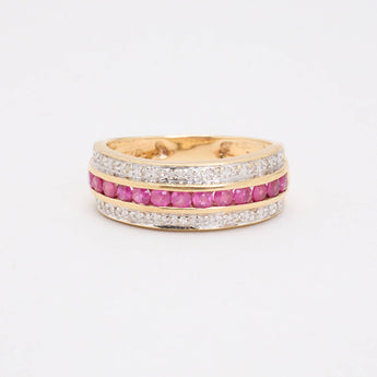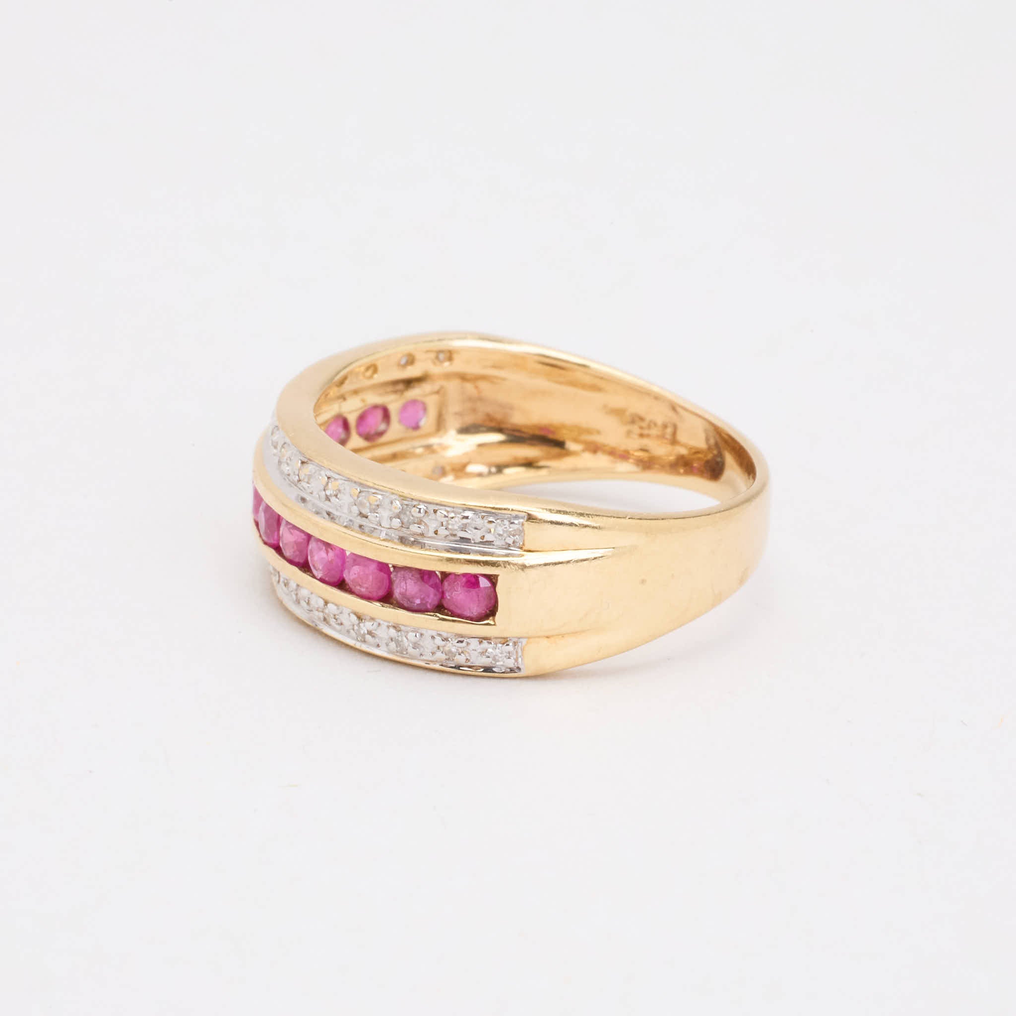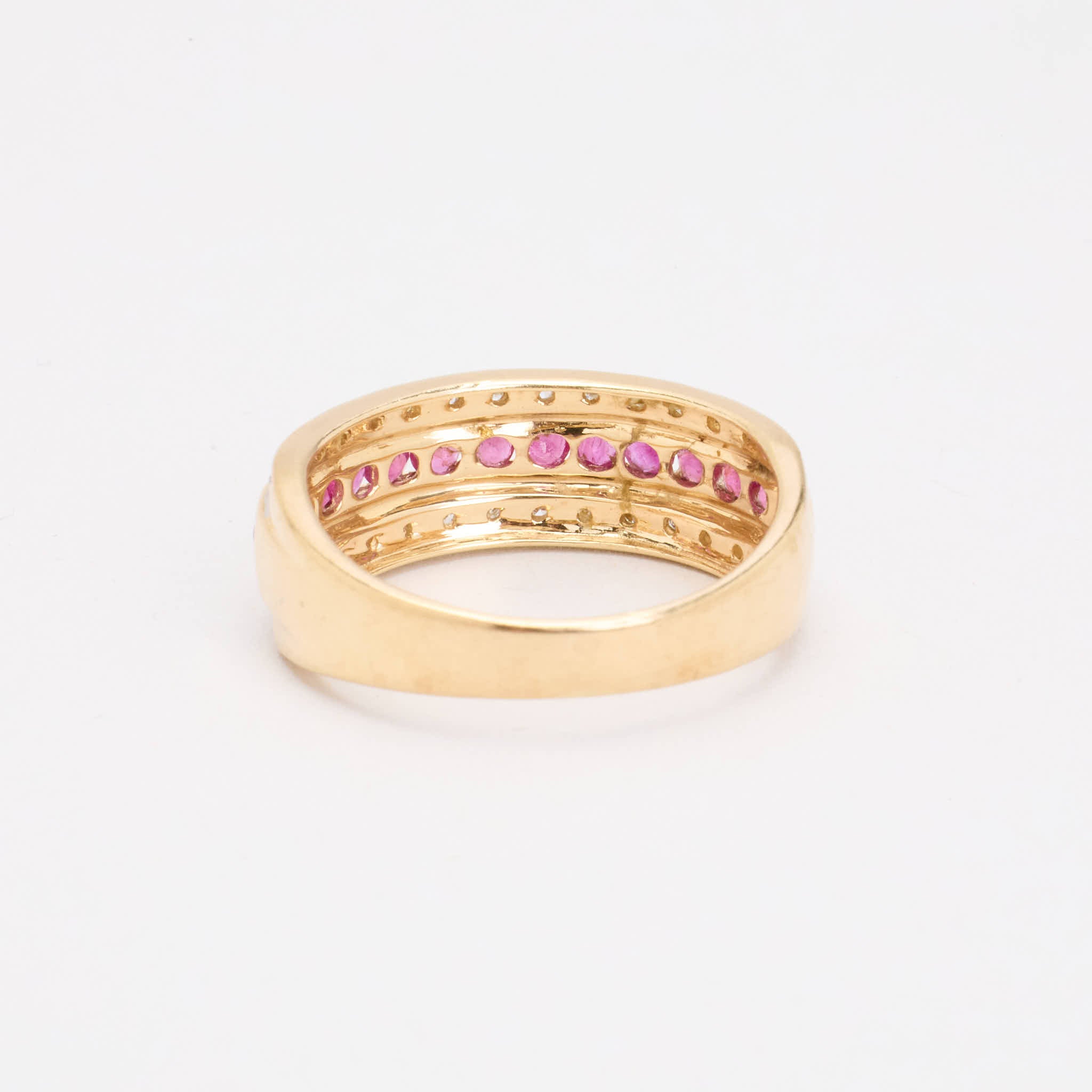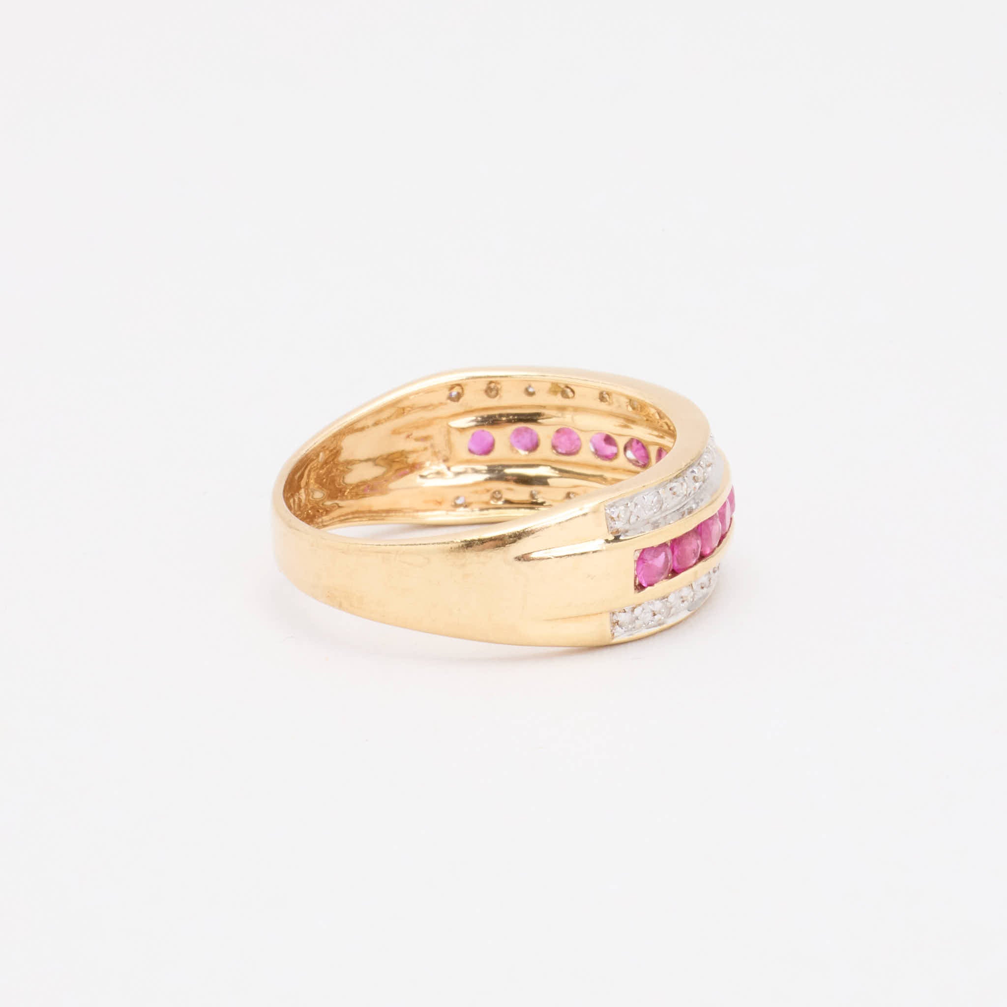 Gypsyring i 8K guld med lyserøde sten og hvide sten (0.09 ct), Str. 55, 2.1 g