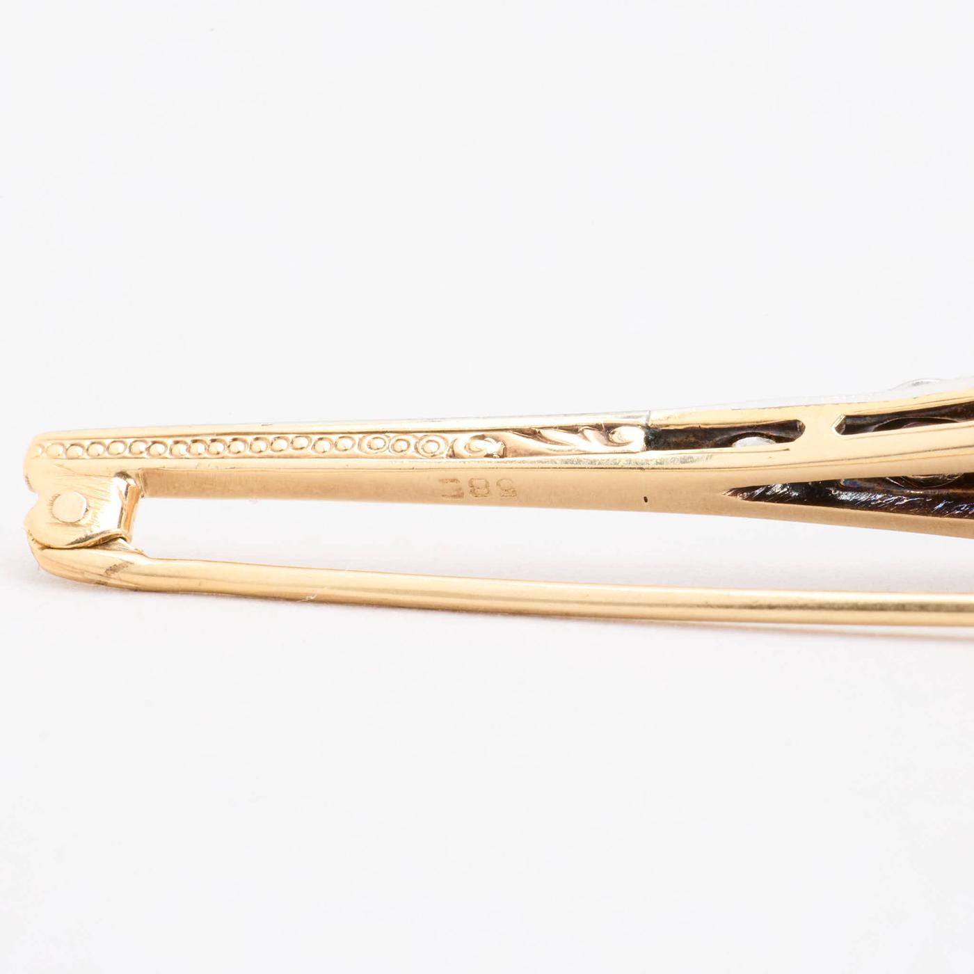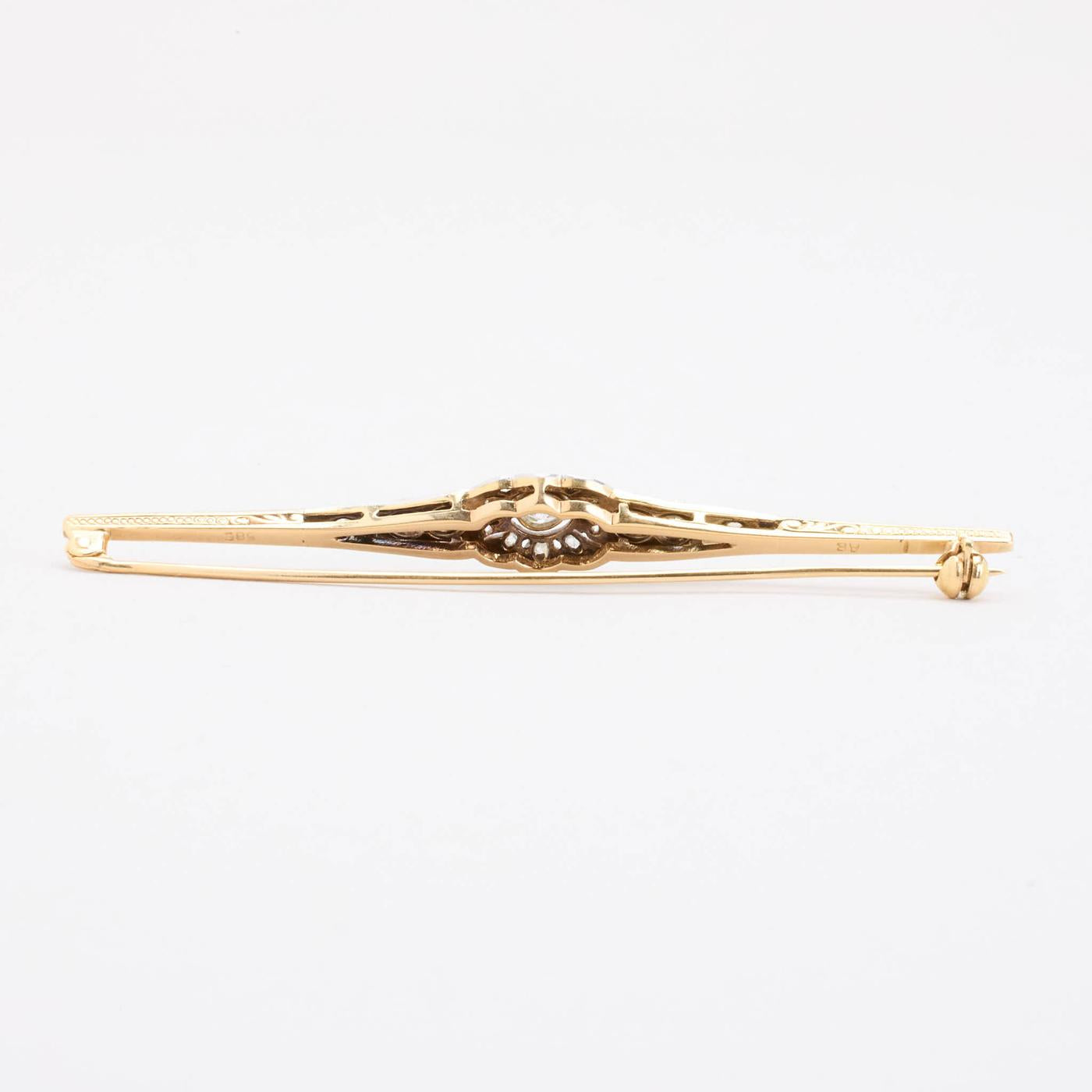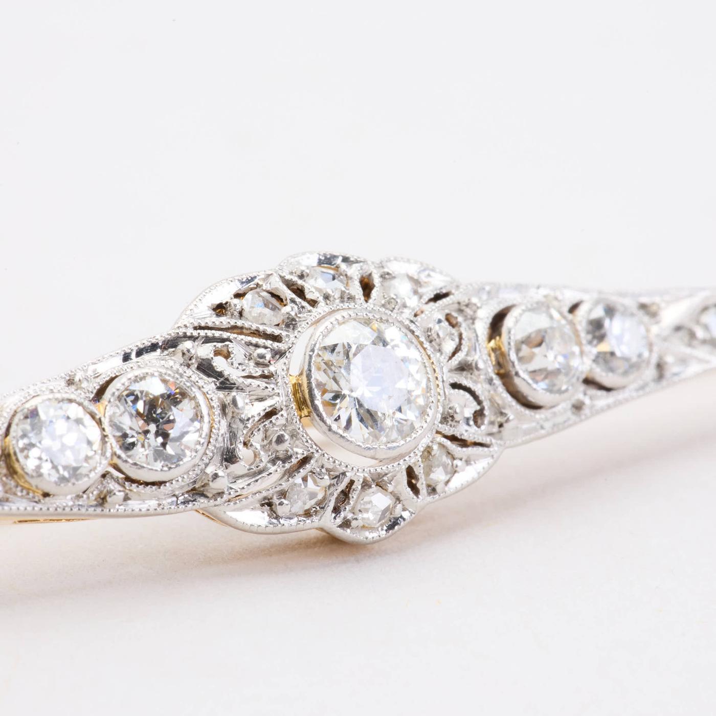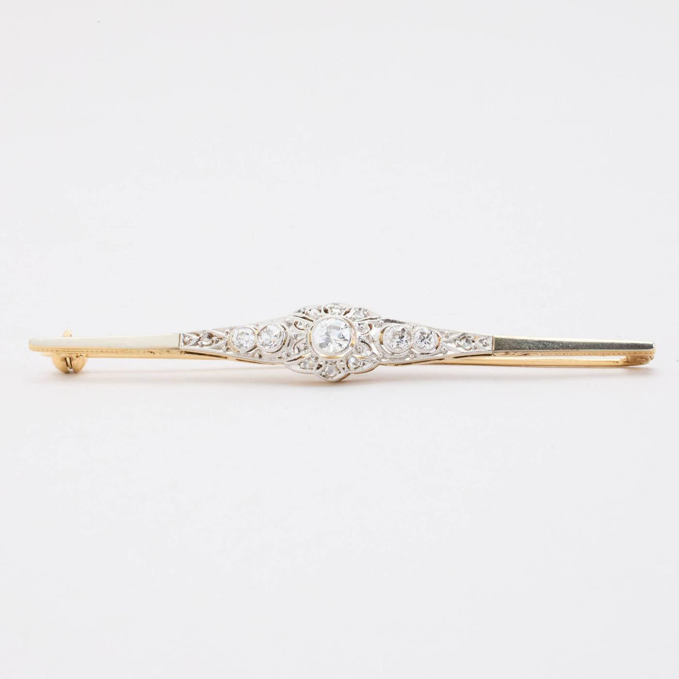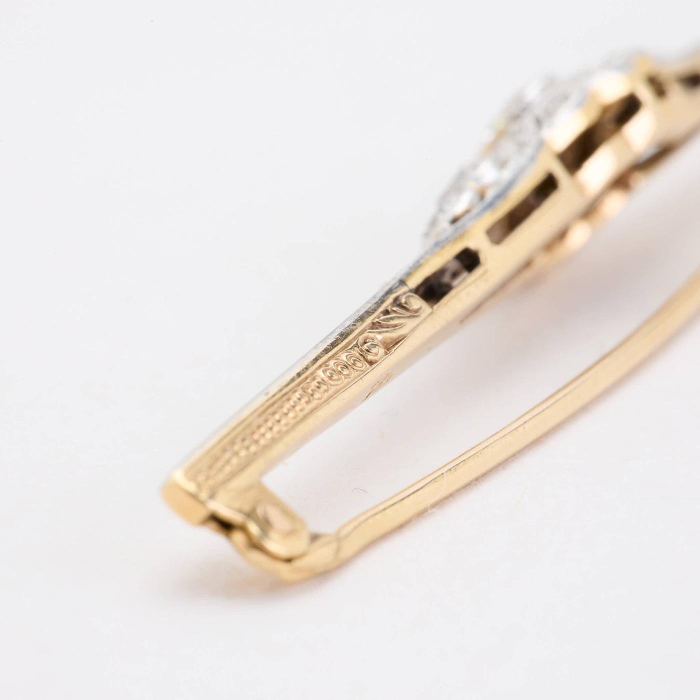 Broche i 14K guld og hvidguld med diamanter (0.66 ct), 7.3 cm