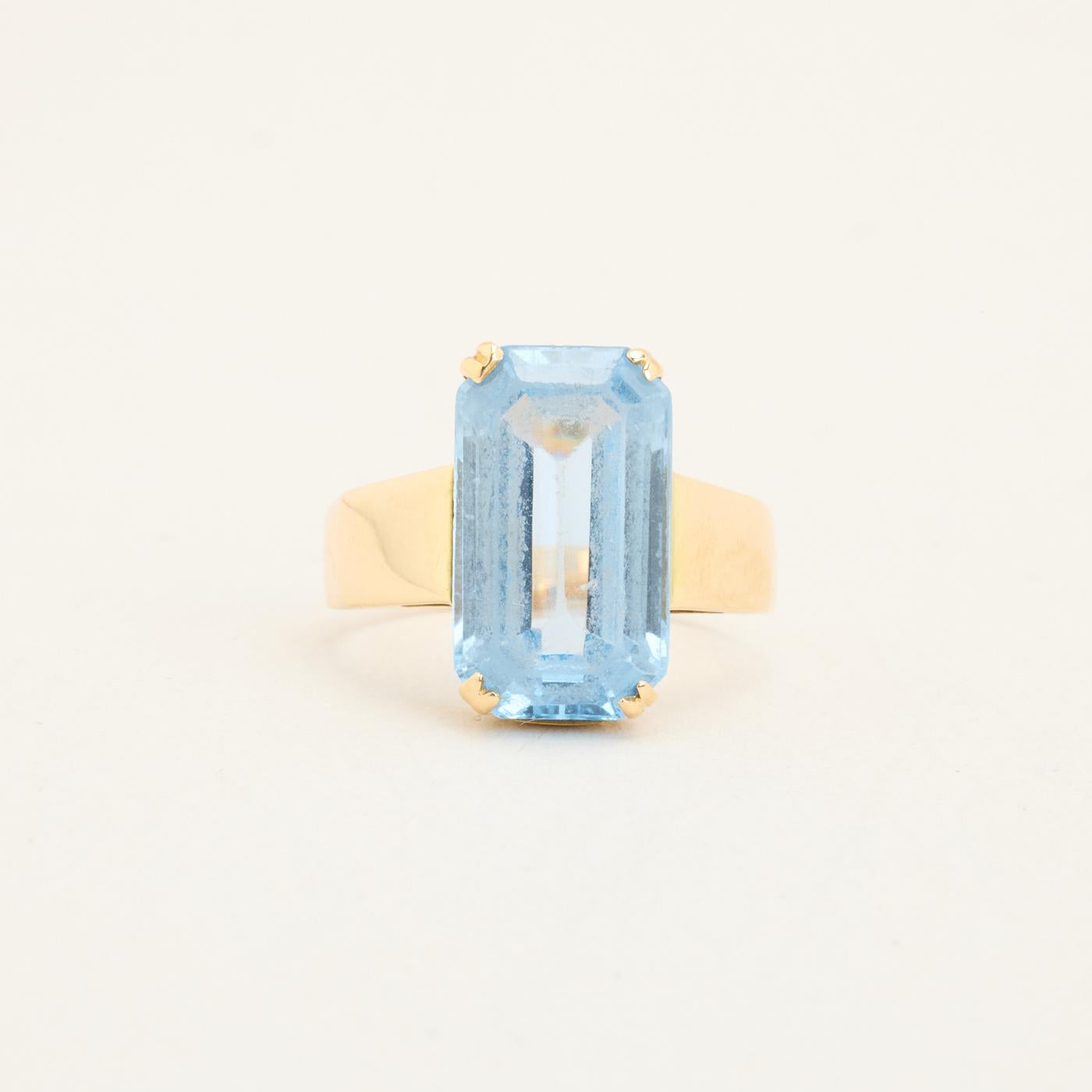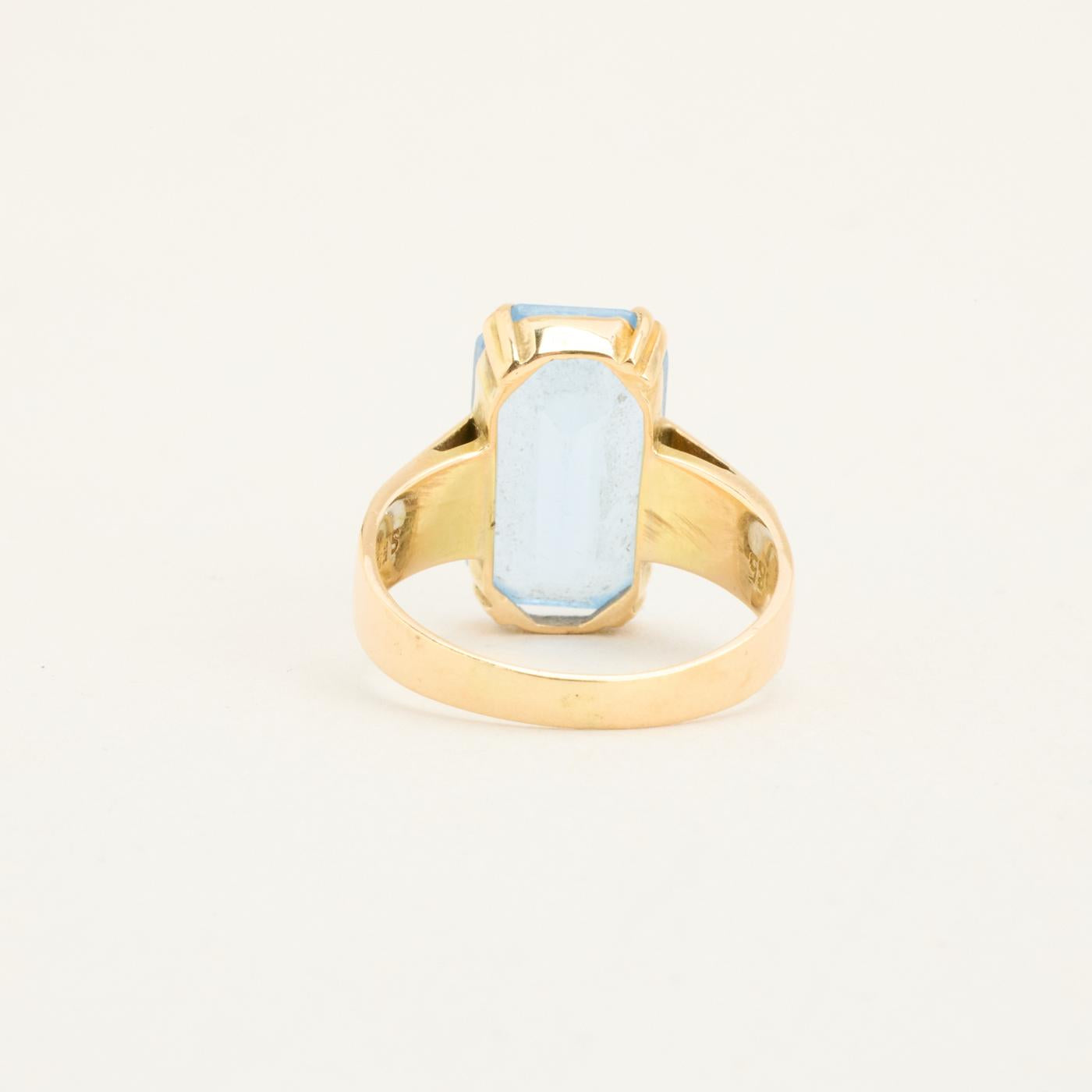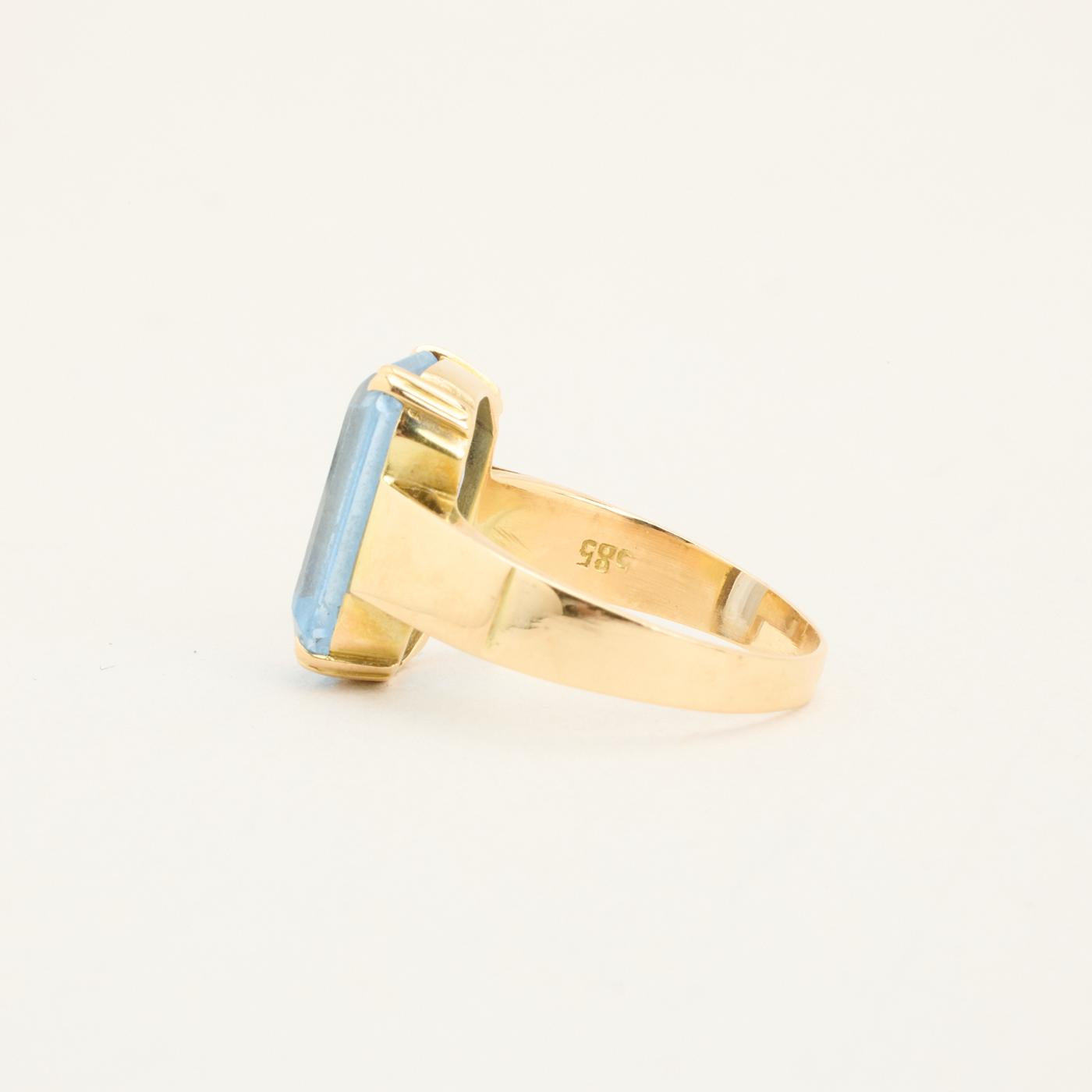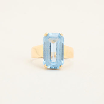 Cocktailring i 14K guld med lyseblå sten, Str. 50