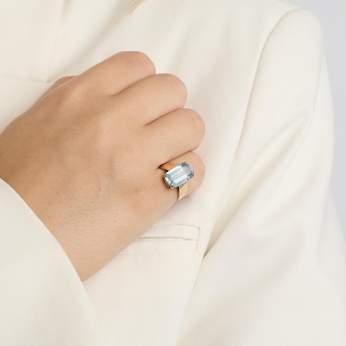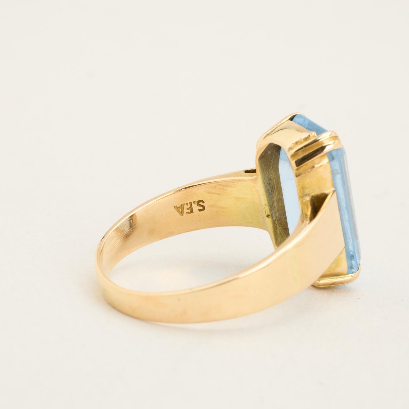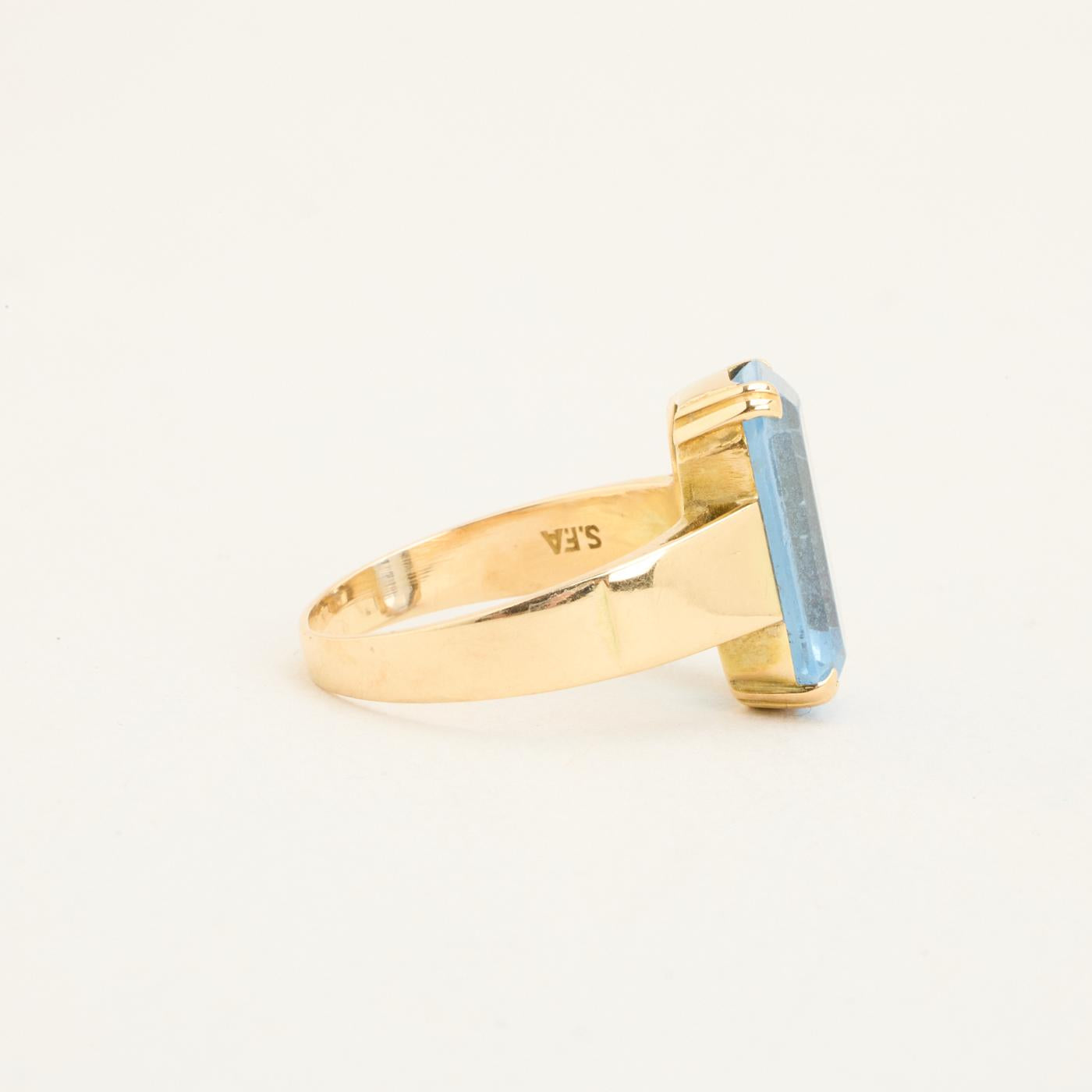 Cocktailring i 14K guld med lyseblå sten, Str. 50