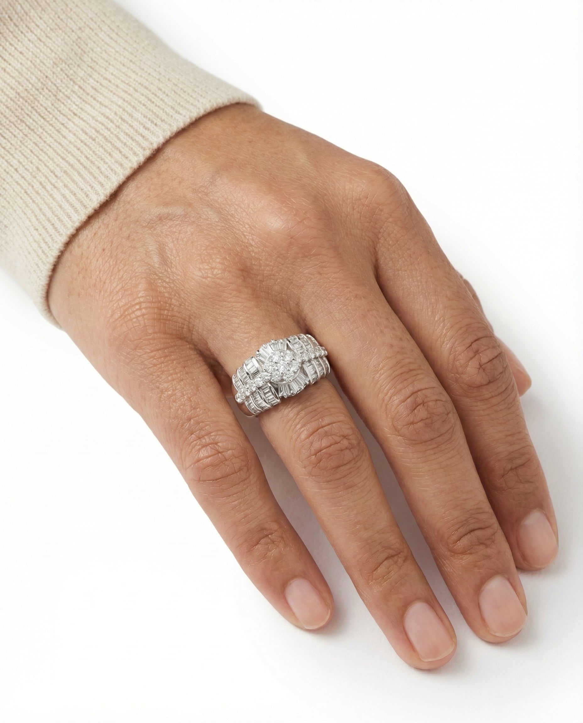 Pavéring i 8K hvidguld med diamanter (0.50 ct), Str. 53