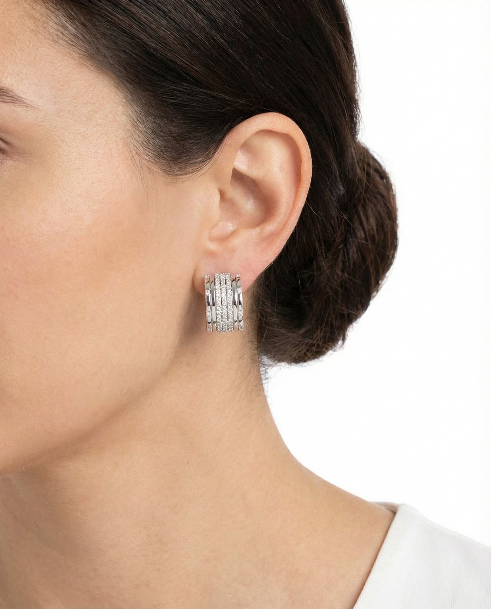 Creoler i 14K hvidguld med diamanter (0.33 ct), 1.9 cm