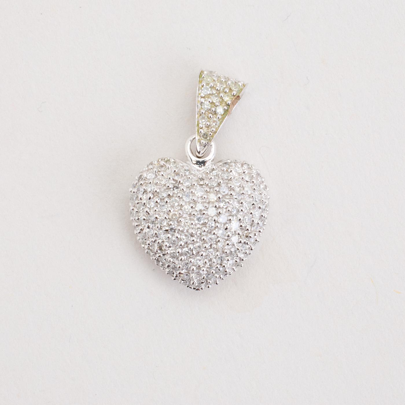 Hjerte vedhæng i 14K hvidguld med diamanter (0.34 ct), 2.5 cm