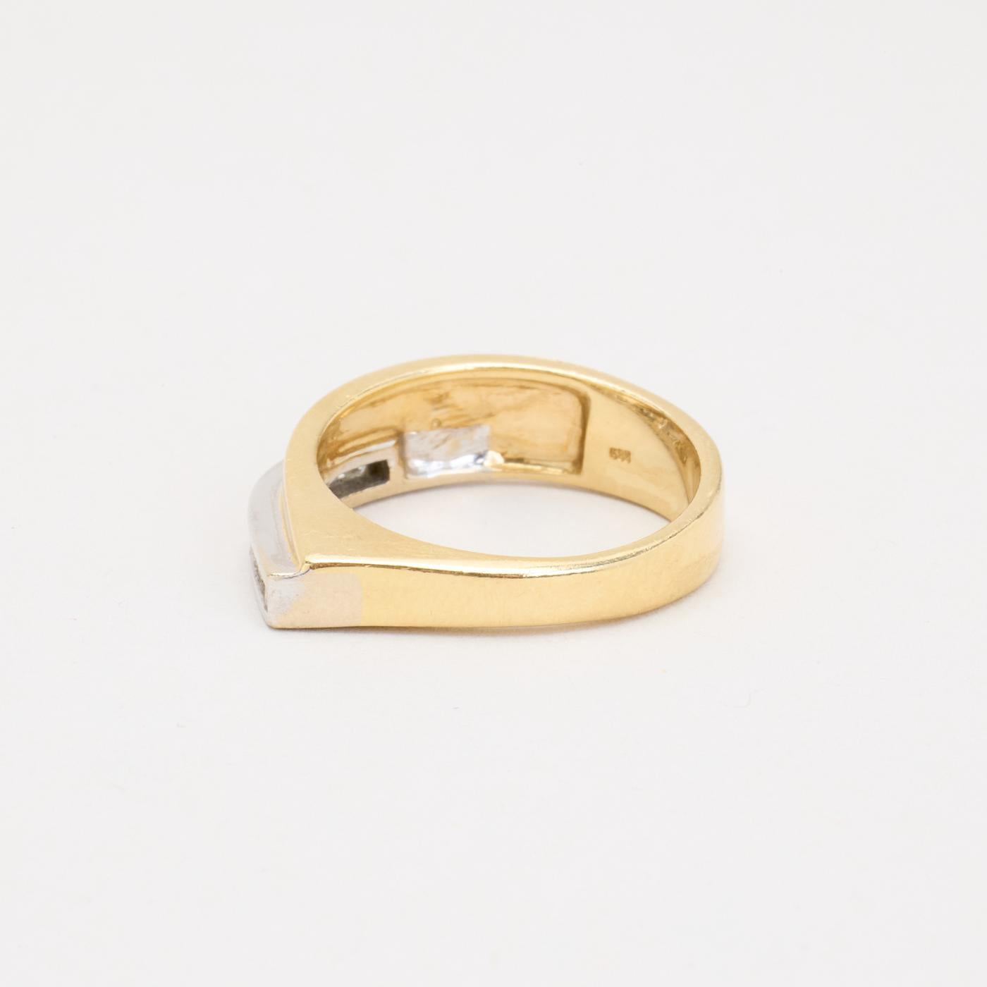 Signetring i 14K guld og hvidguld med diamanter (0.13 ct), Str. 58