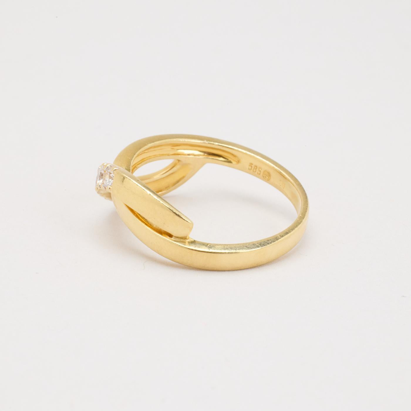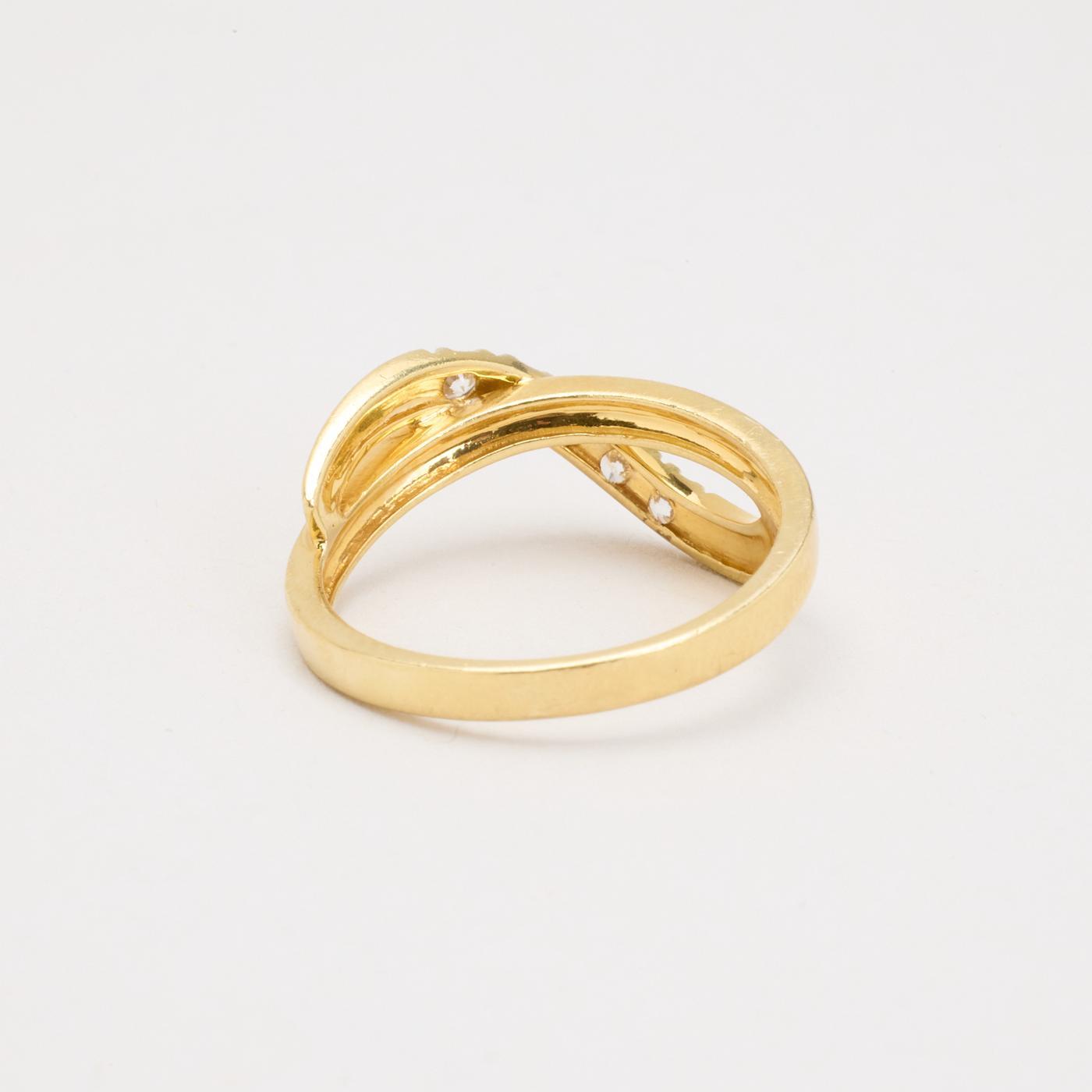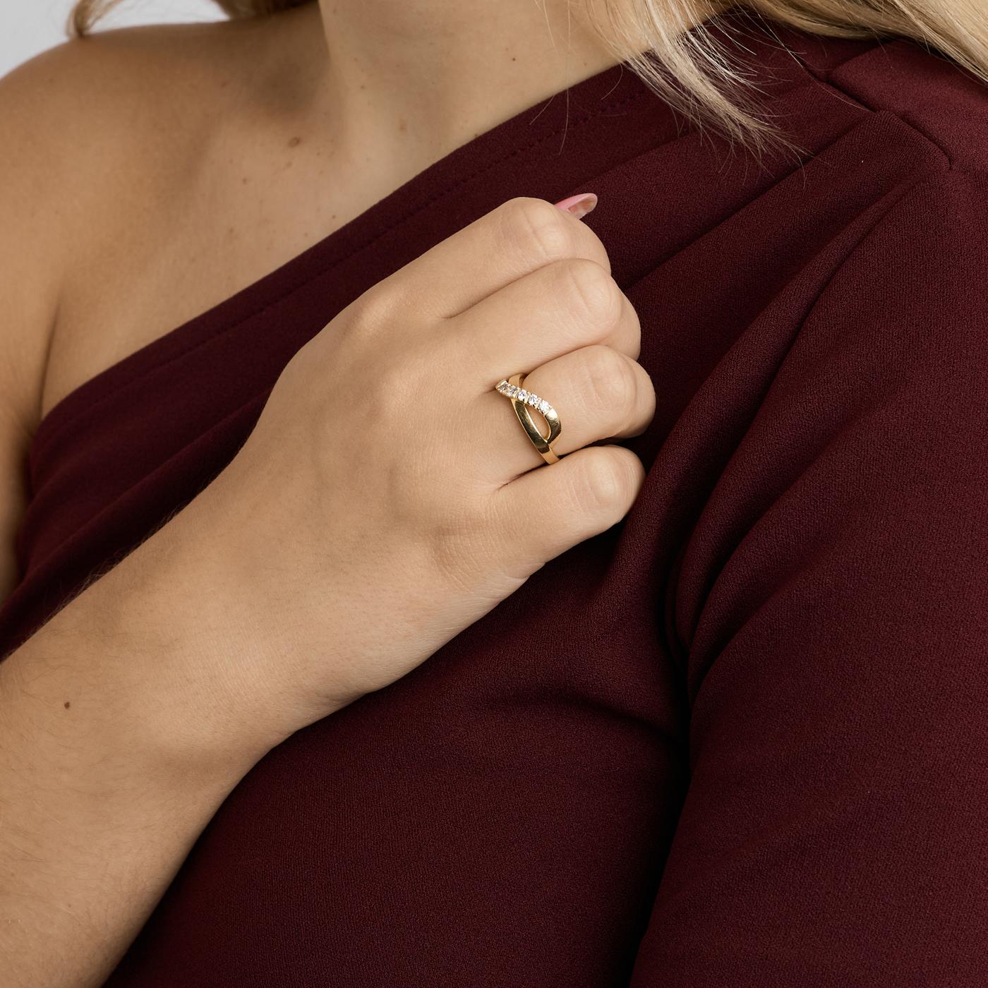 Crossoverring i 14K guld med flere zirkoniaer, Str. 55