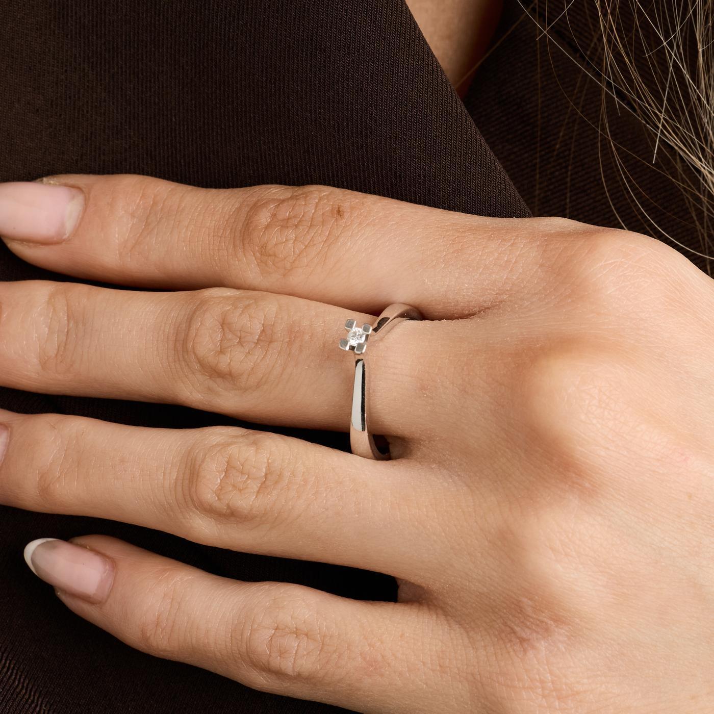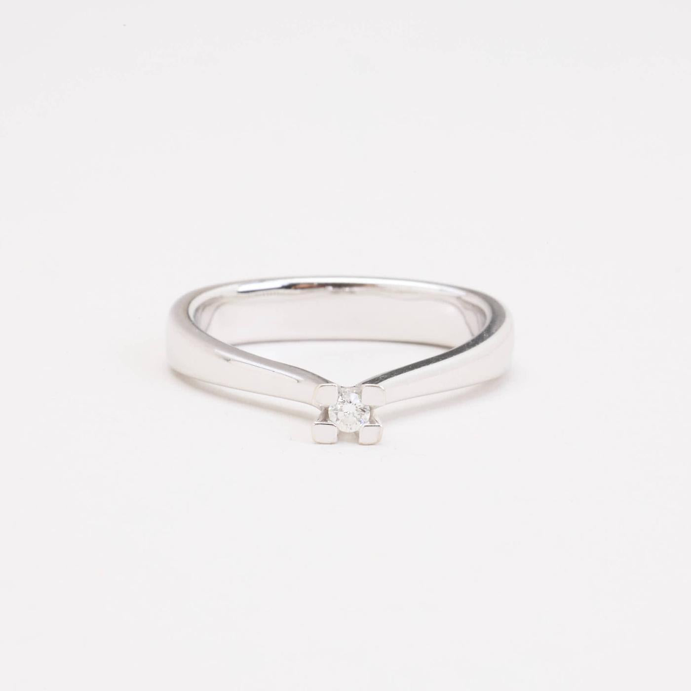 Solitairering i 14K hvidguld med en diamant (0.05 ct), Str. 51