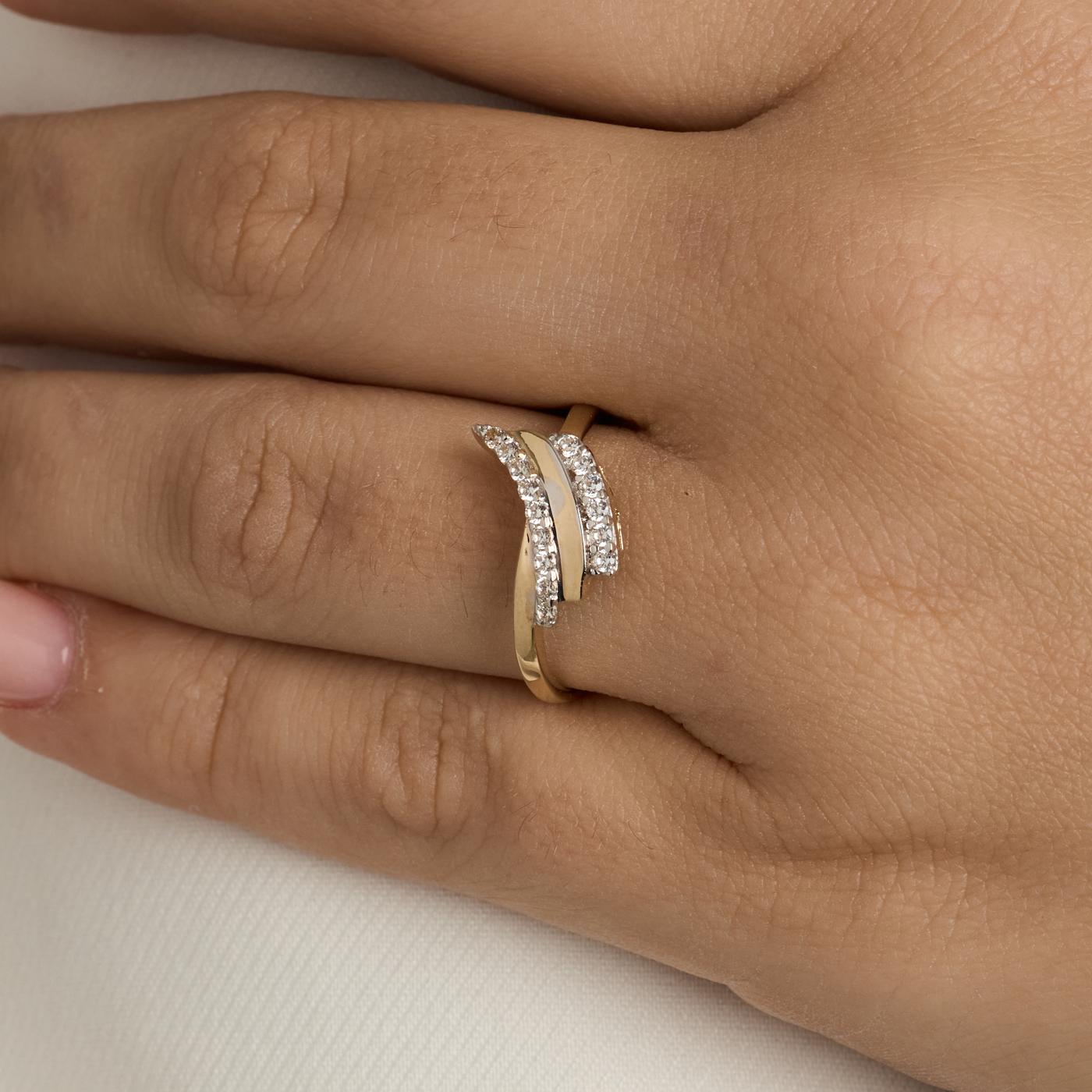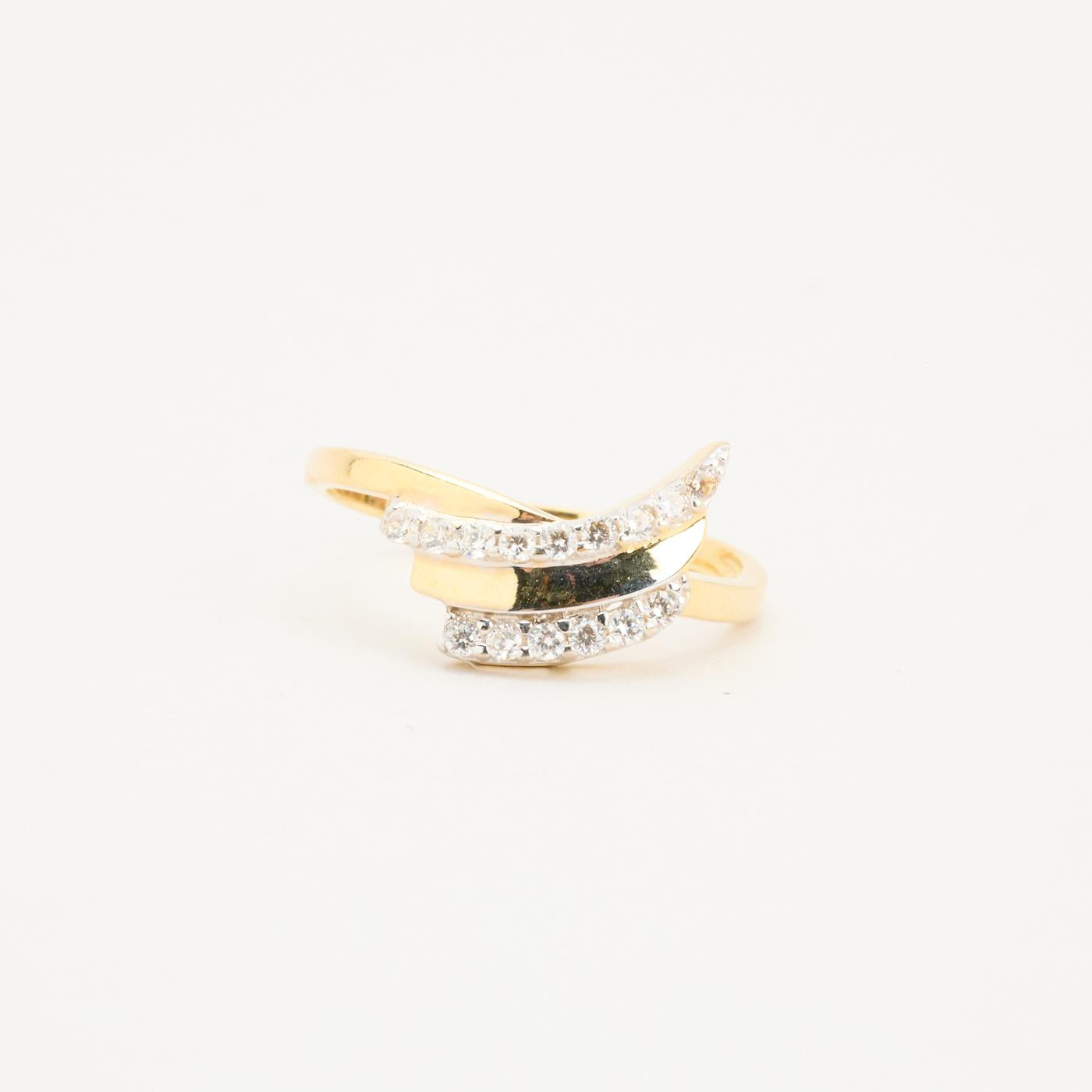 Crossoverring i 14 karat med en Zirkonia str. 56