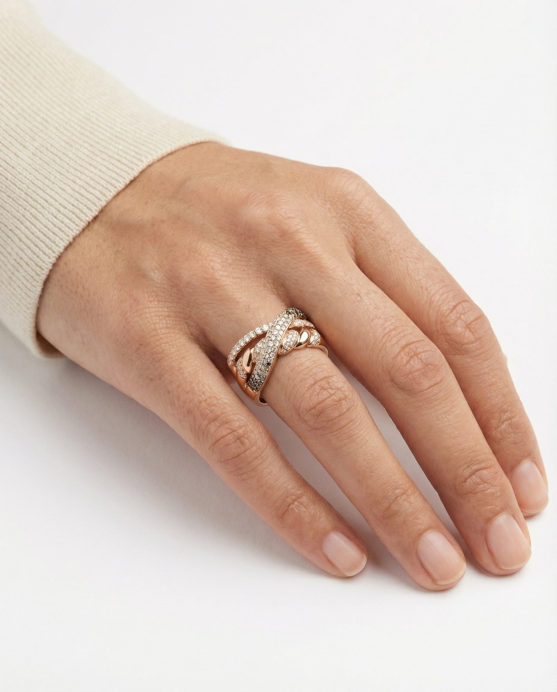 Crossoverring i 18K rosenguld med diamanter (0.54 ct), Str. 53