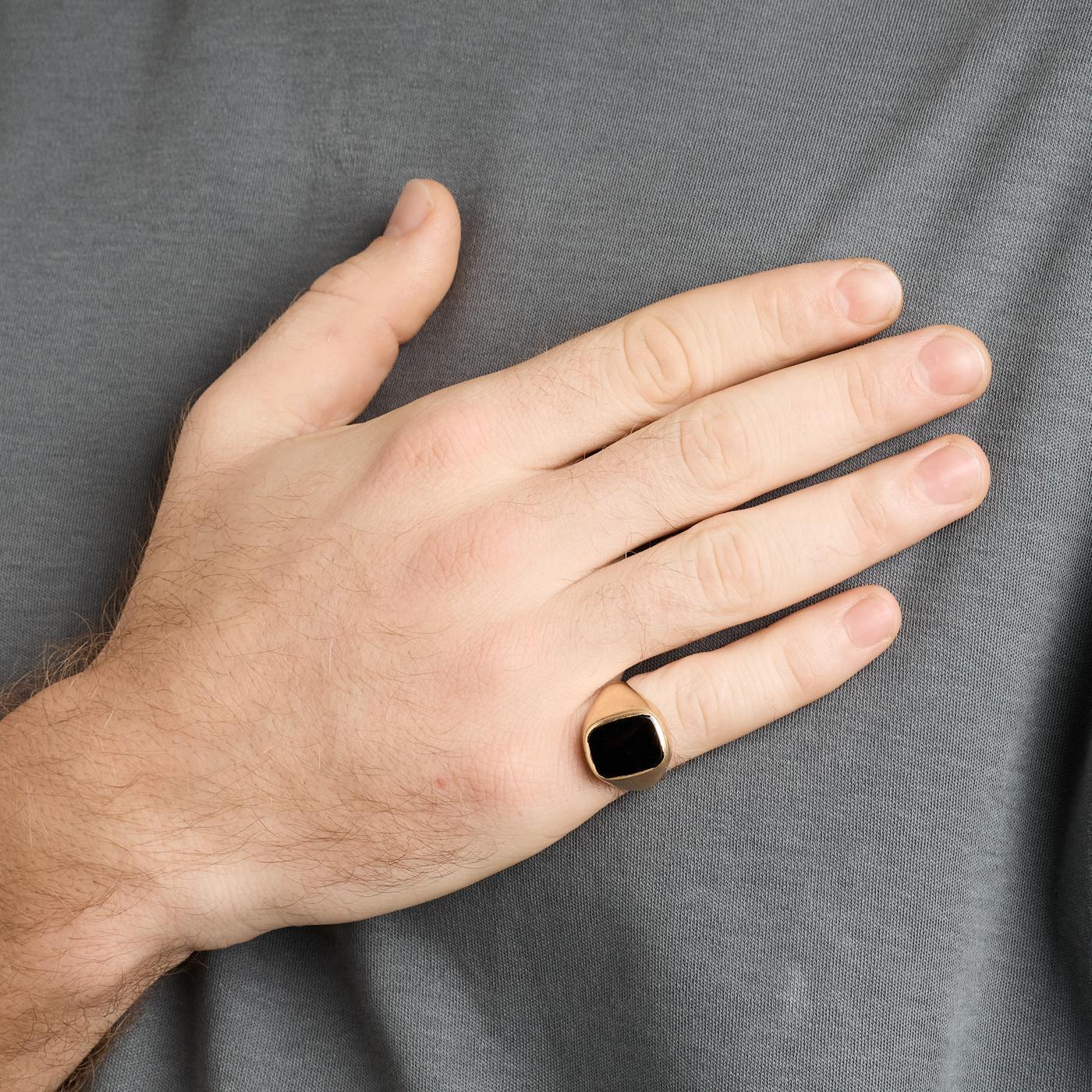 Signetring i 14K guld med onyx, Str. 60