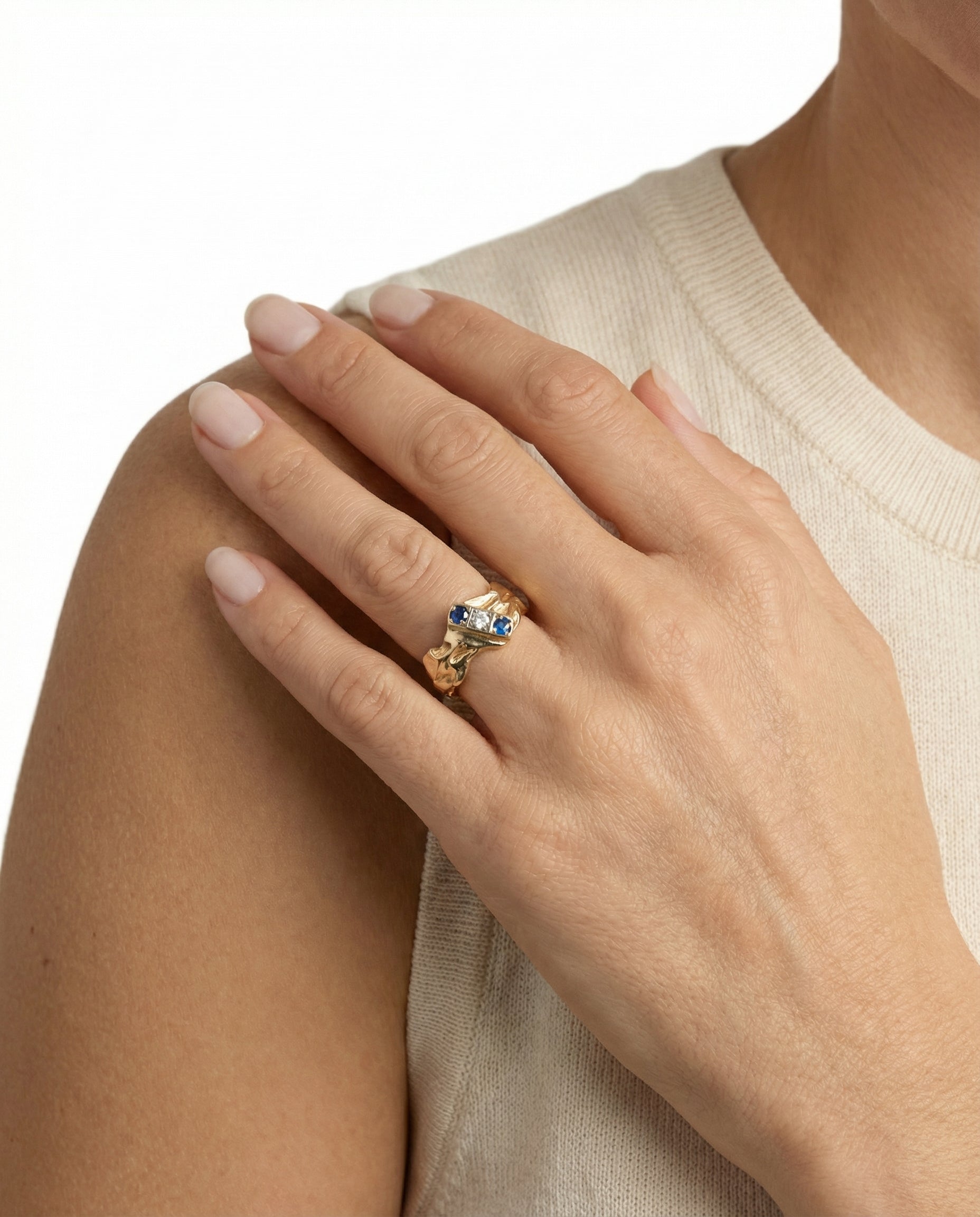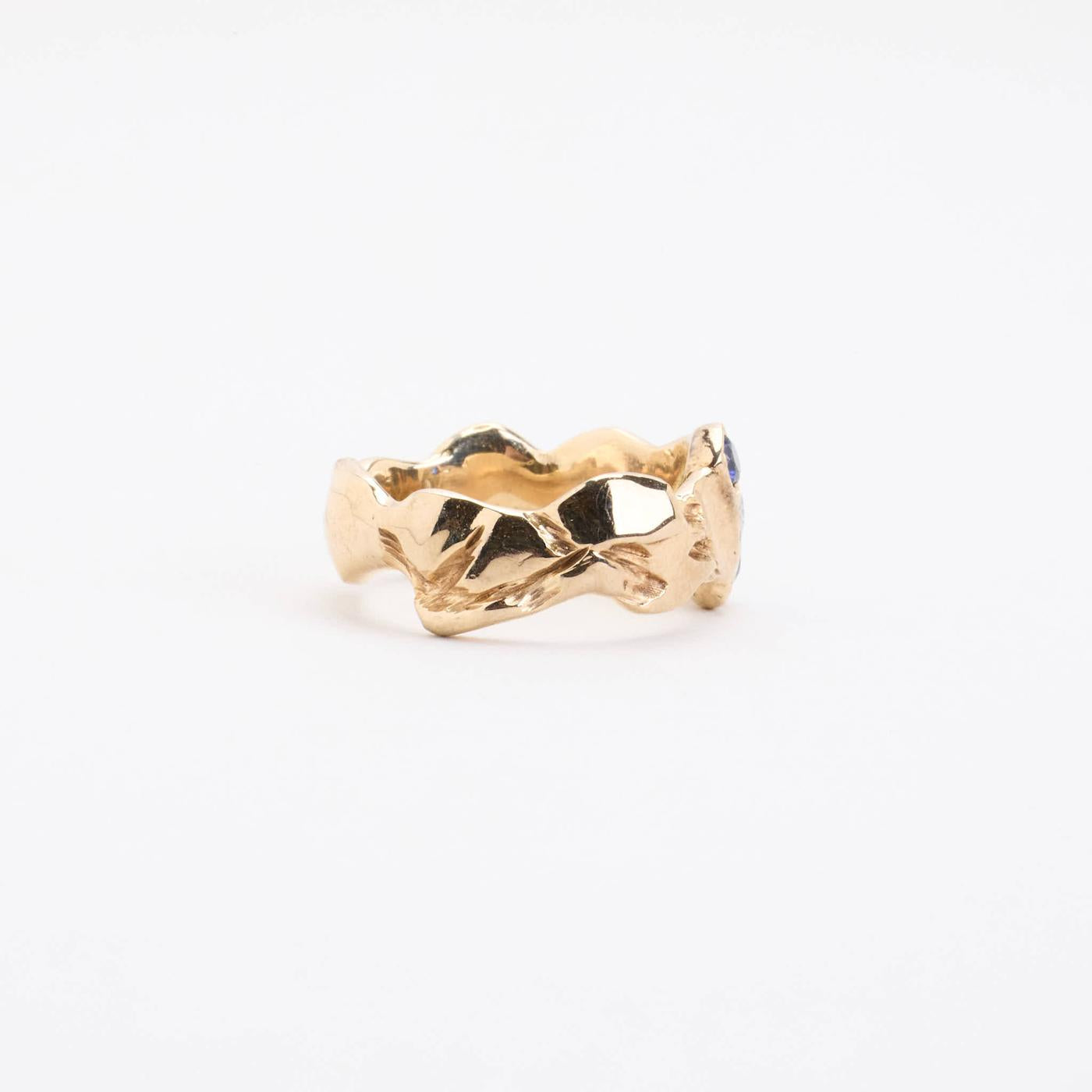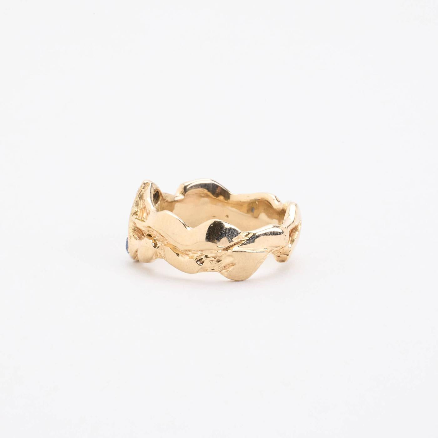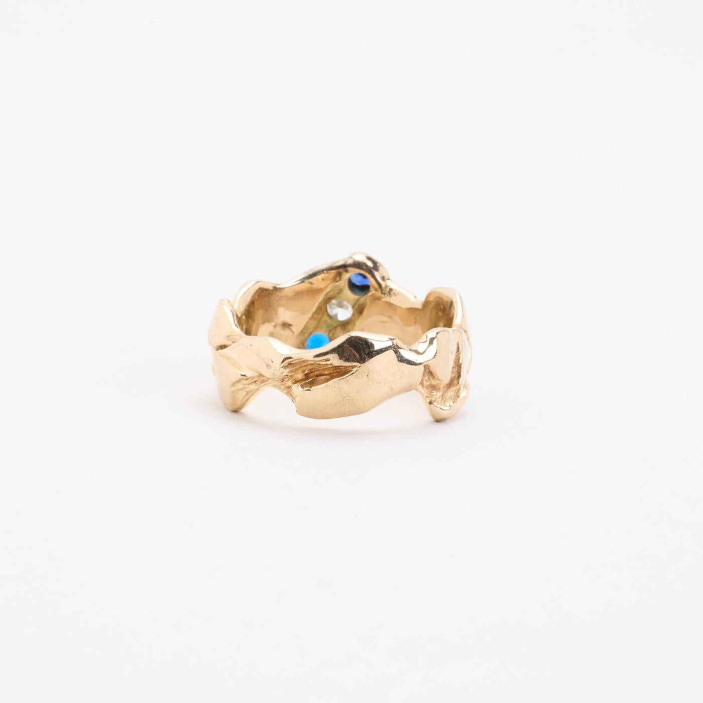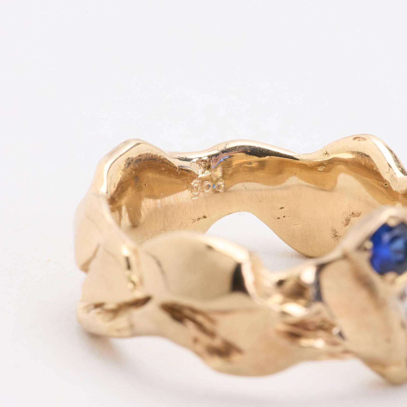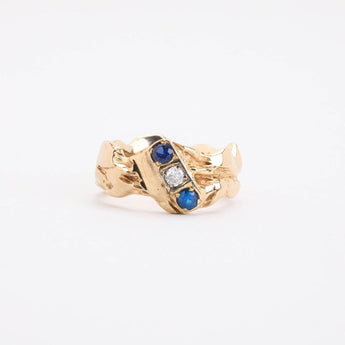 Trestensring i 14K guld med diamanter og safirer (0.1 ct), Str. 55