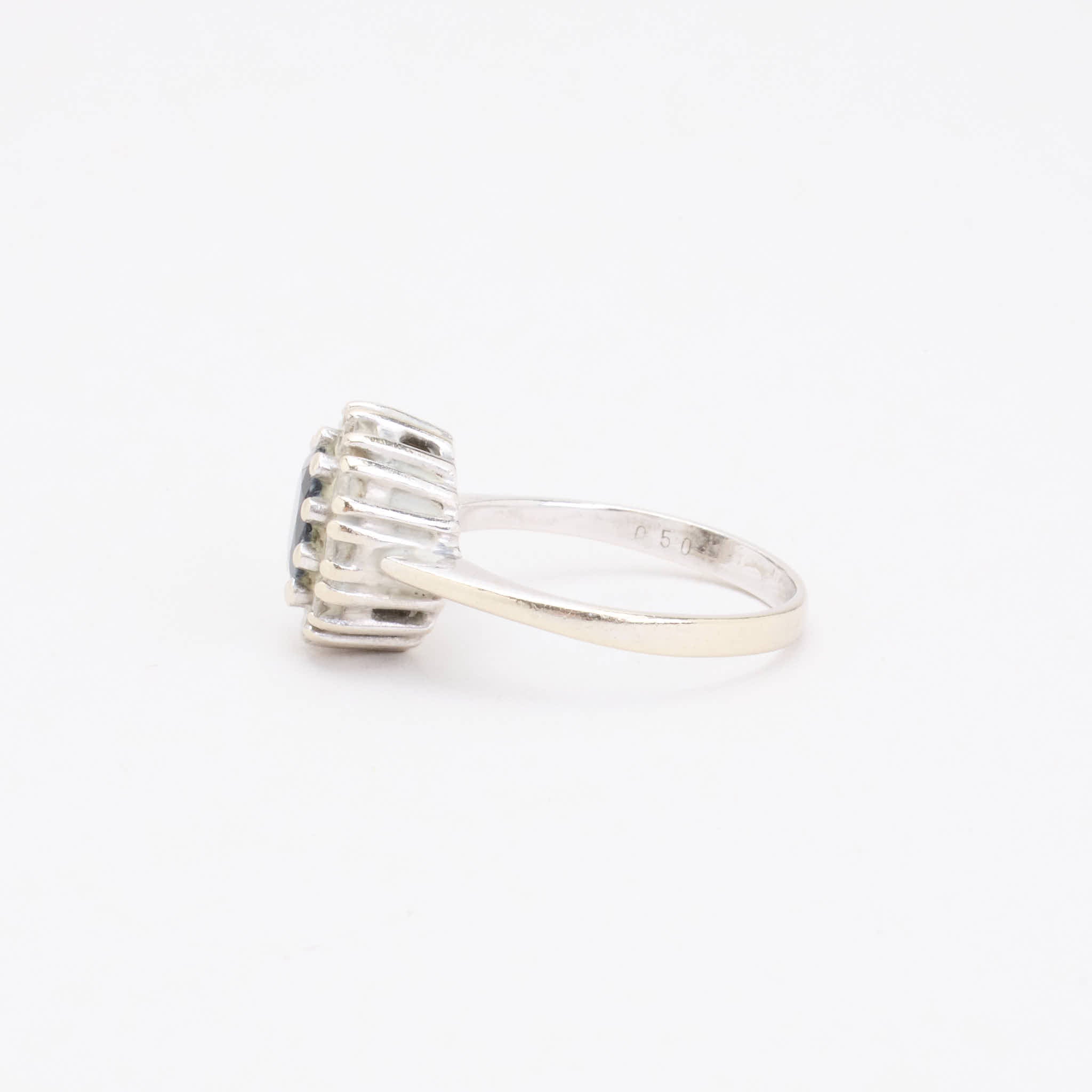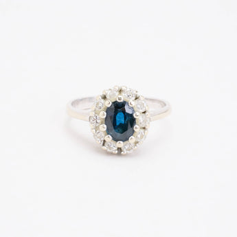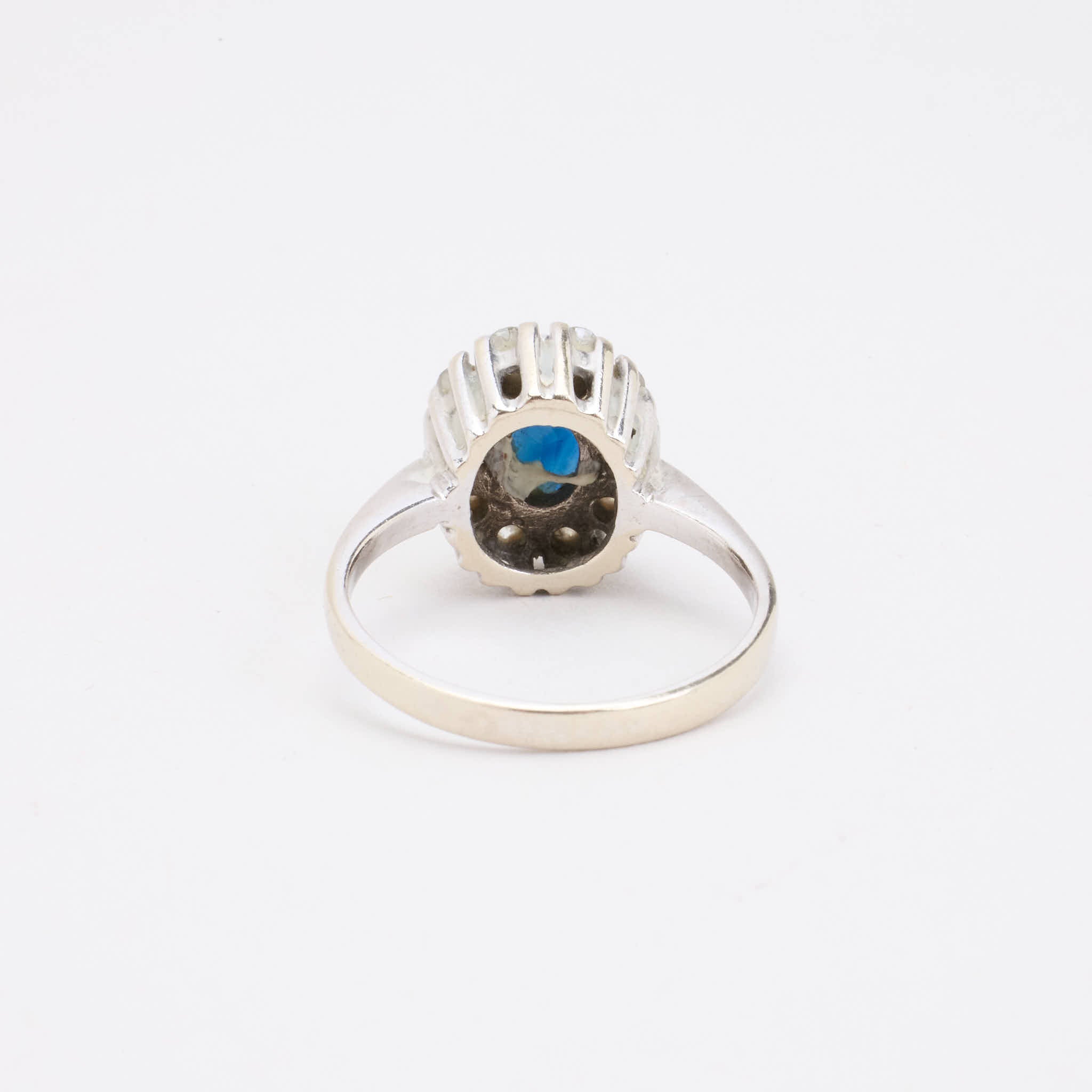 Rosetring med diamant (0.58 ct) i 14 karat med blå sten str. 54