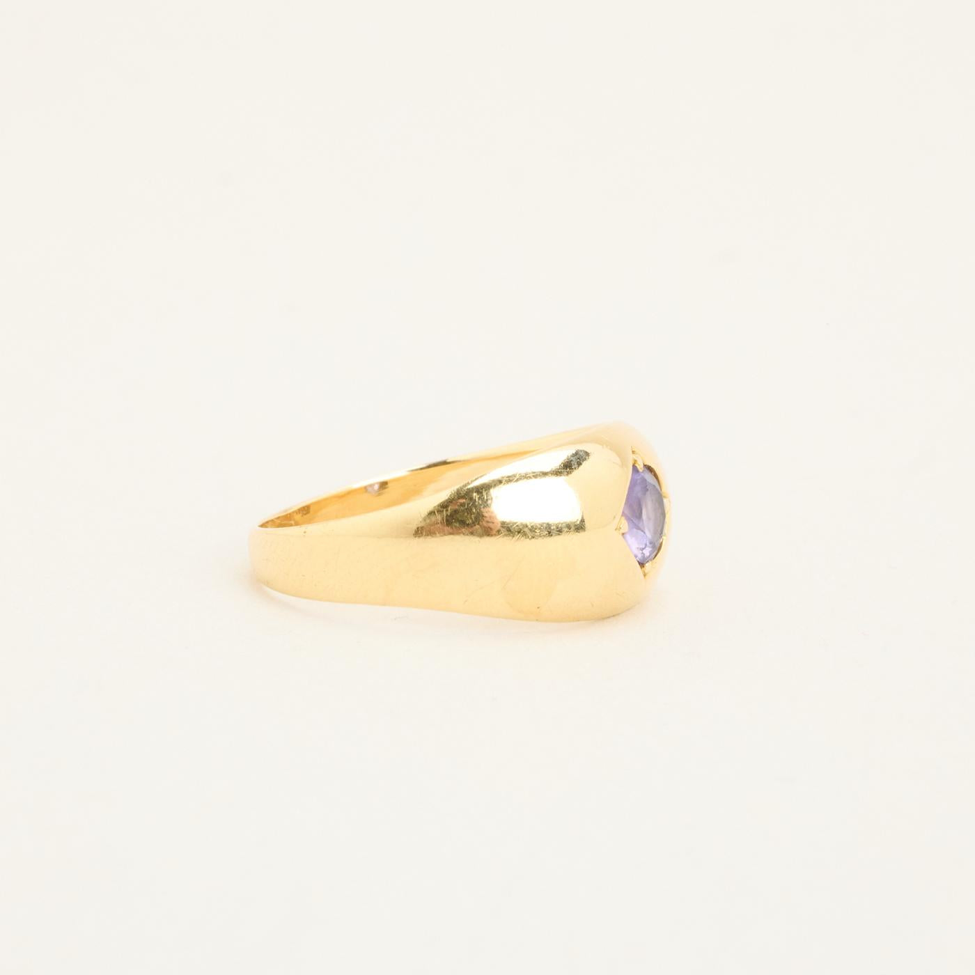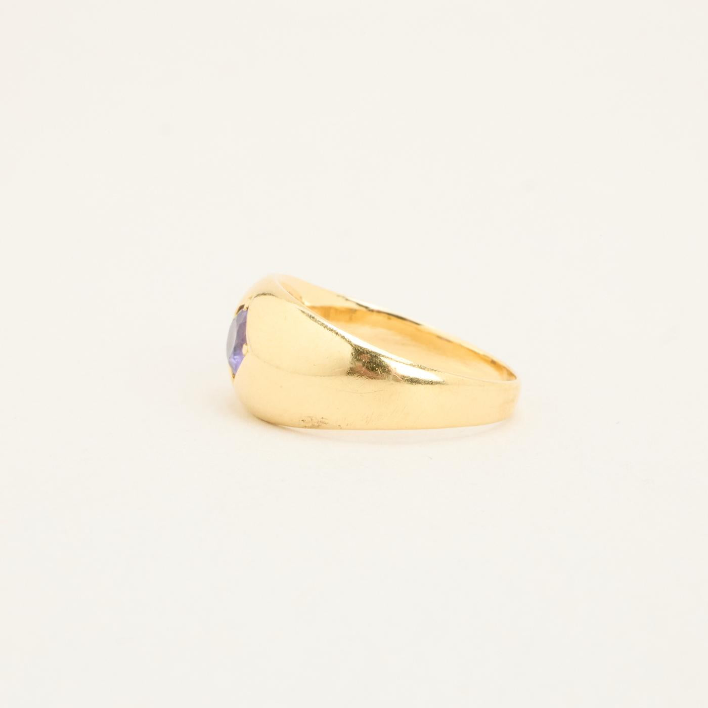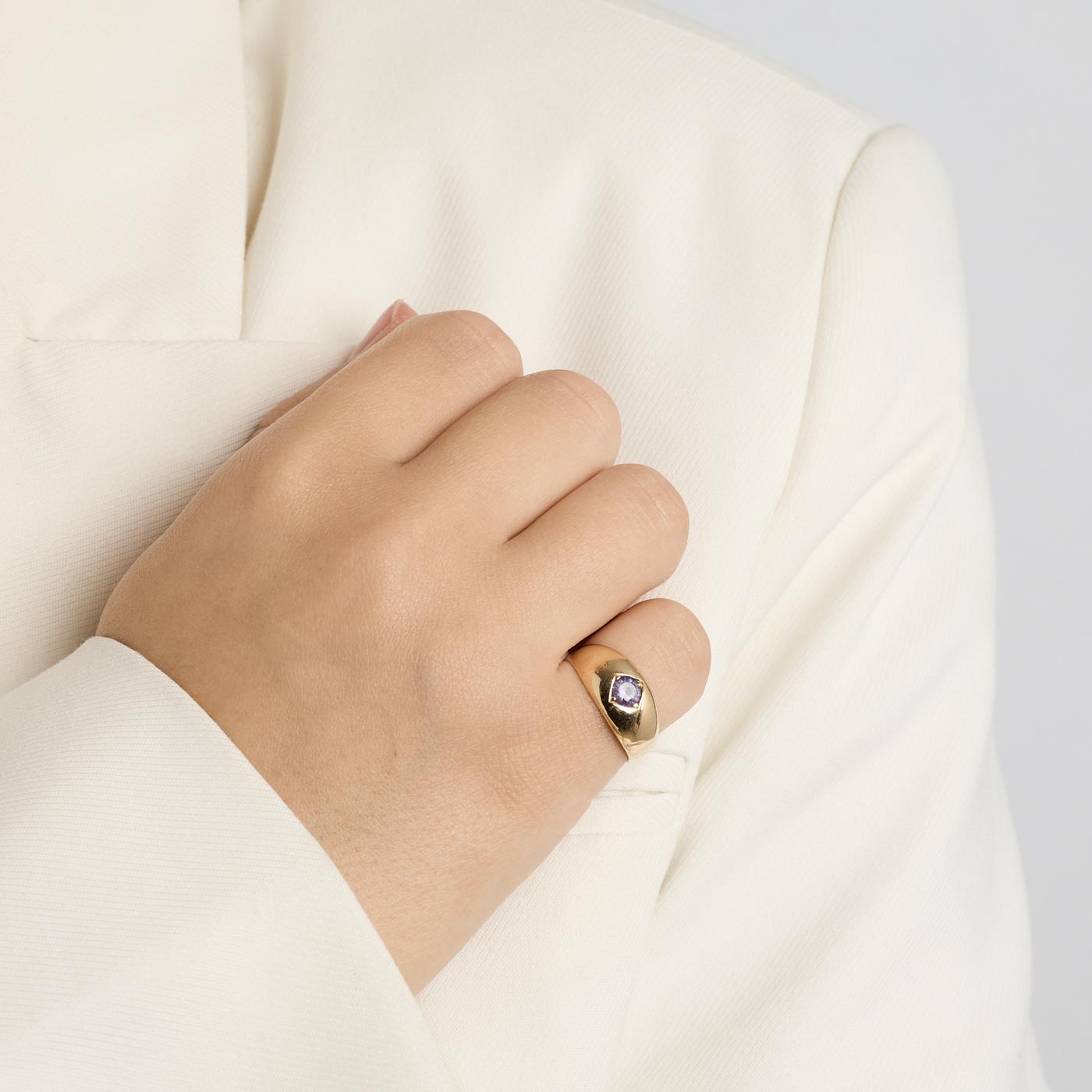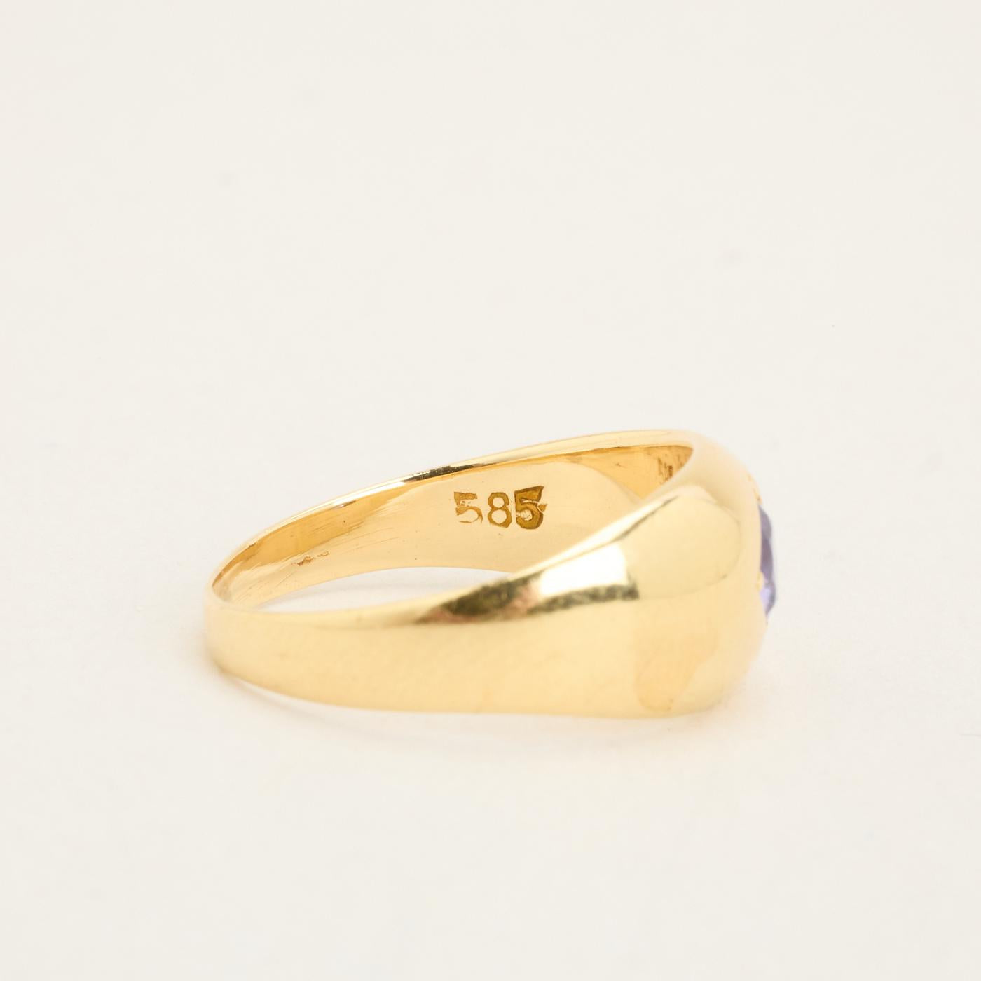 Gypsyring i 14K guld med en lilla sten, Str. 52