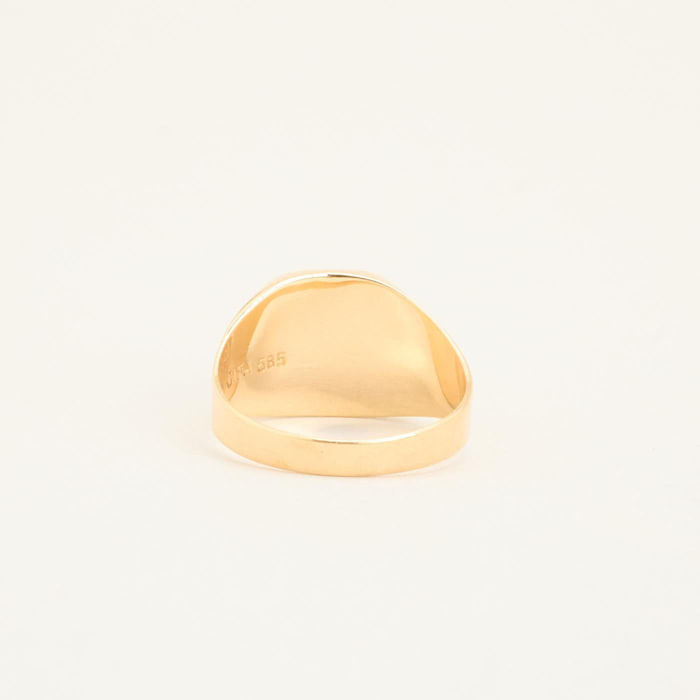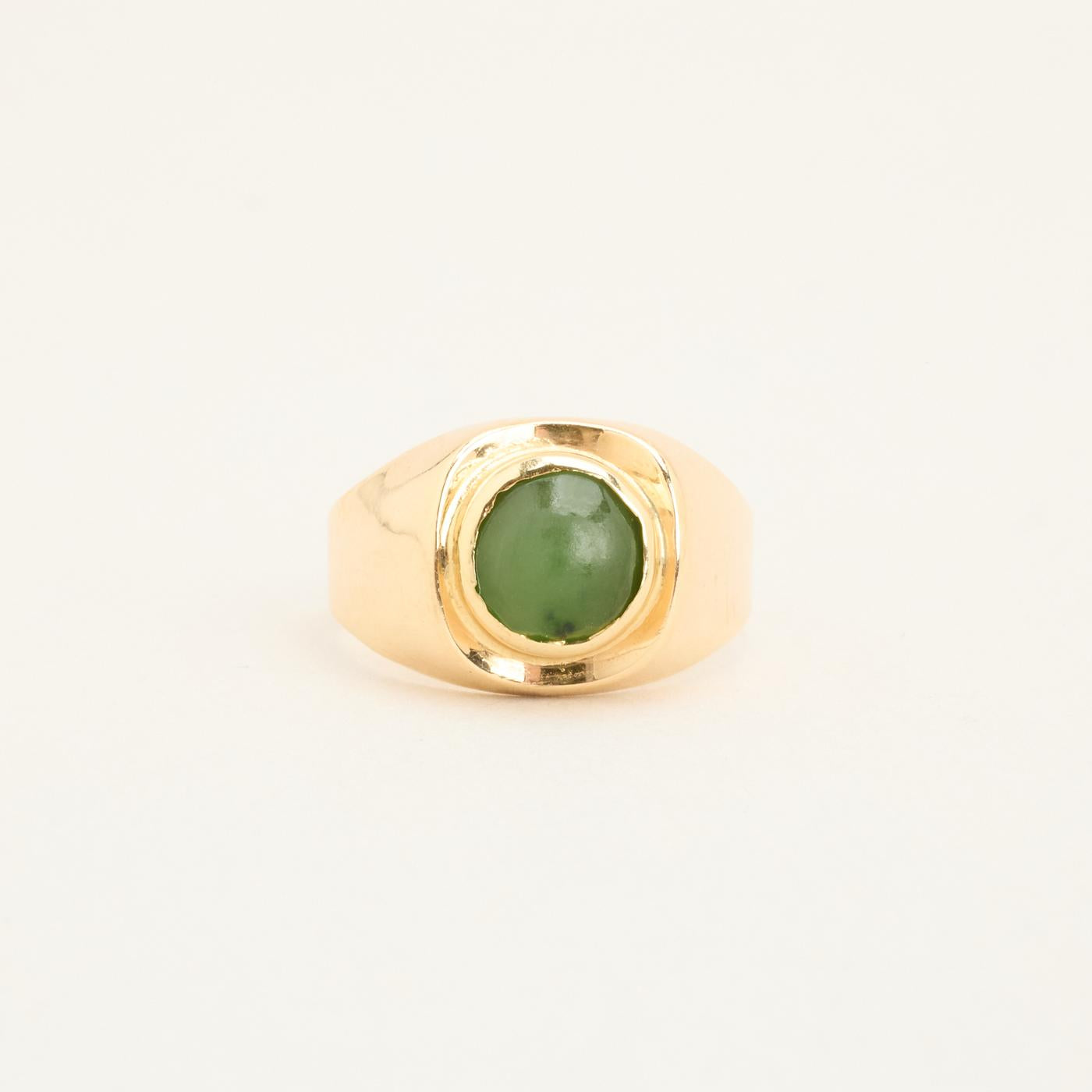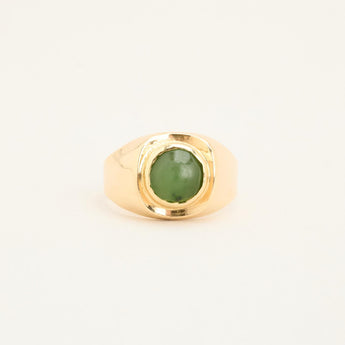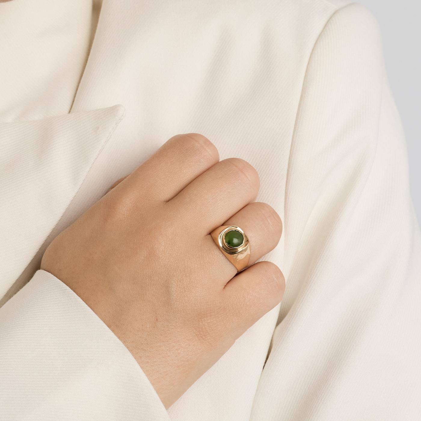 Signetring i 14 karat med grøn sten str. 54