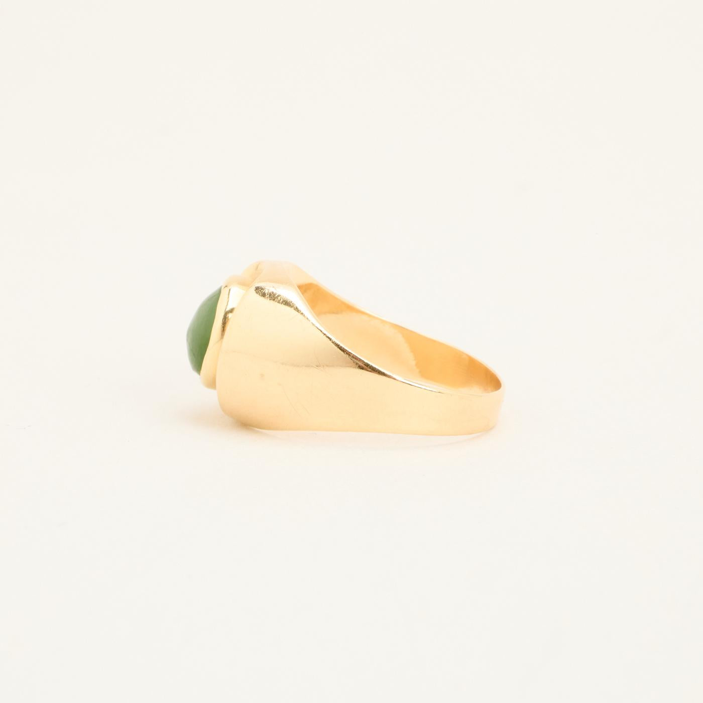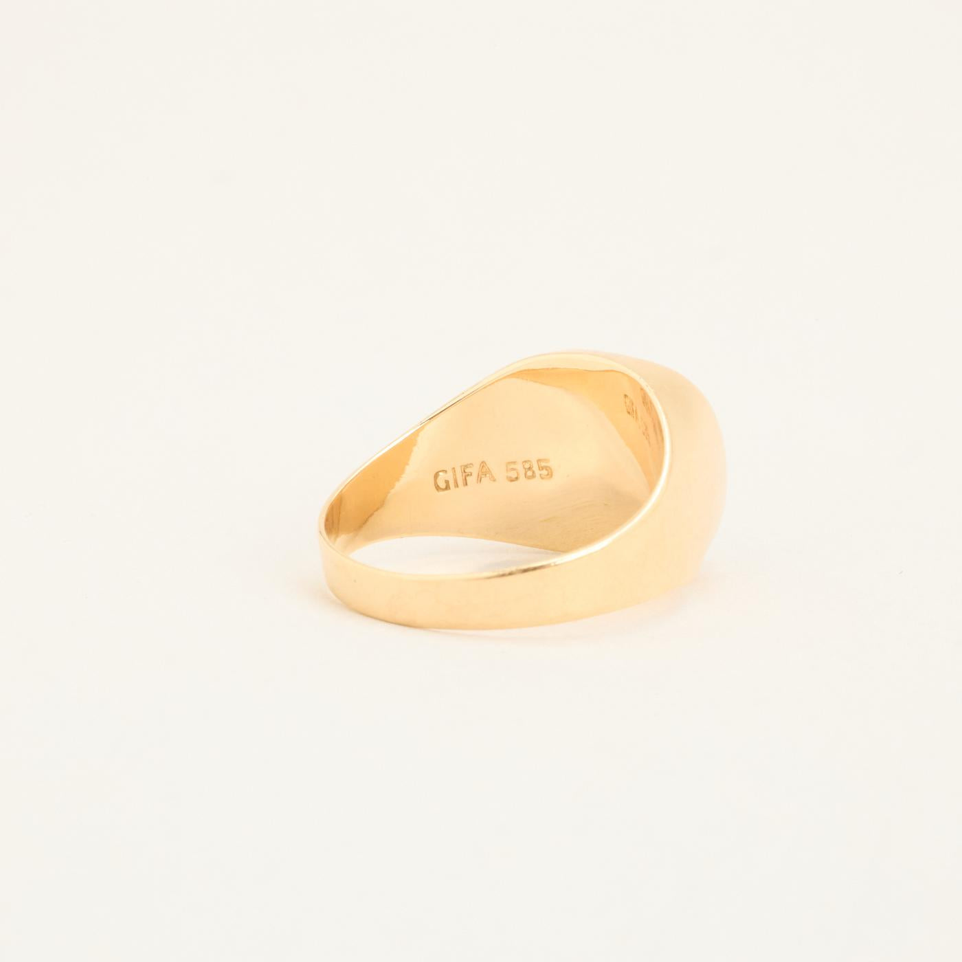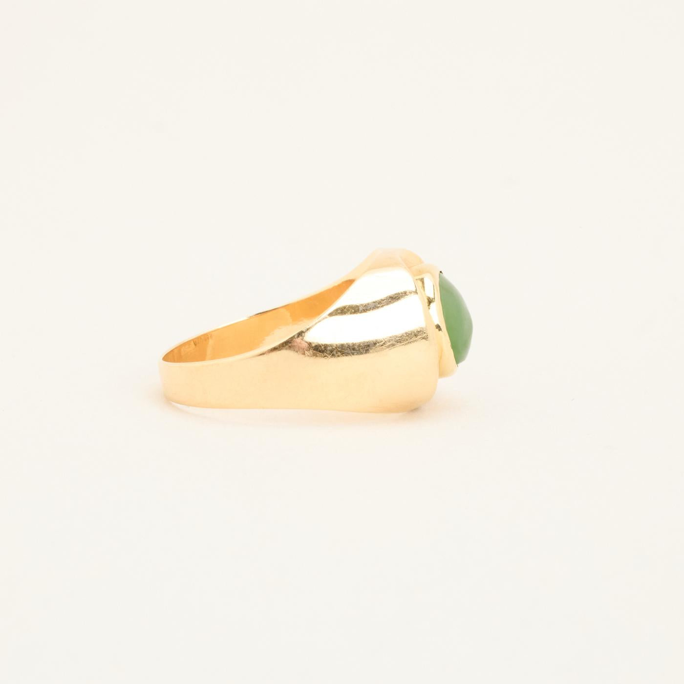 Signetring i 14 karat med grøn sten str. 54