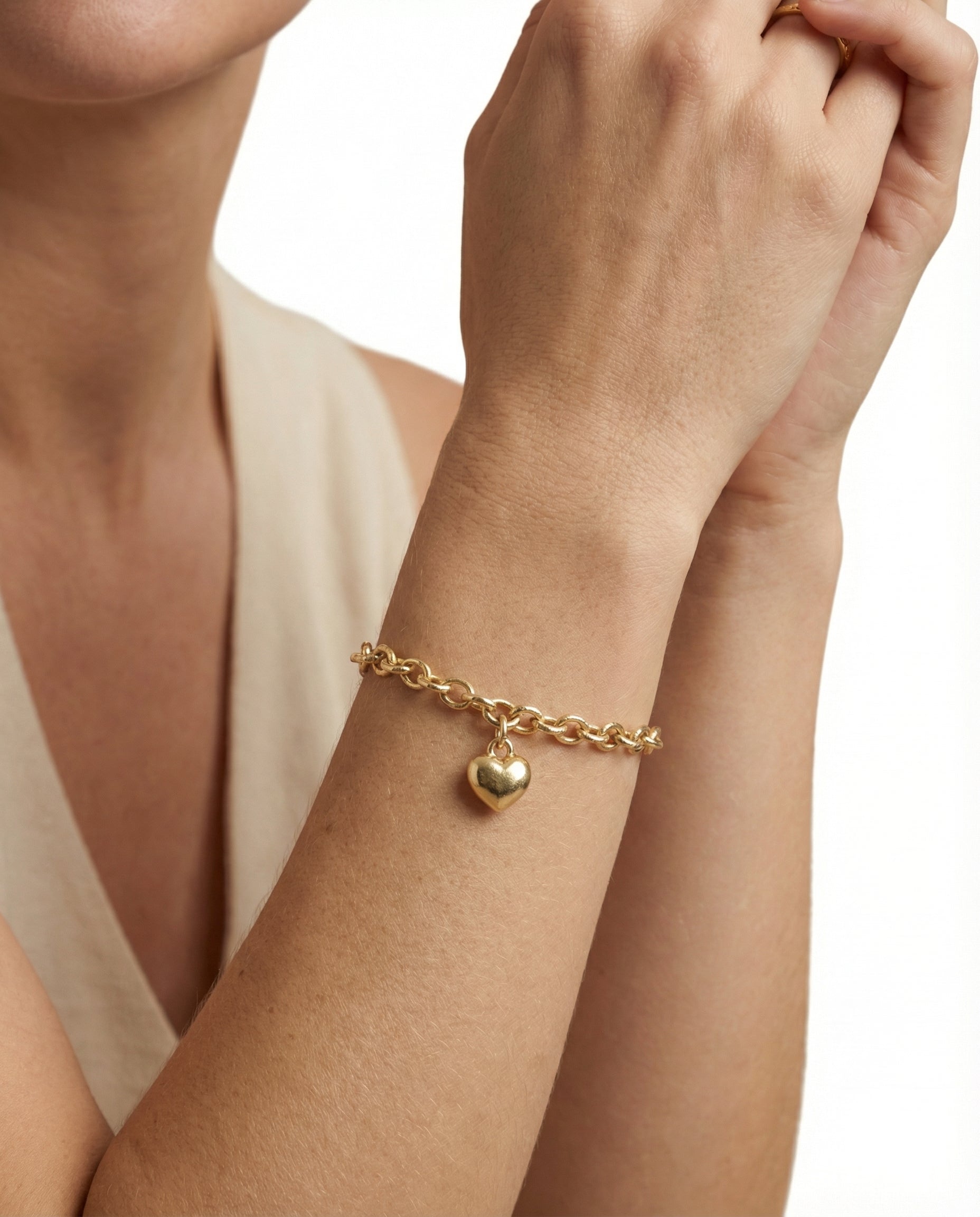 Model: Hjerte Ole Lynggaard charm-armbånd i 14 karat, 19 cm