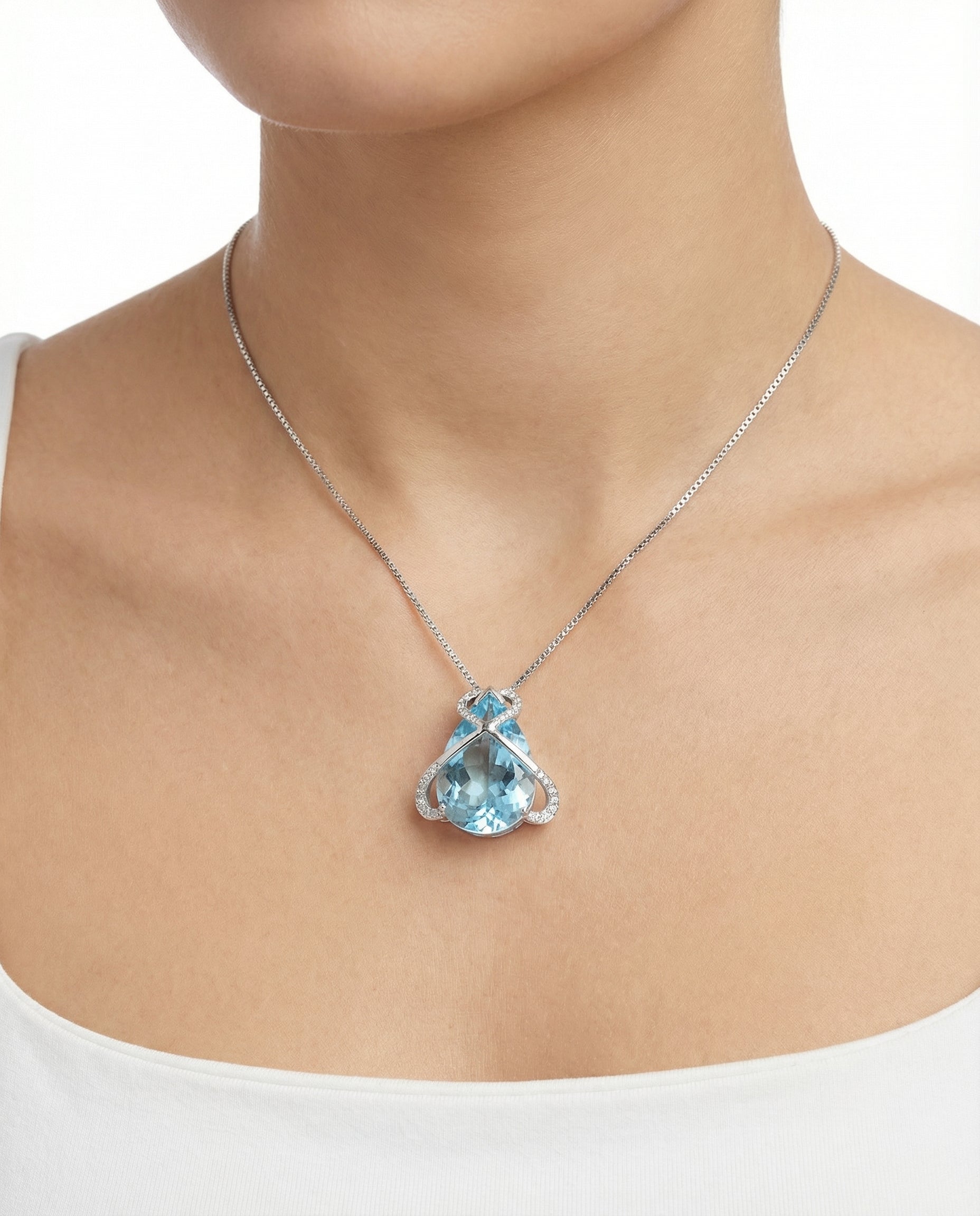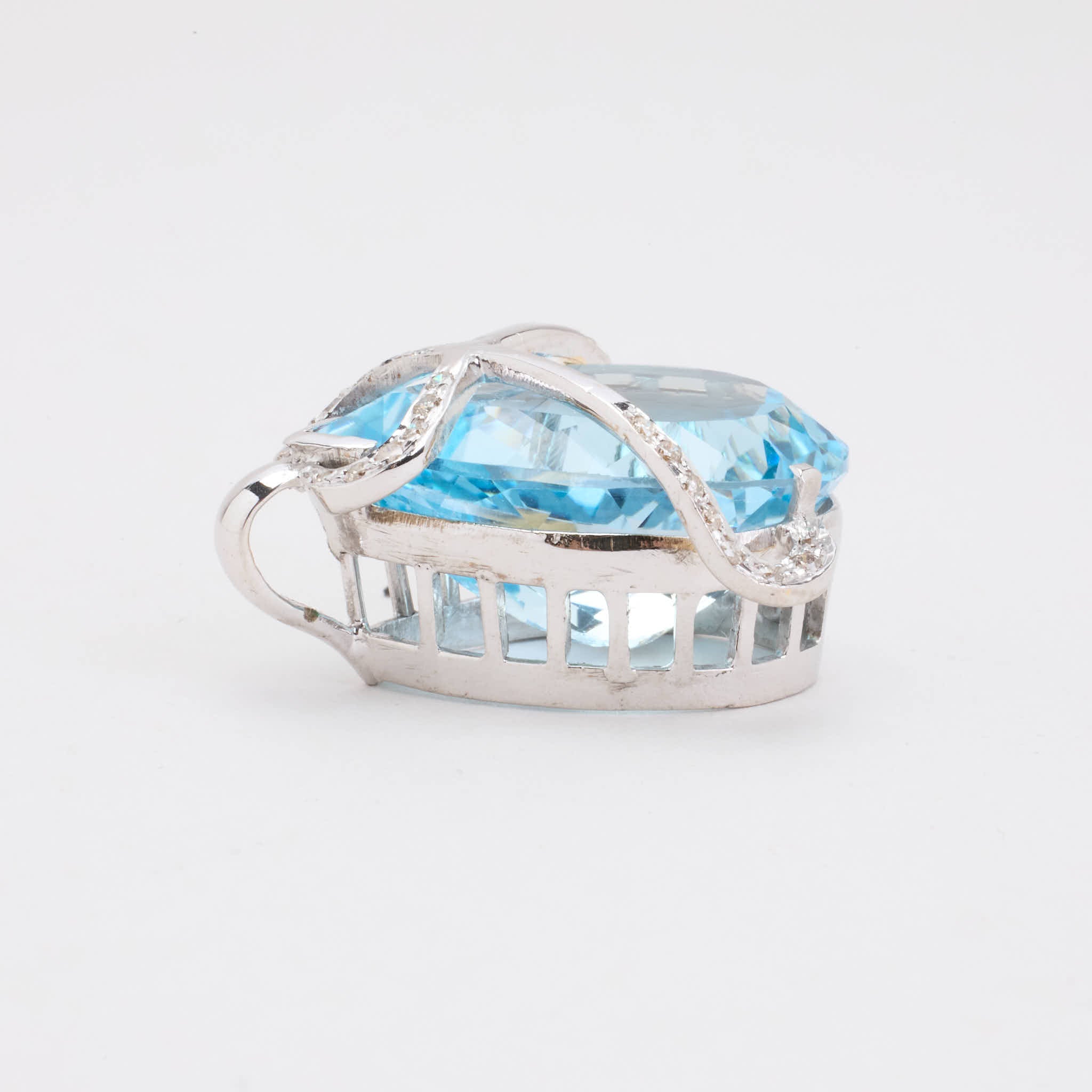 Vedhæng med diamant (0.29 ct) i 14 karat med lyseblå sten, 2.5 cm