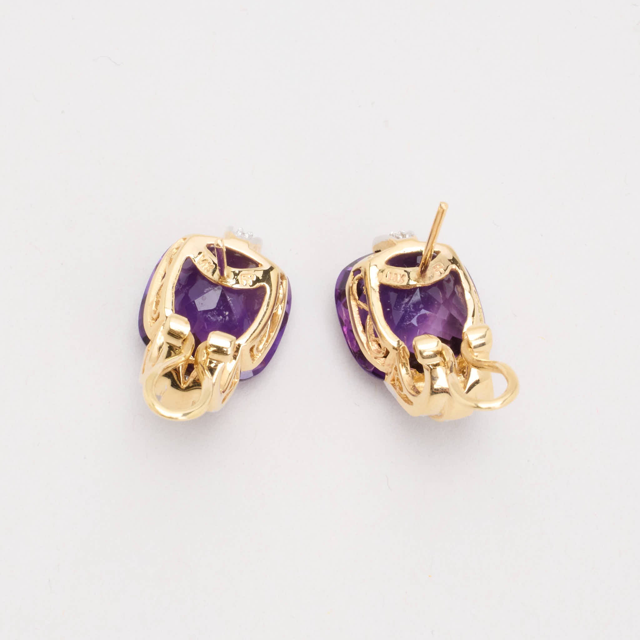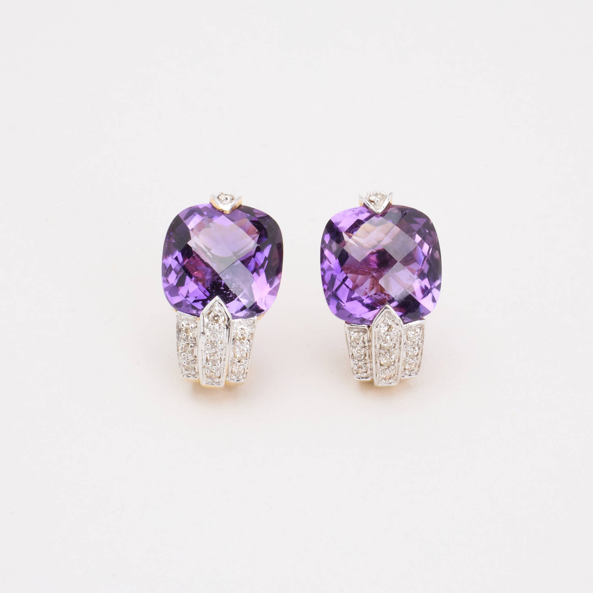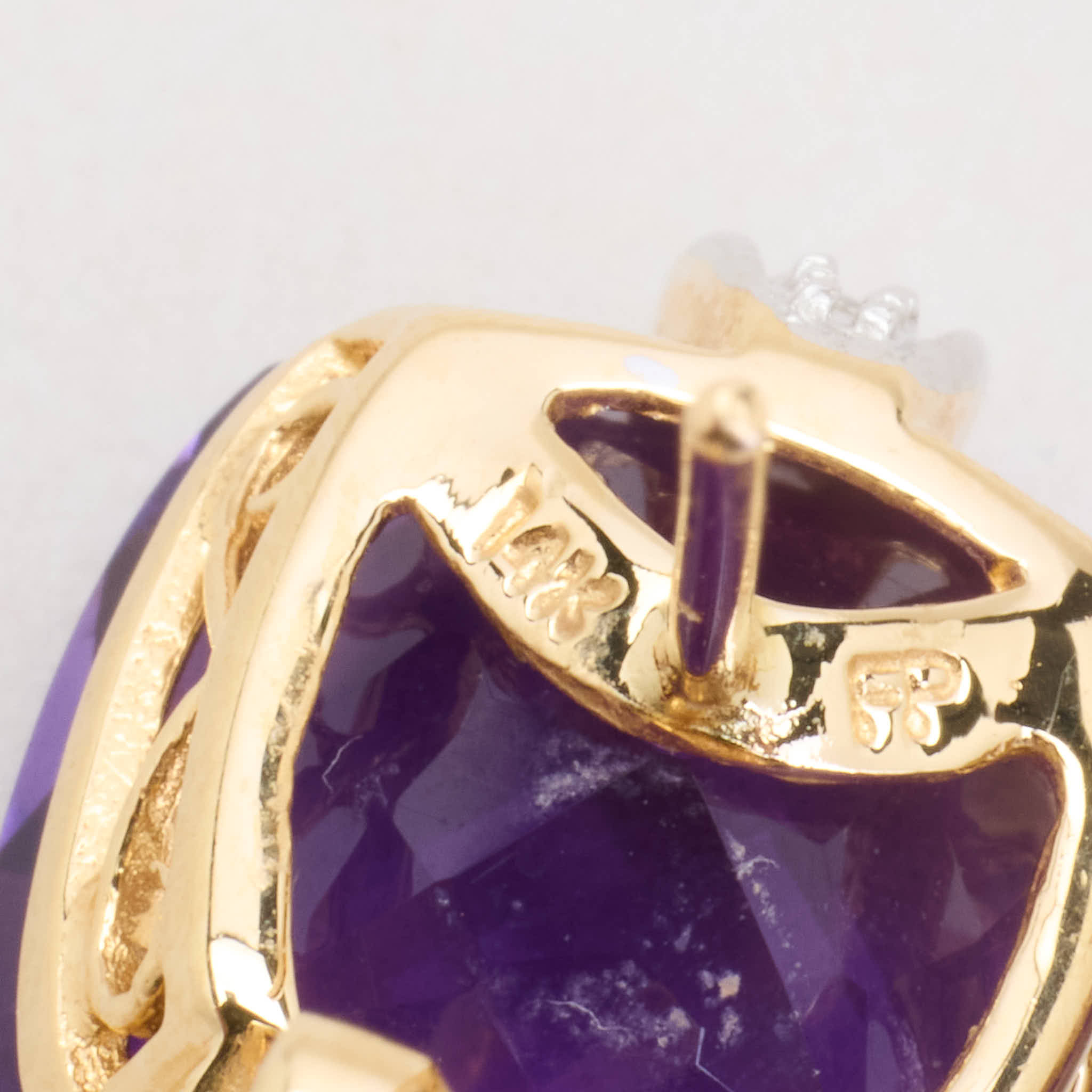 Øreringe med stik med diamant (0.25 ct) i 14 karat med lilla sten, 1 cm