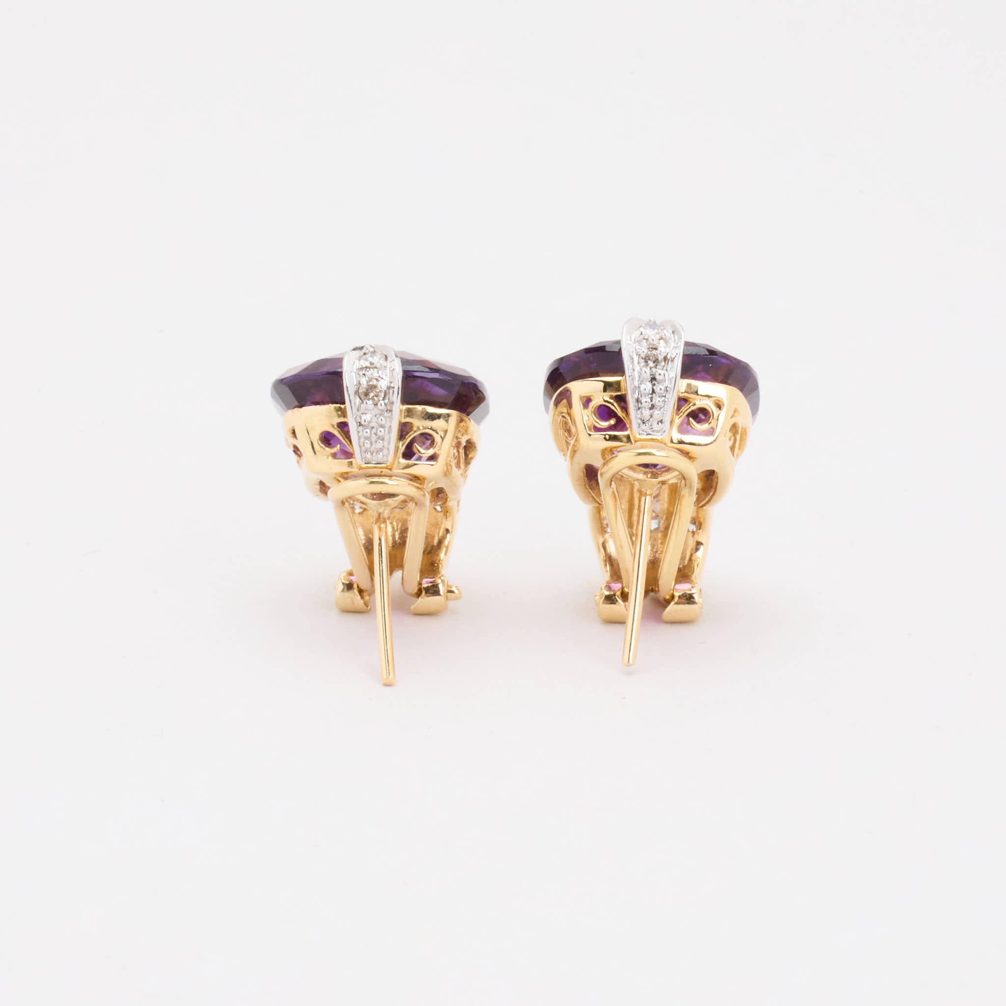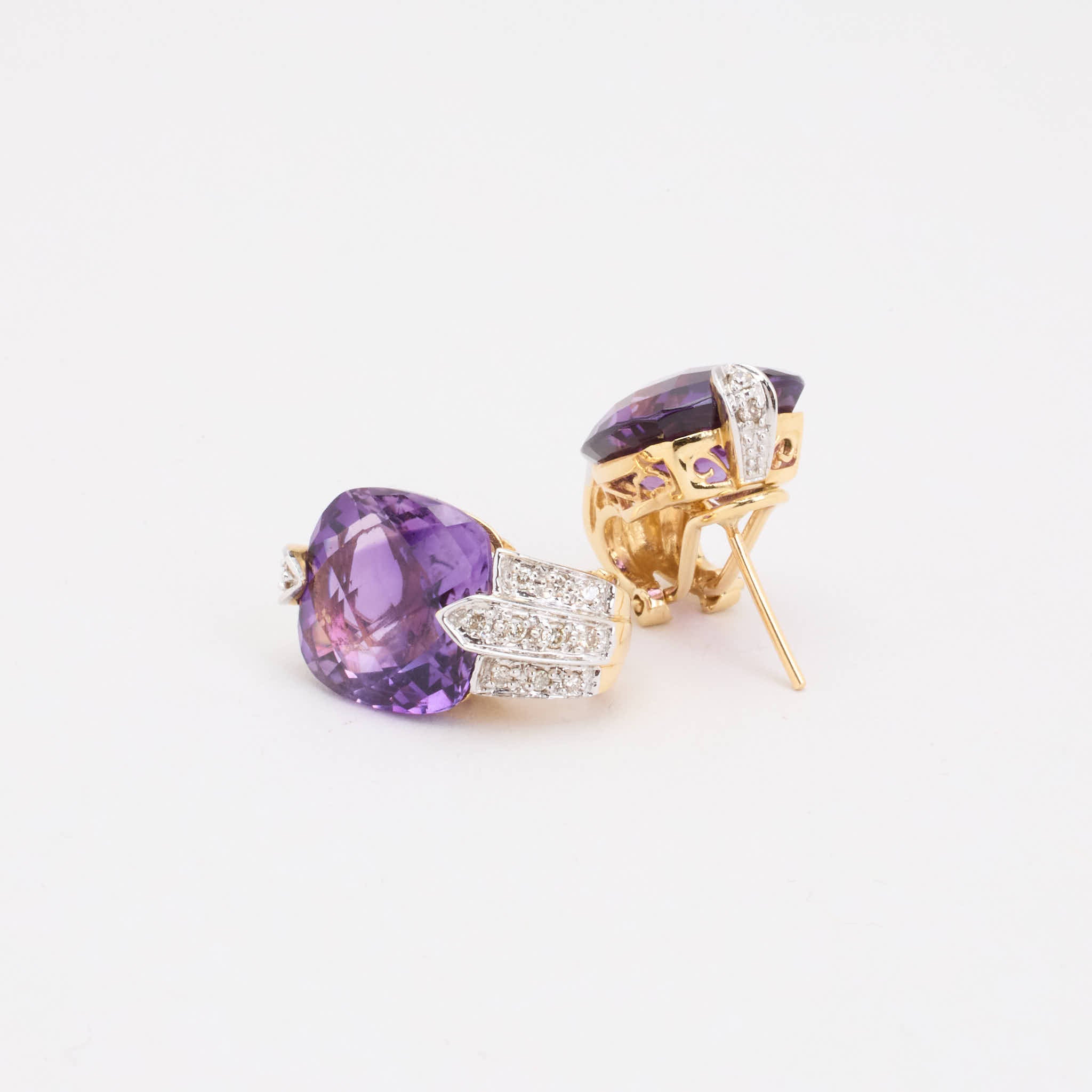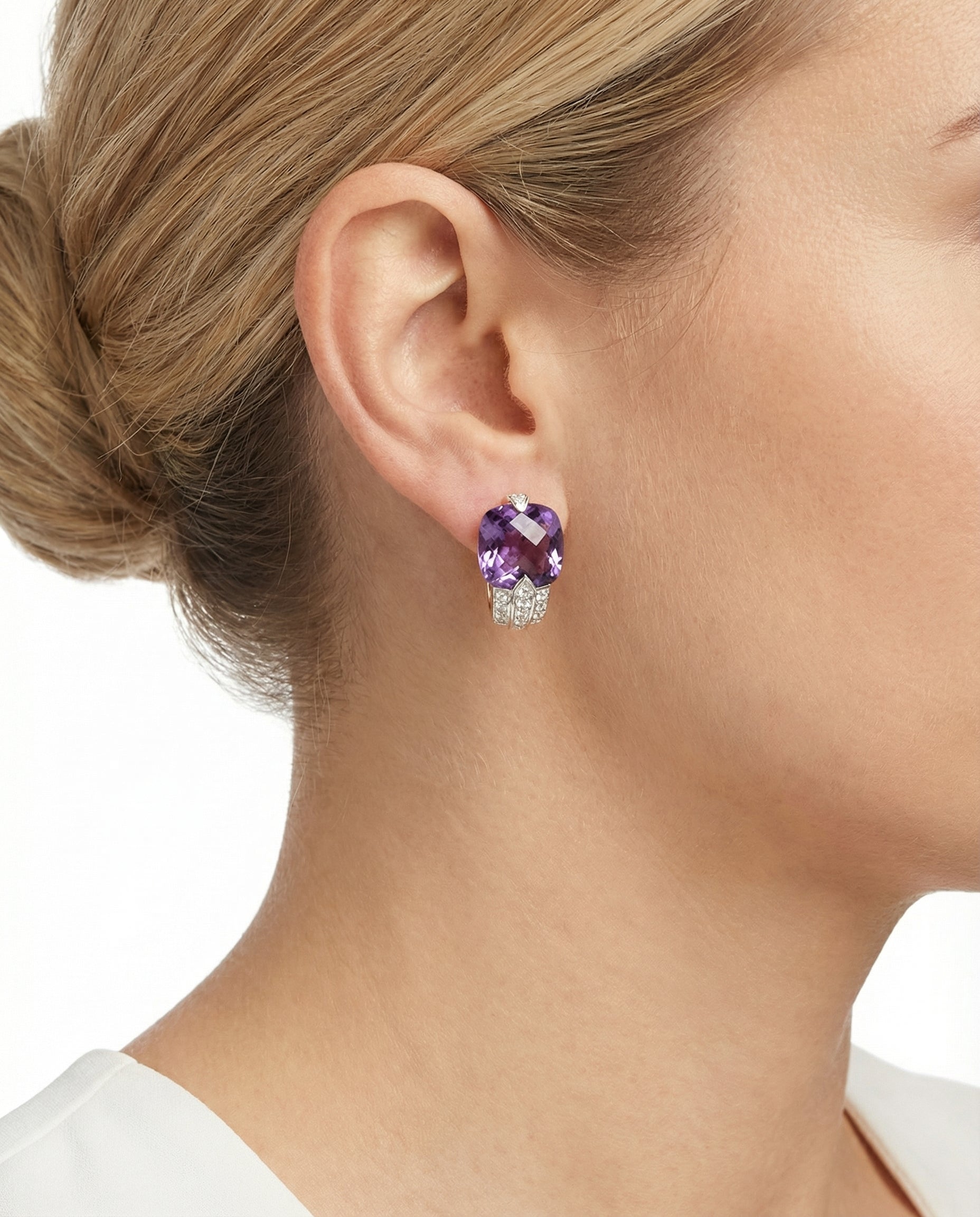 Øreringe med stik med diamant (0.25 ct) i 14 karat med lilla sten, 1 cm