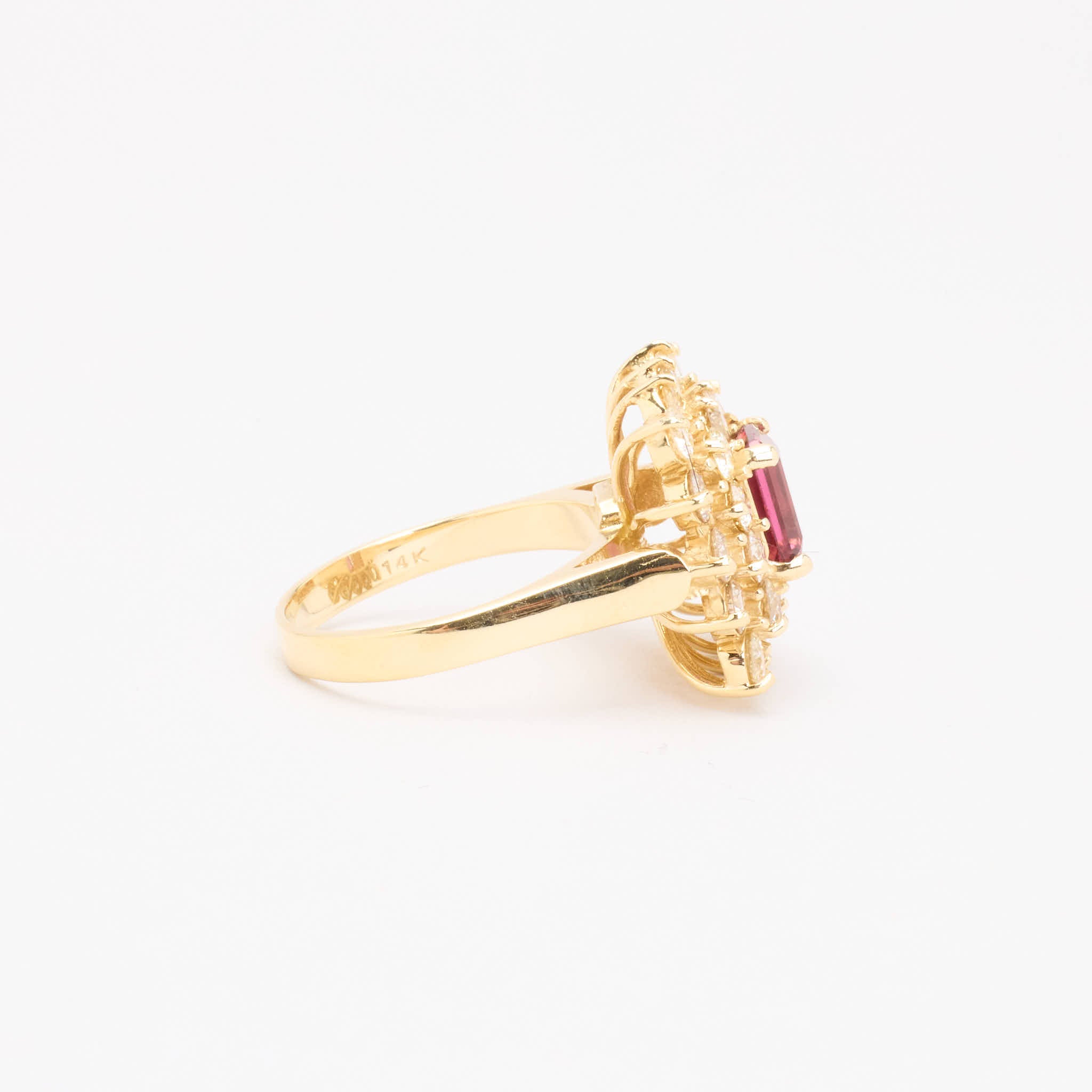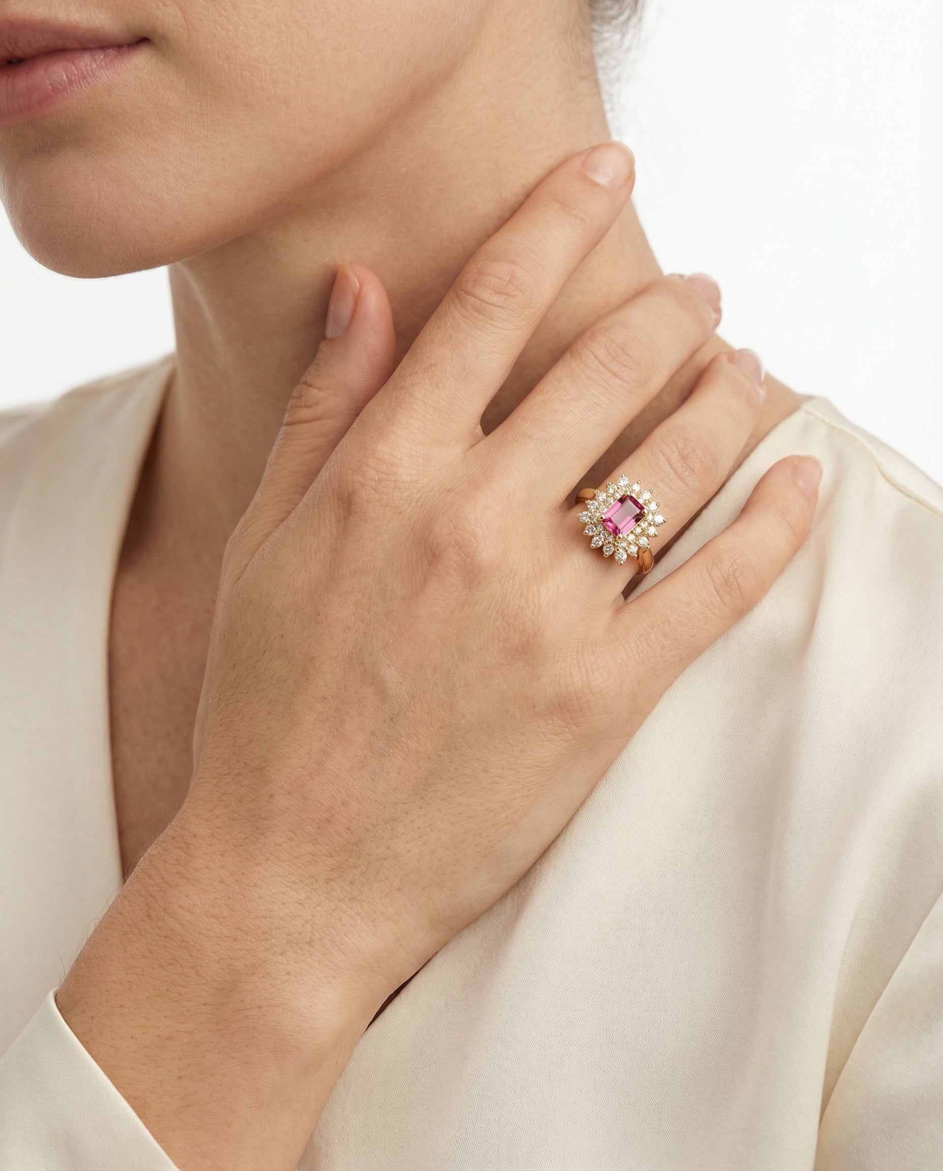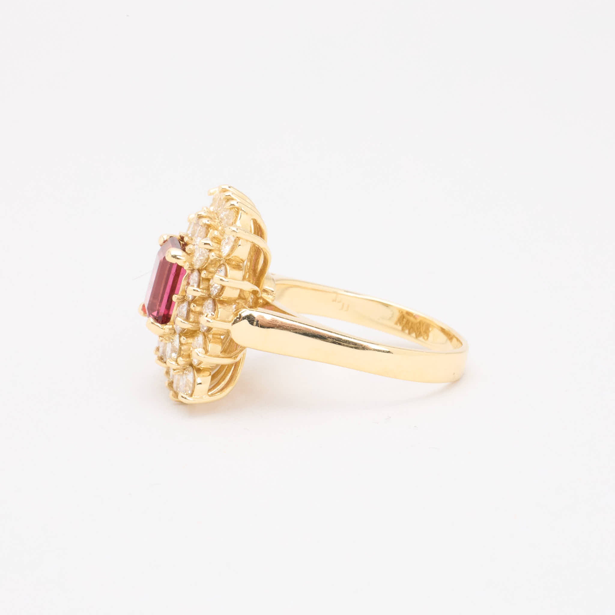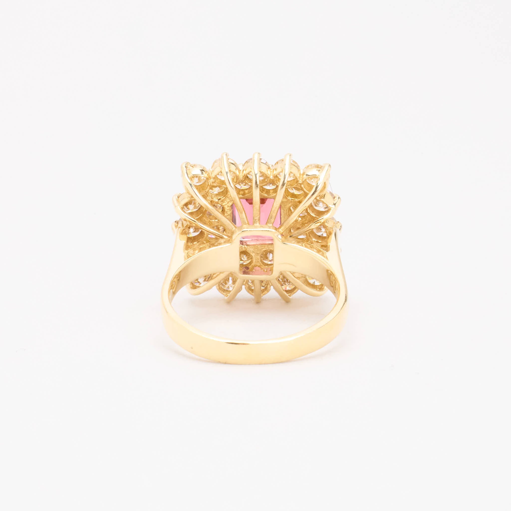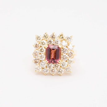 Rosetring i 18K guld med en diamant og lyserøde sten (3.76 ct), Str. 56, 49.18 g