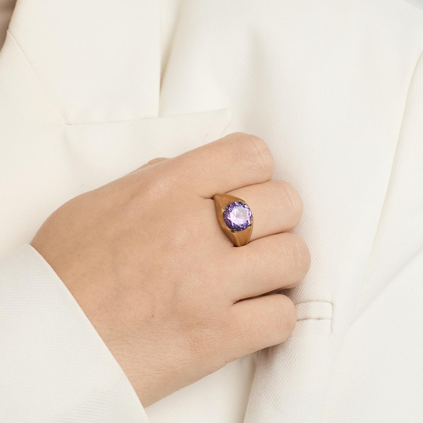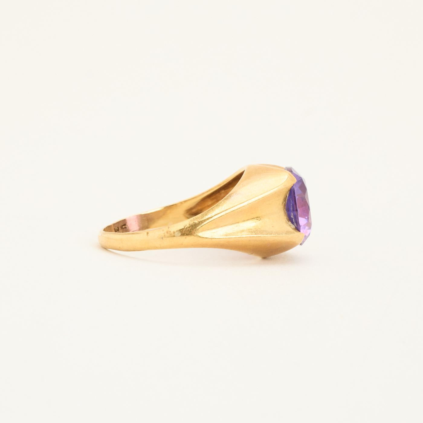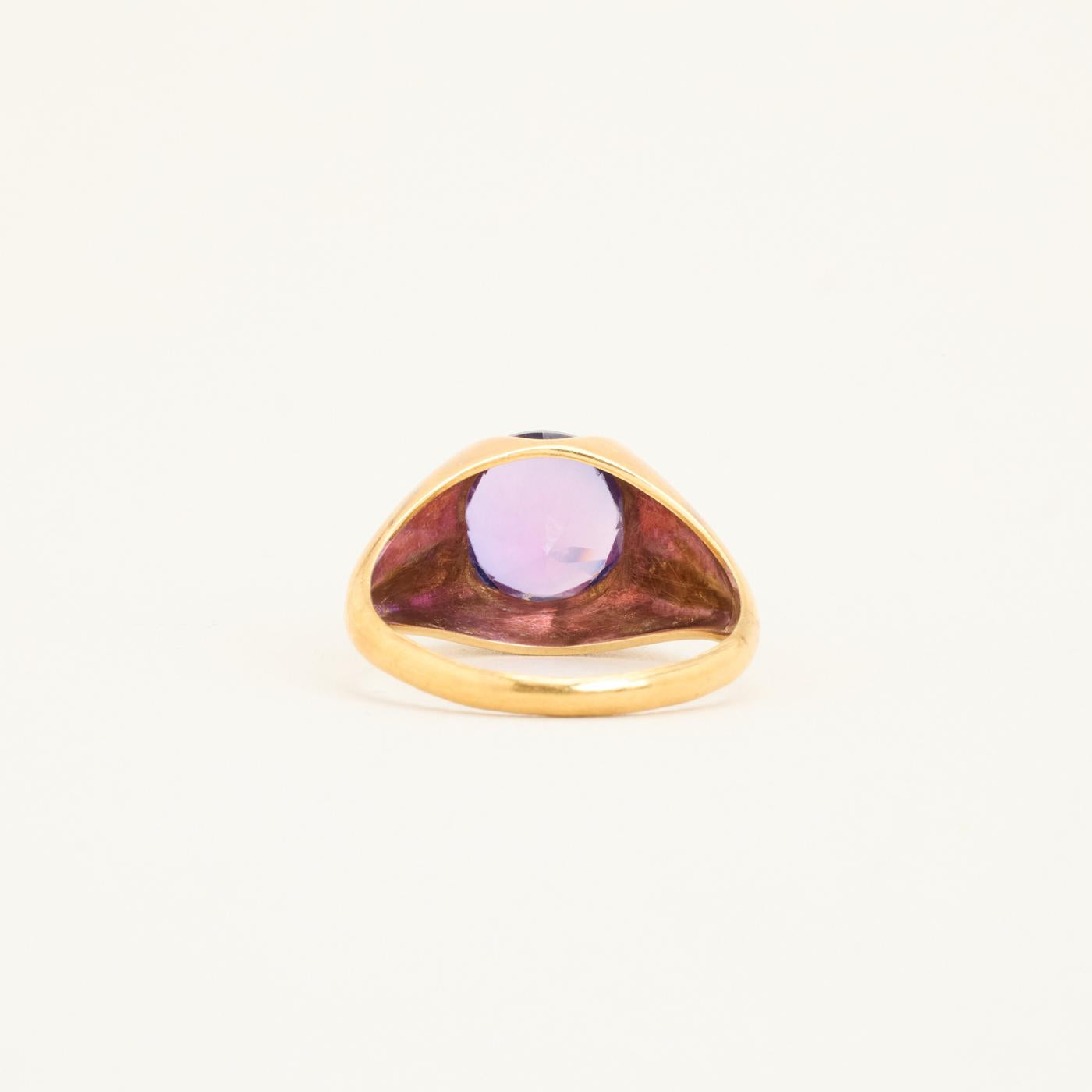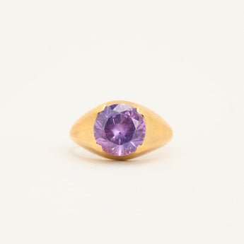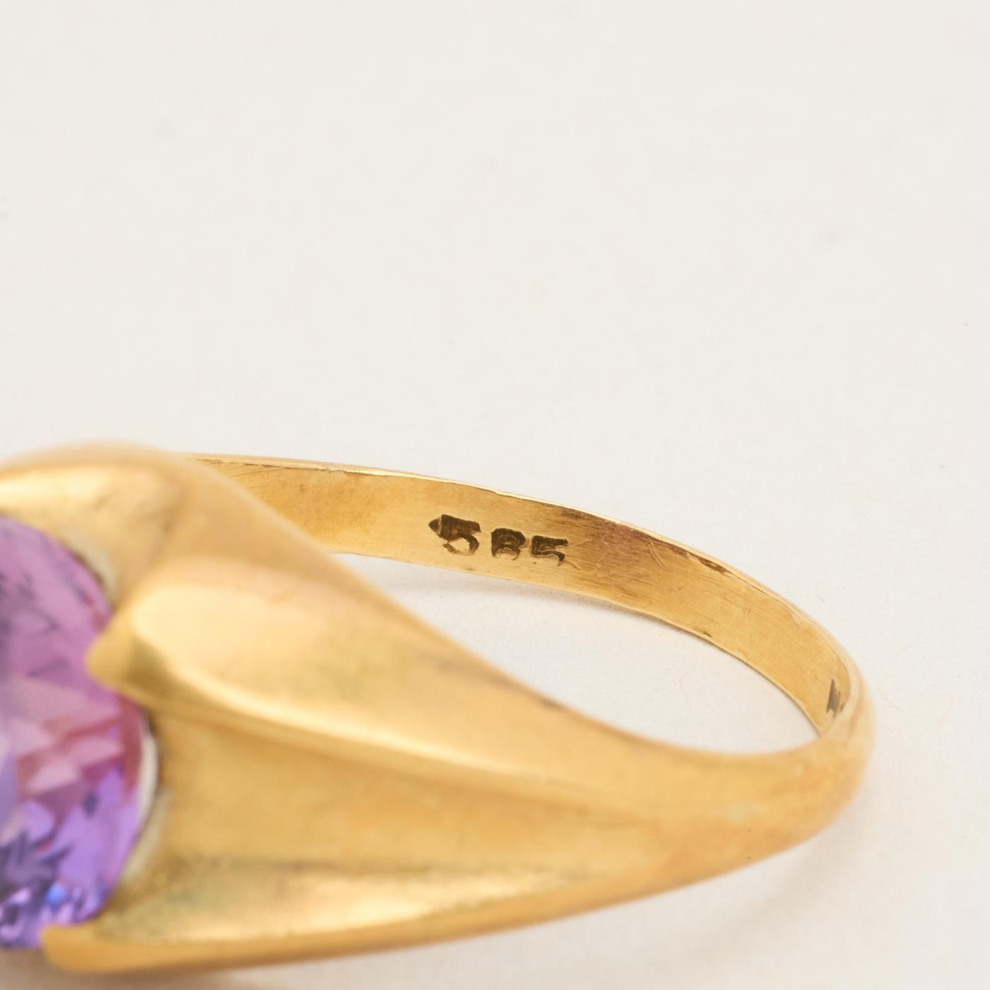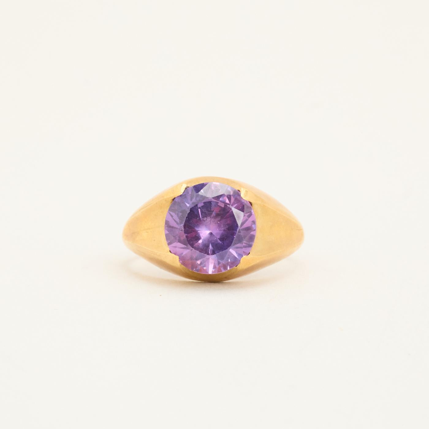Signetring i 14 karat med lilla sten str. 59