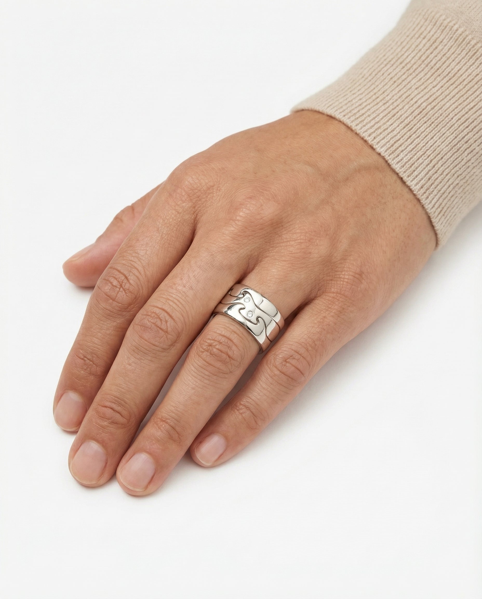 Georg Jensen bånd i 18K hvidguld med diamanter (0.04 ct), Str. 51