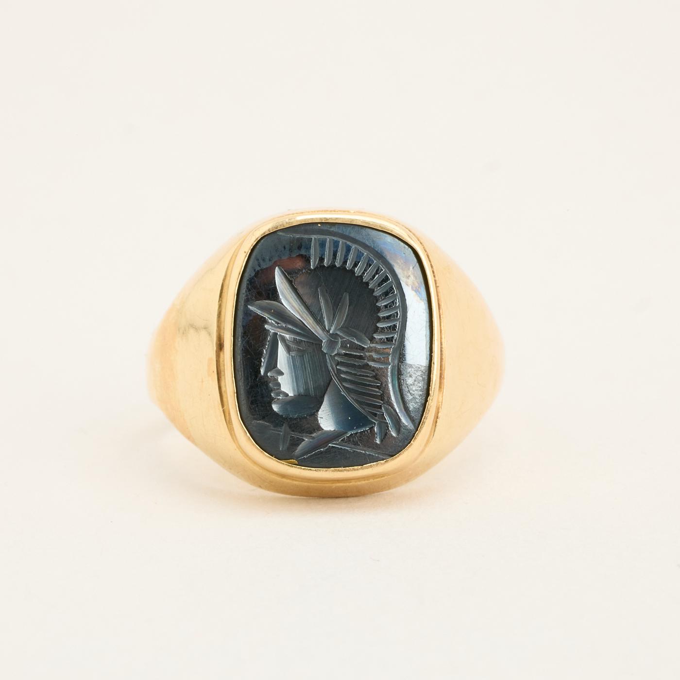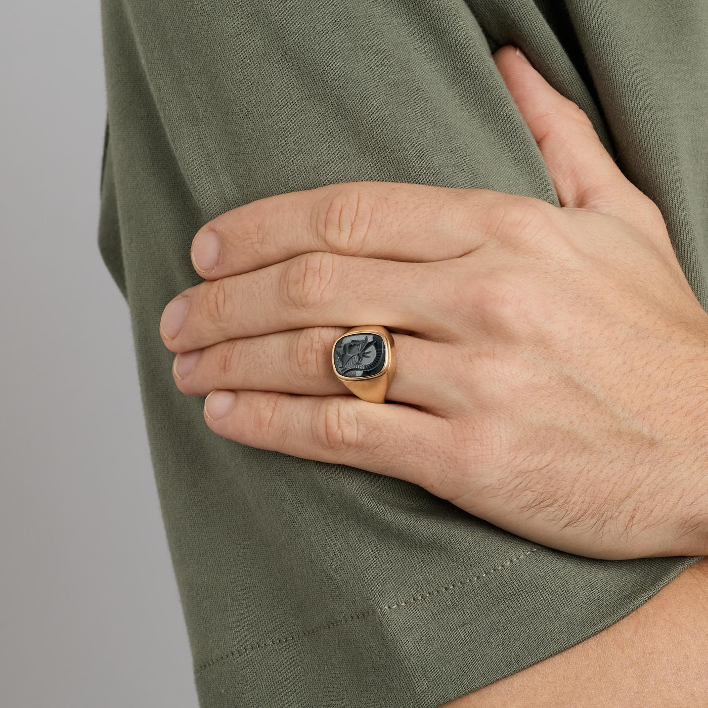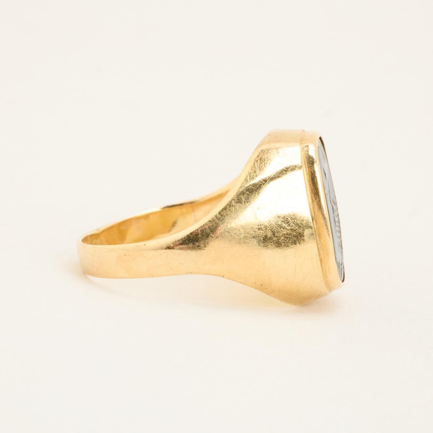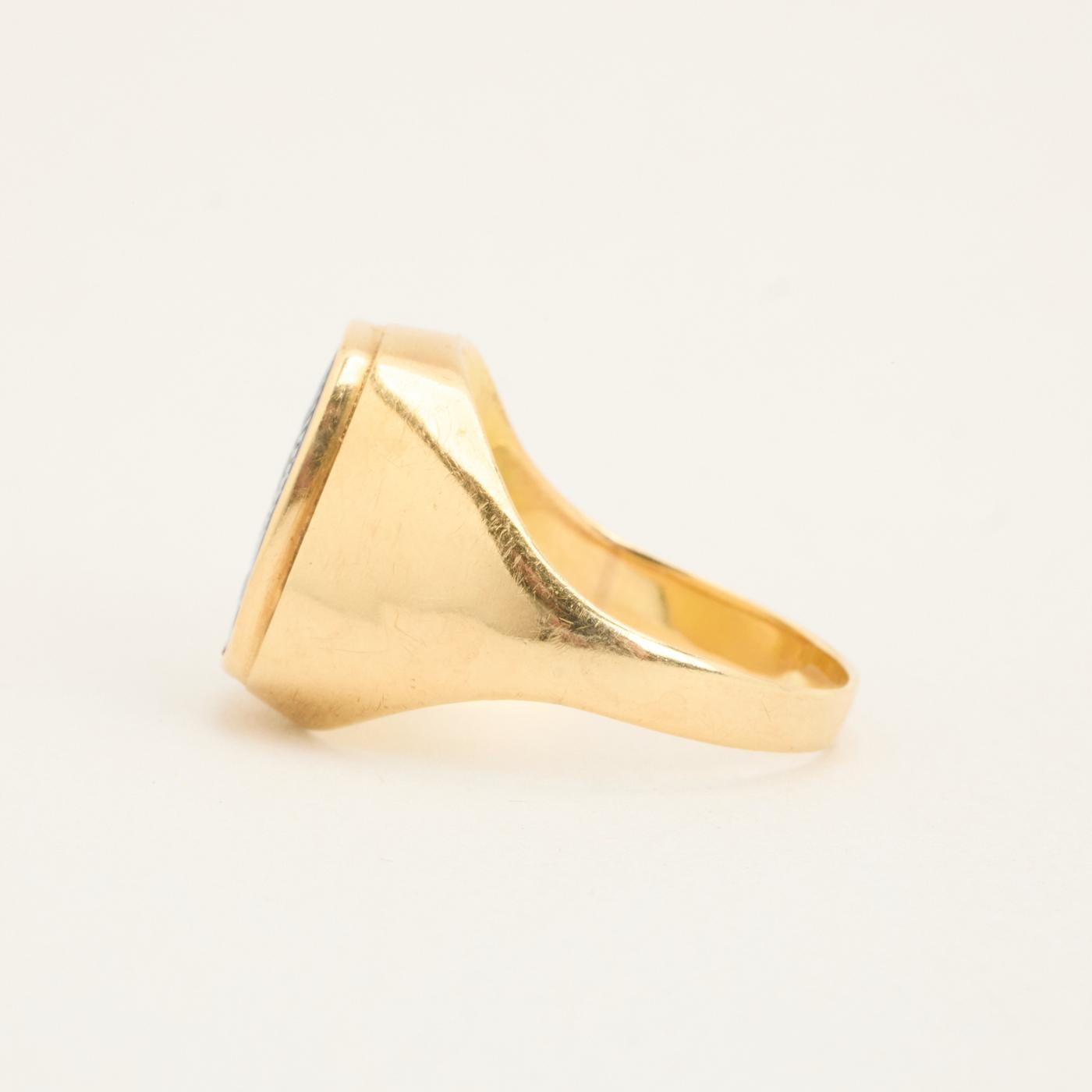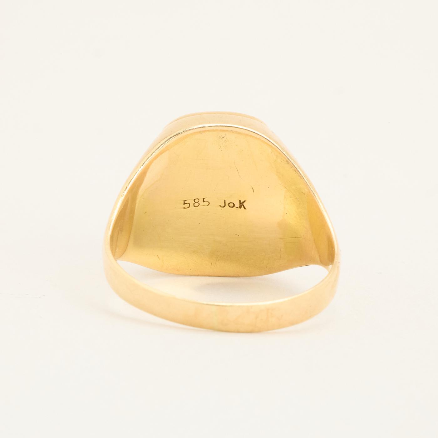 Signetring i 14K guld med sort sten, str. 62, 4.21 g