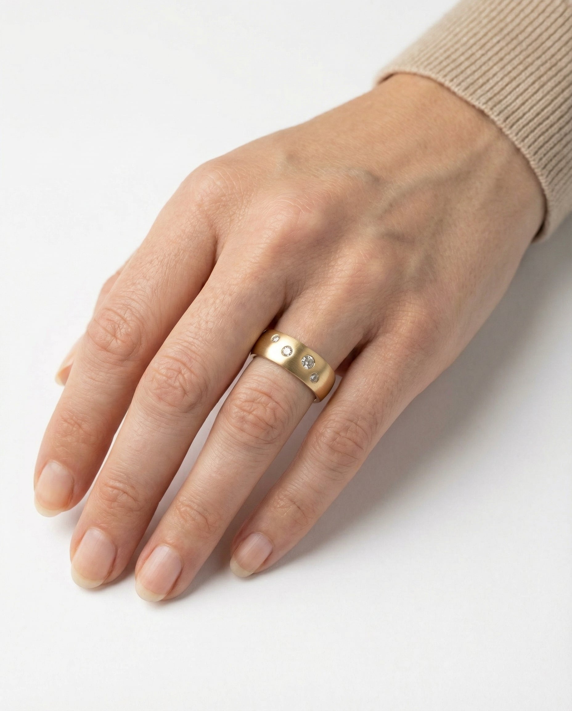 Bånd i 14K guld og hvidguld med diamanter (0.04 ct), Str. 54