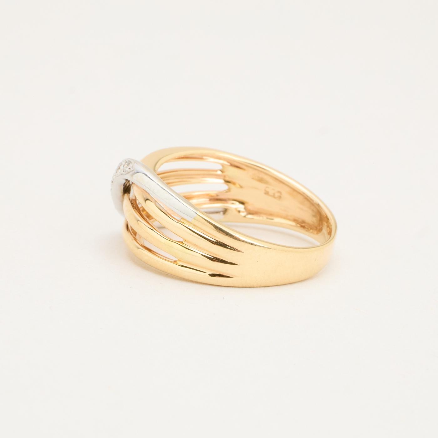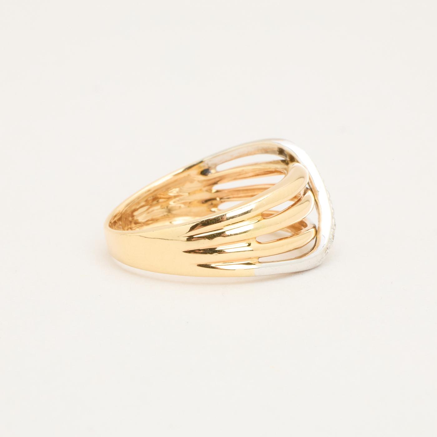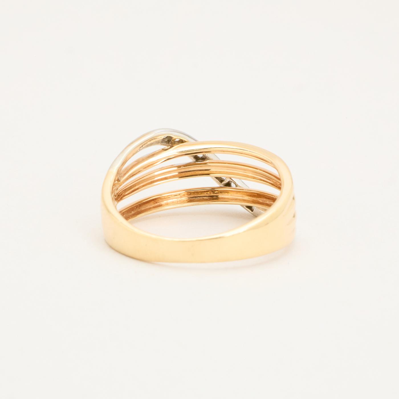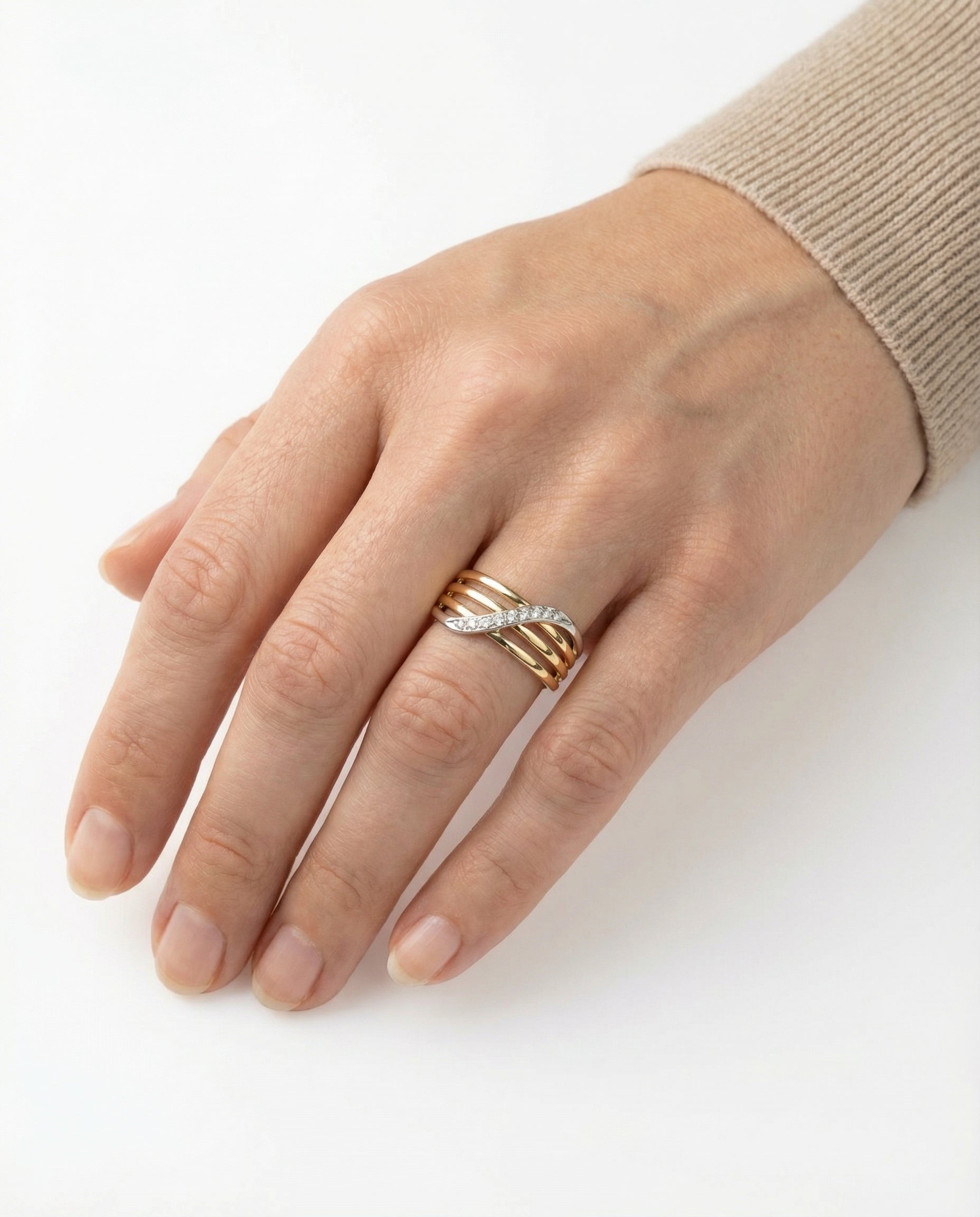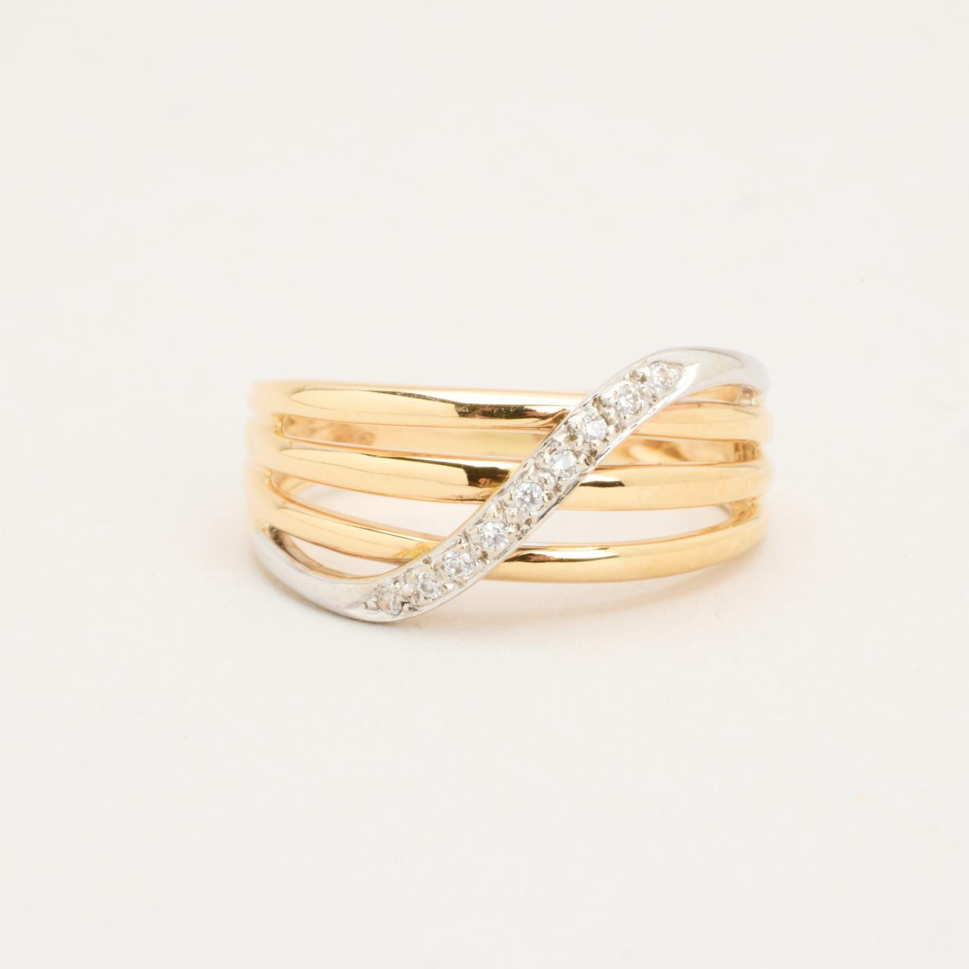 Crossoverring i 14K guld og hvidguld med flere zirkoniaer, Str. 49