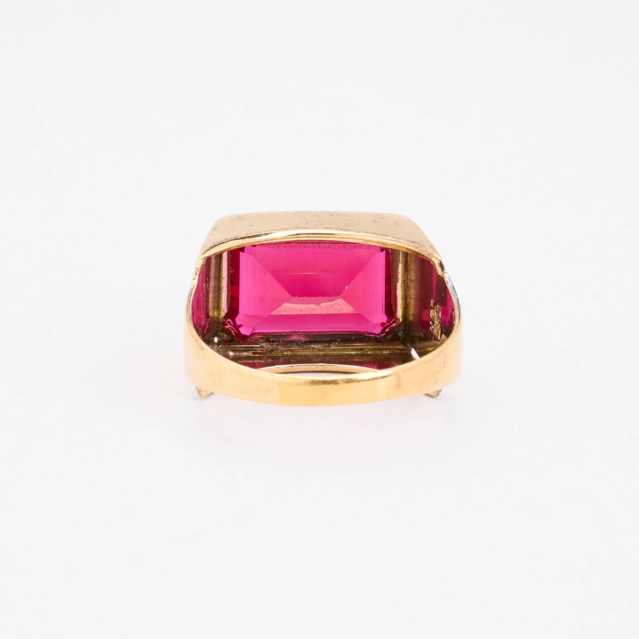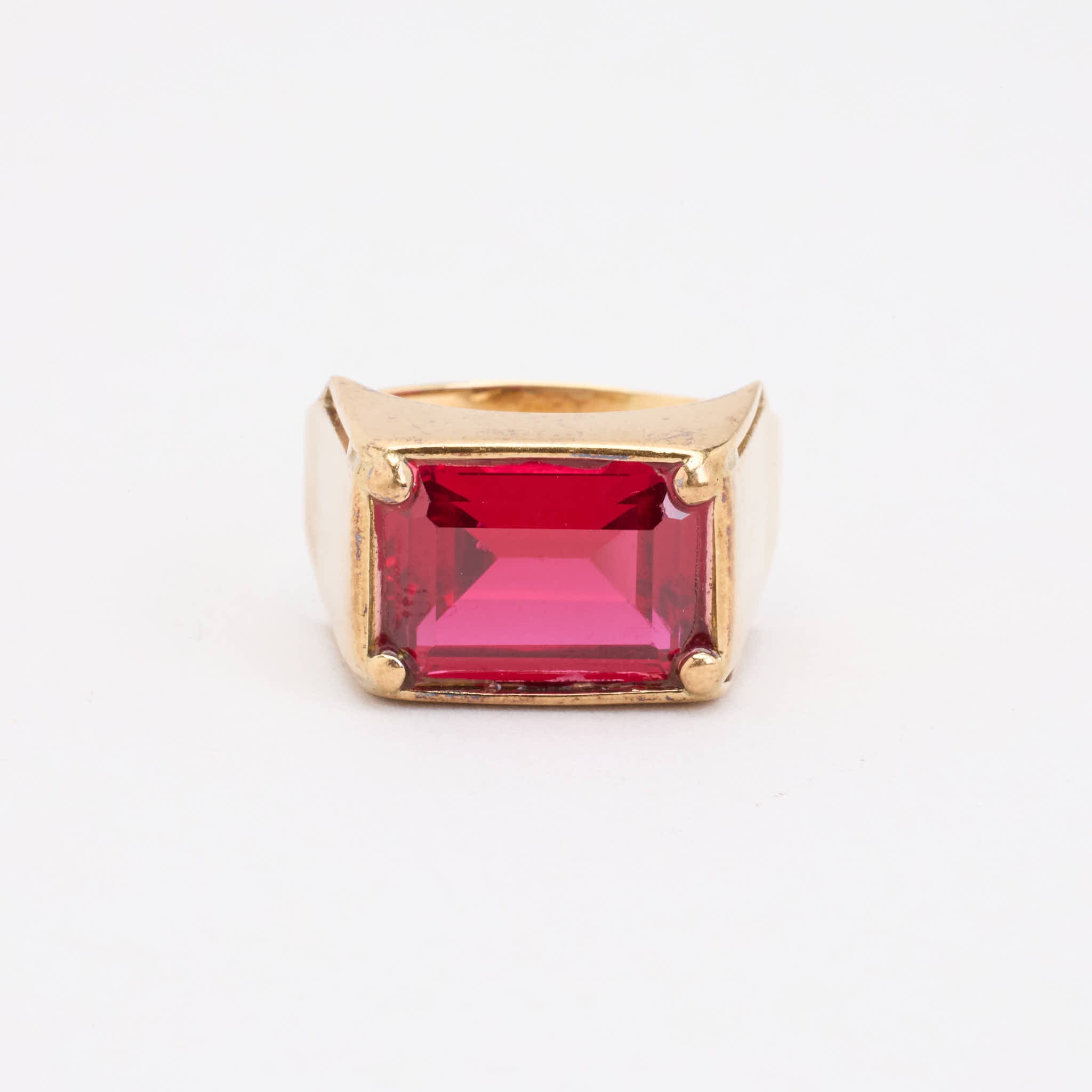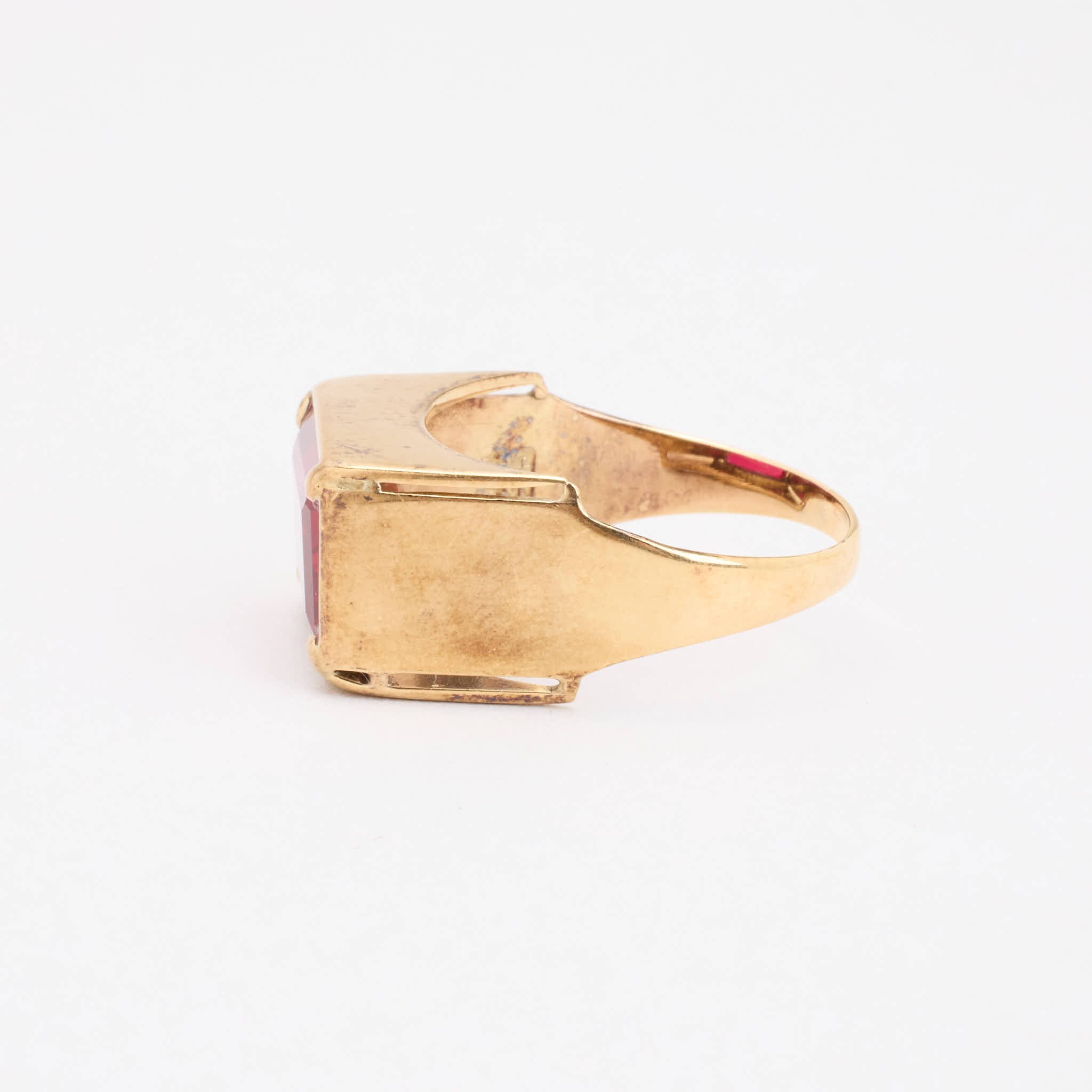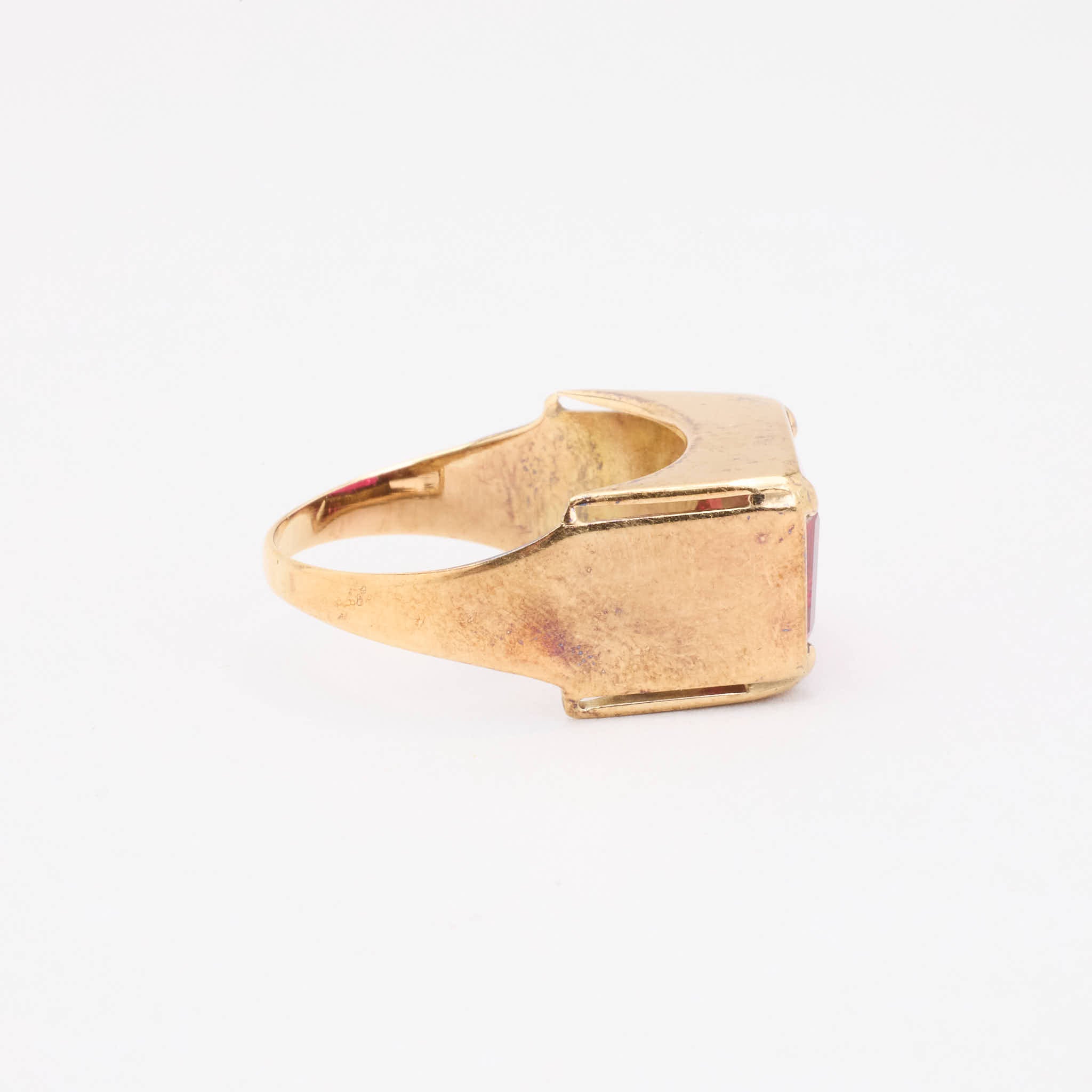 Signetring i 14K guld med en rød sten, Str. 61, 6.12 g