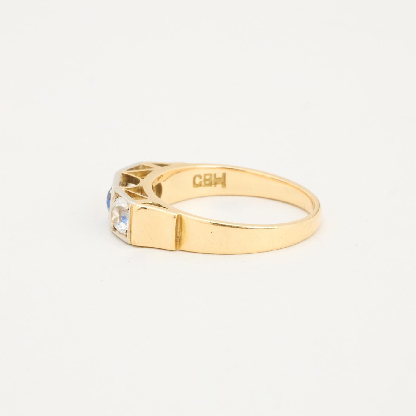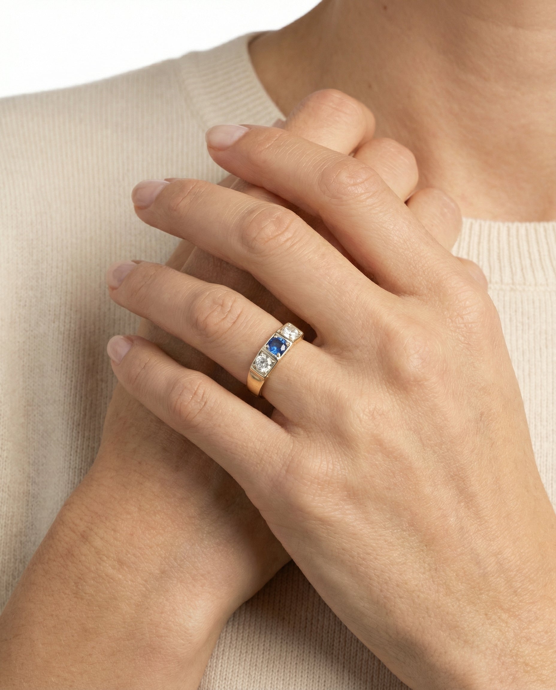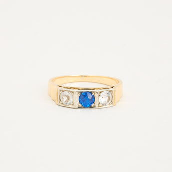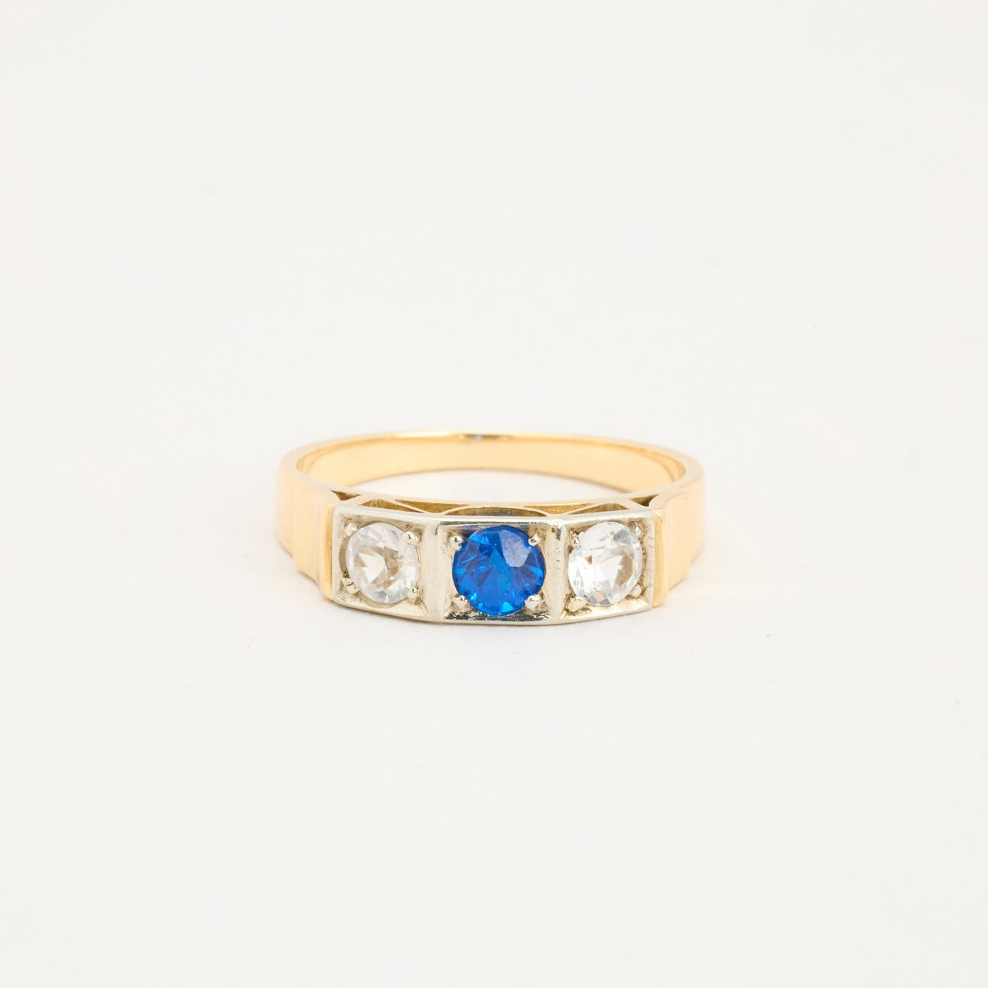 Trestensring i 14 karat med flerfarvede sten str. 51