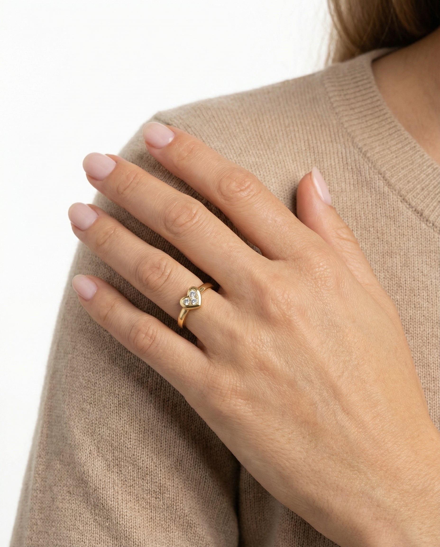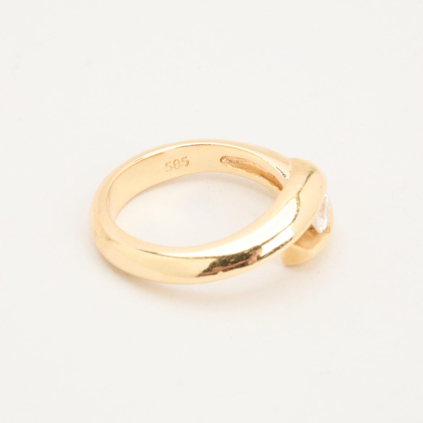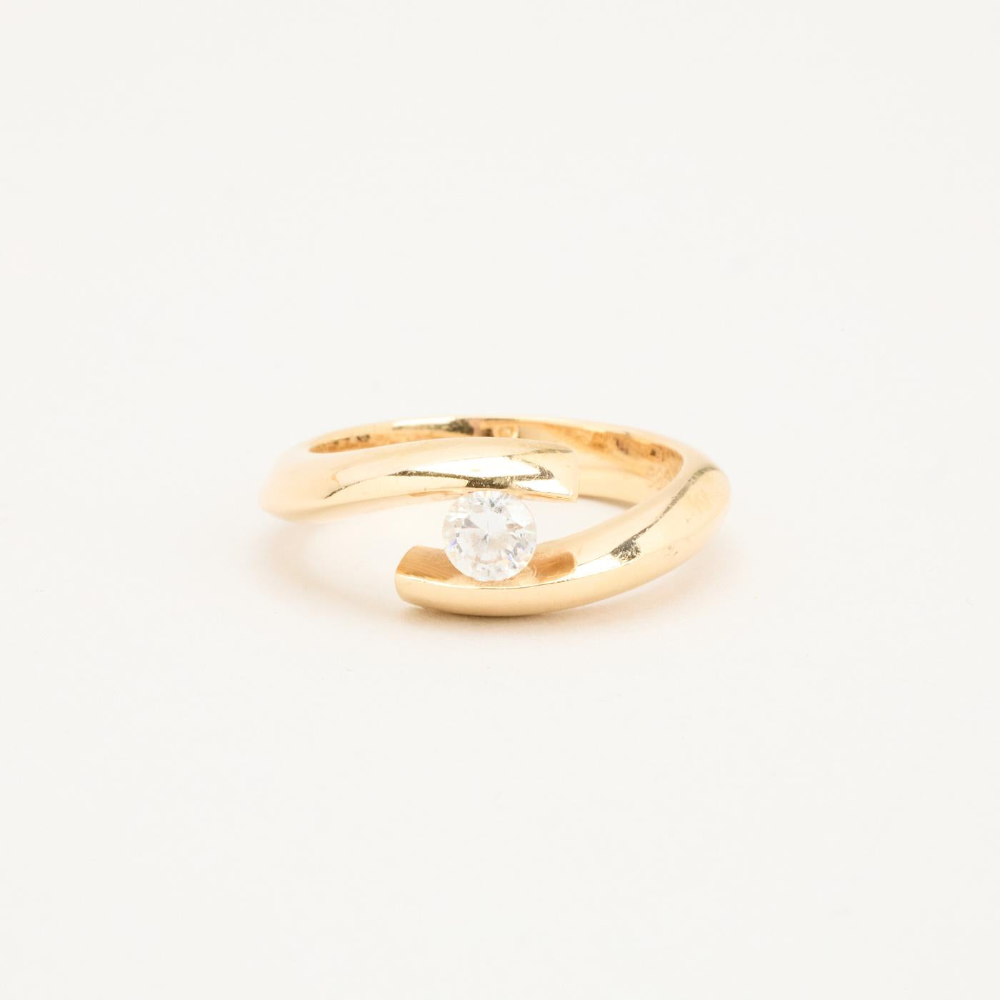 Crossoverring i 14K guld med zirkonia, Str. 54