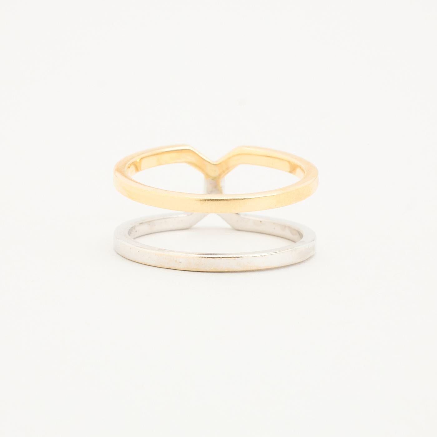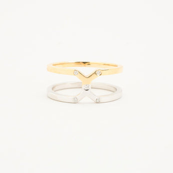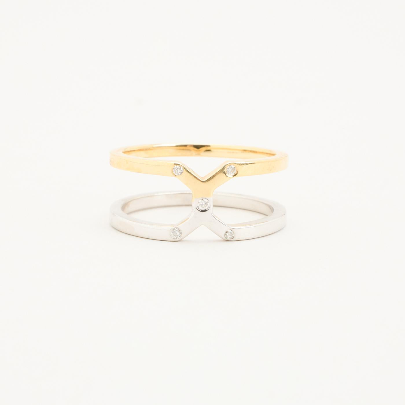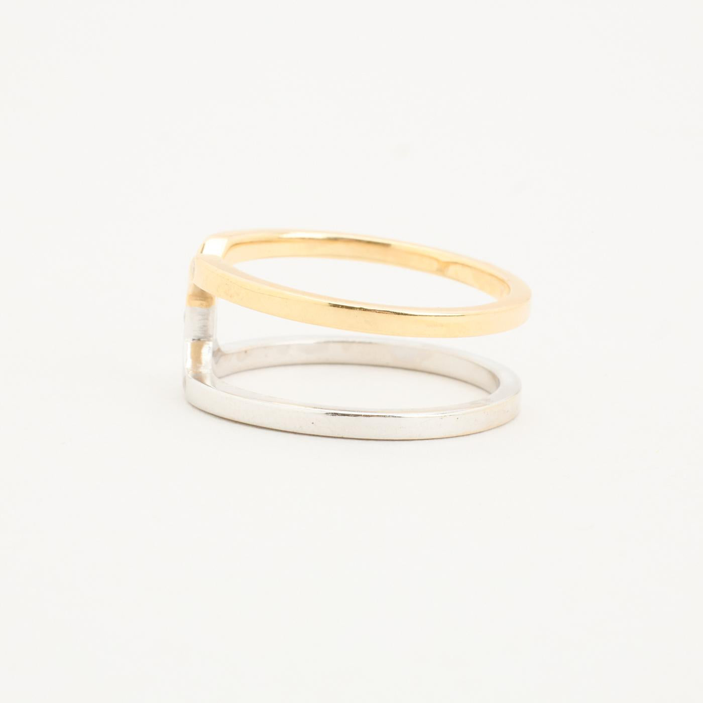 Krydsring i 14K guld og hvidguld med diamanter (0.05 ct), Str. 59