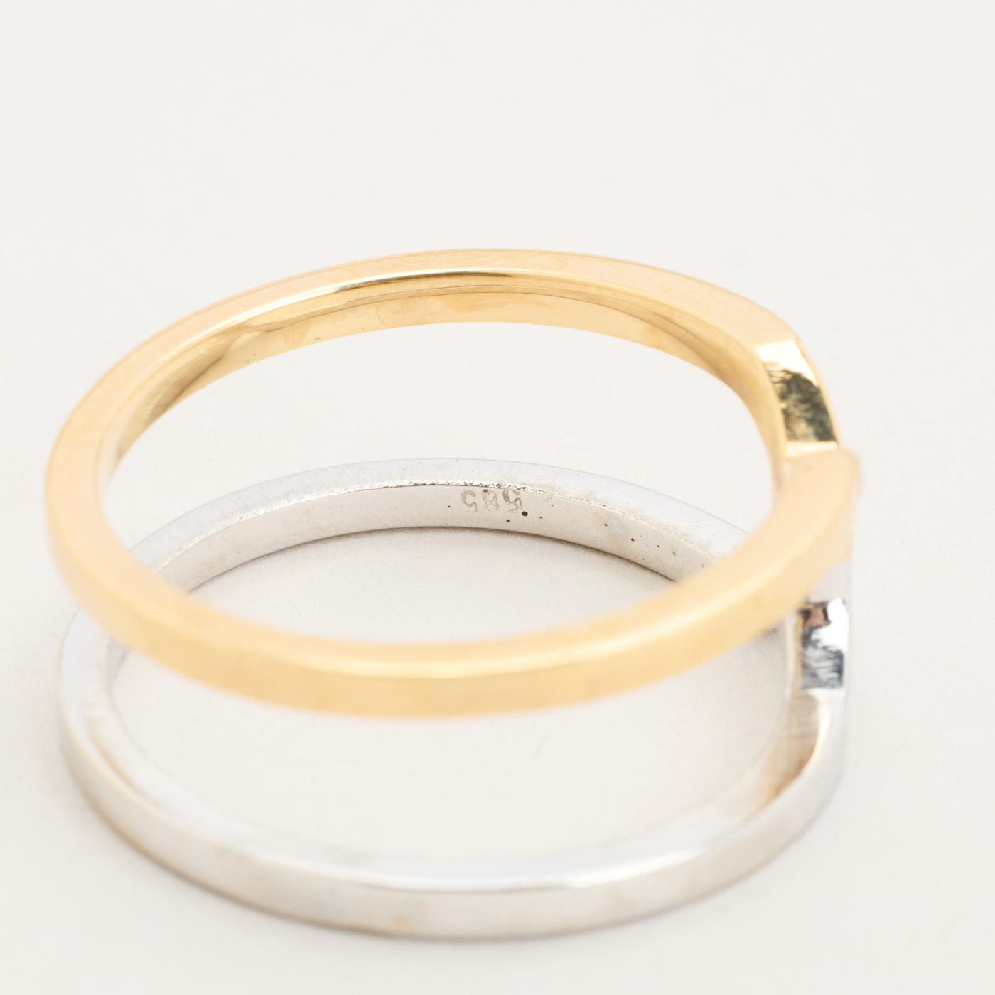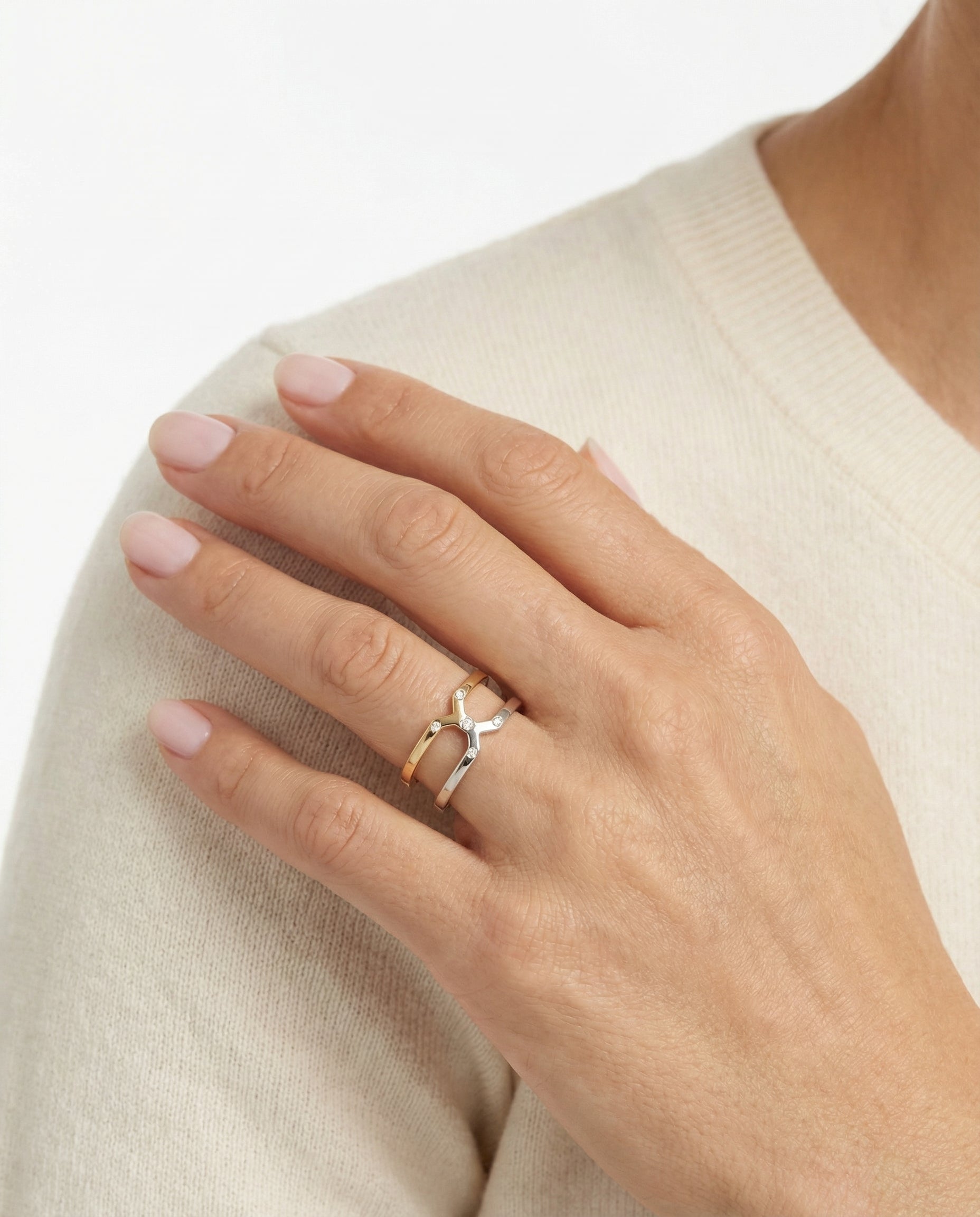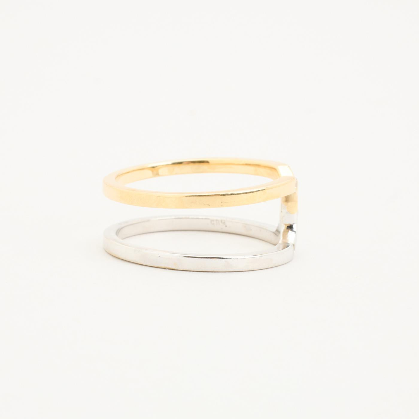 Krydsring i 14K guld og hvidguld med diamanter (0.05 ct), Str. 59