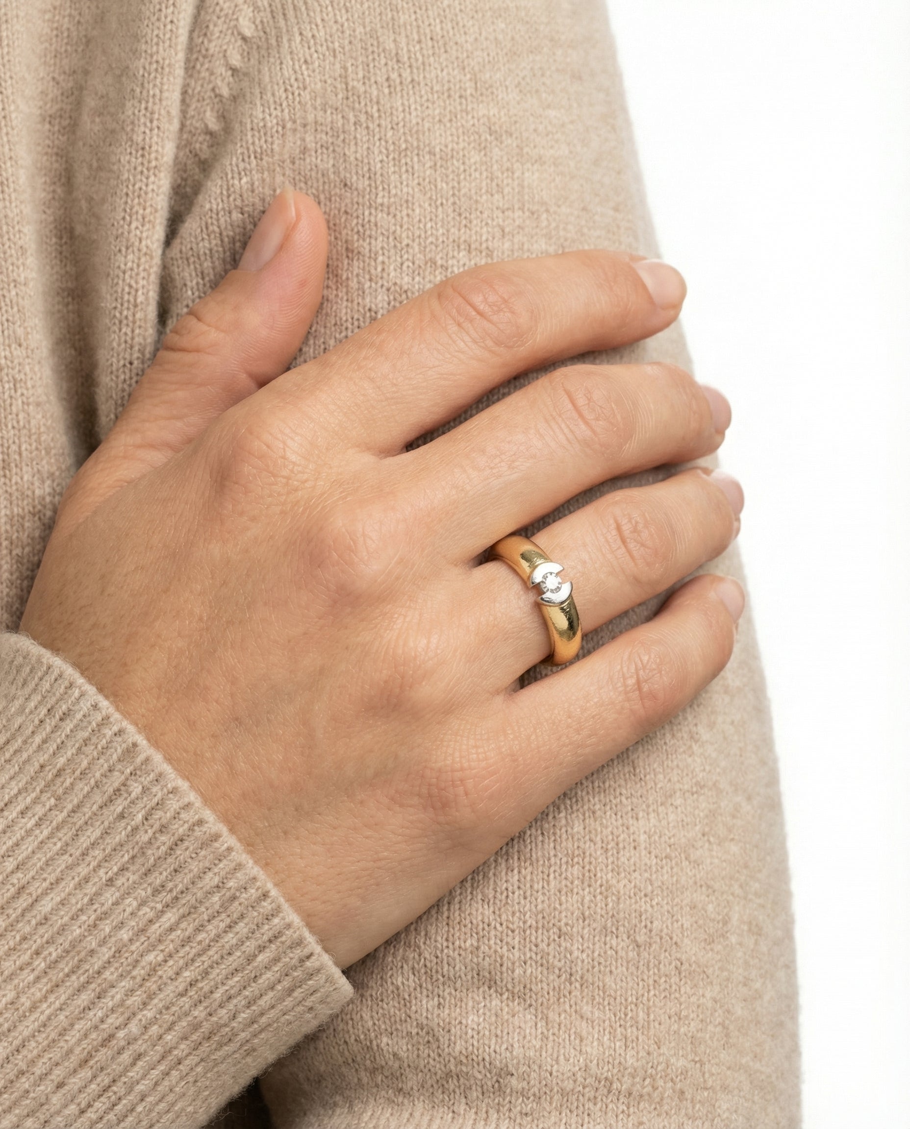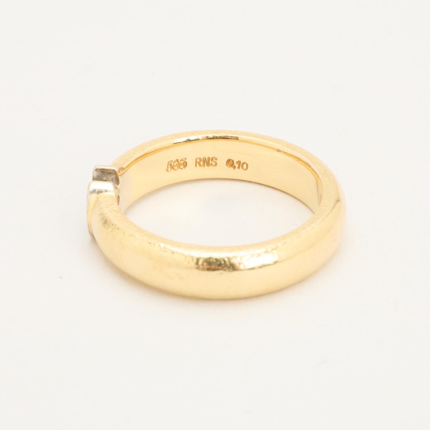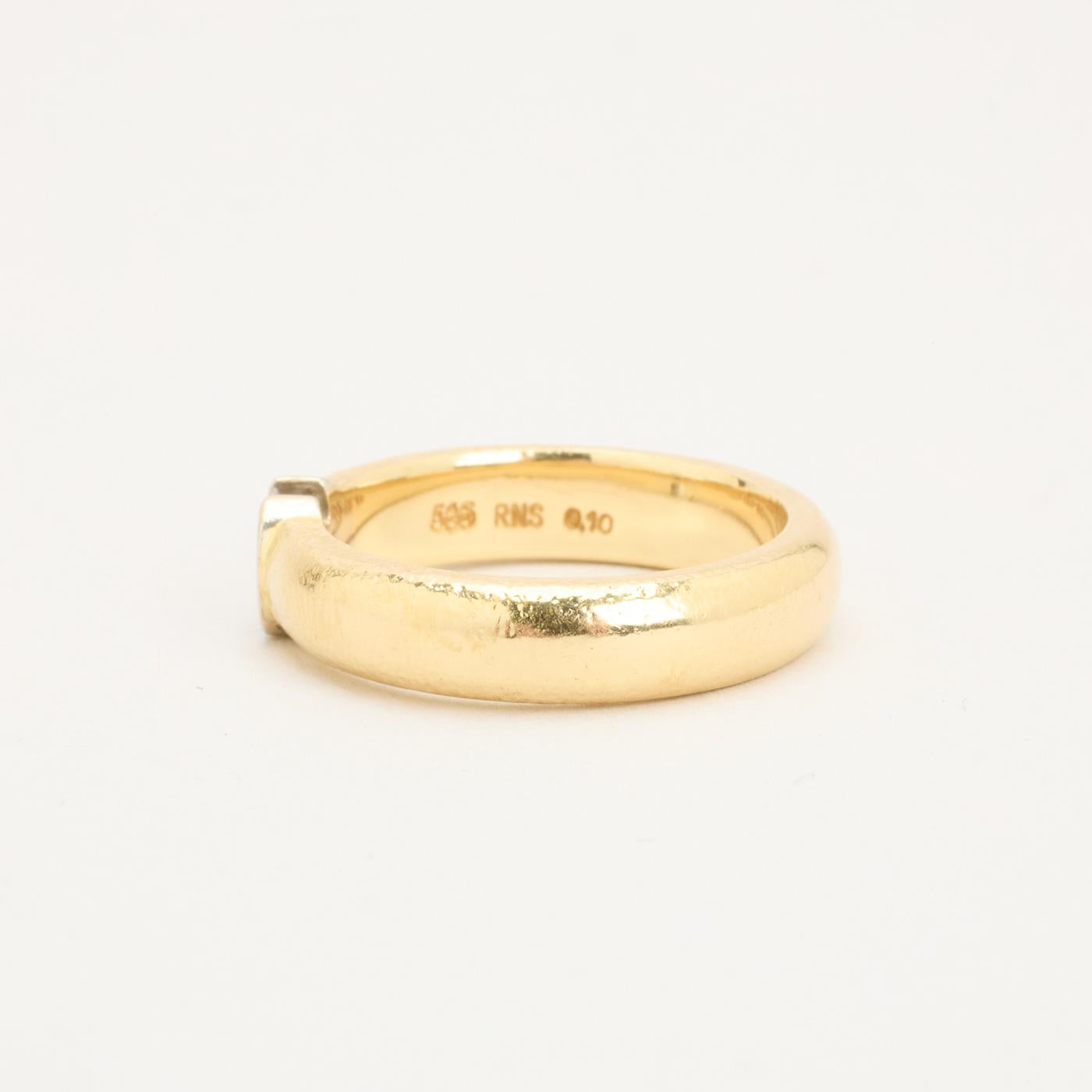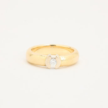 Bånd i 14K guld og hvidguld med en diamant (0.11 ct), Str. 56