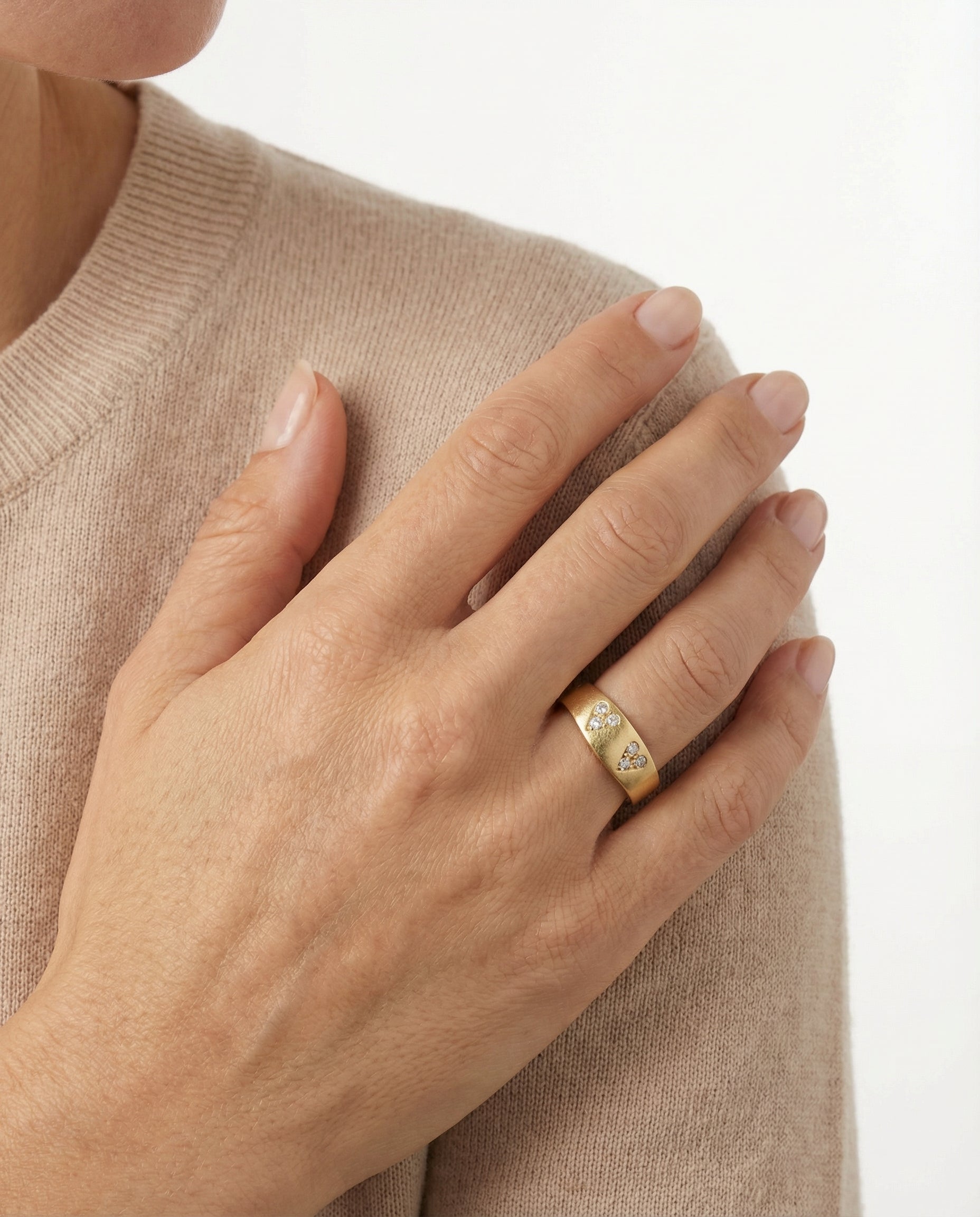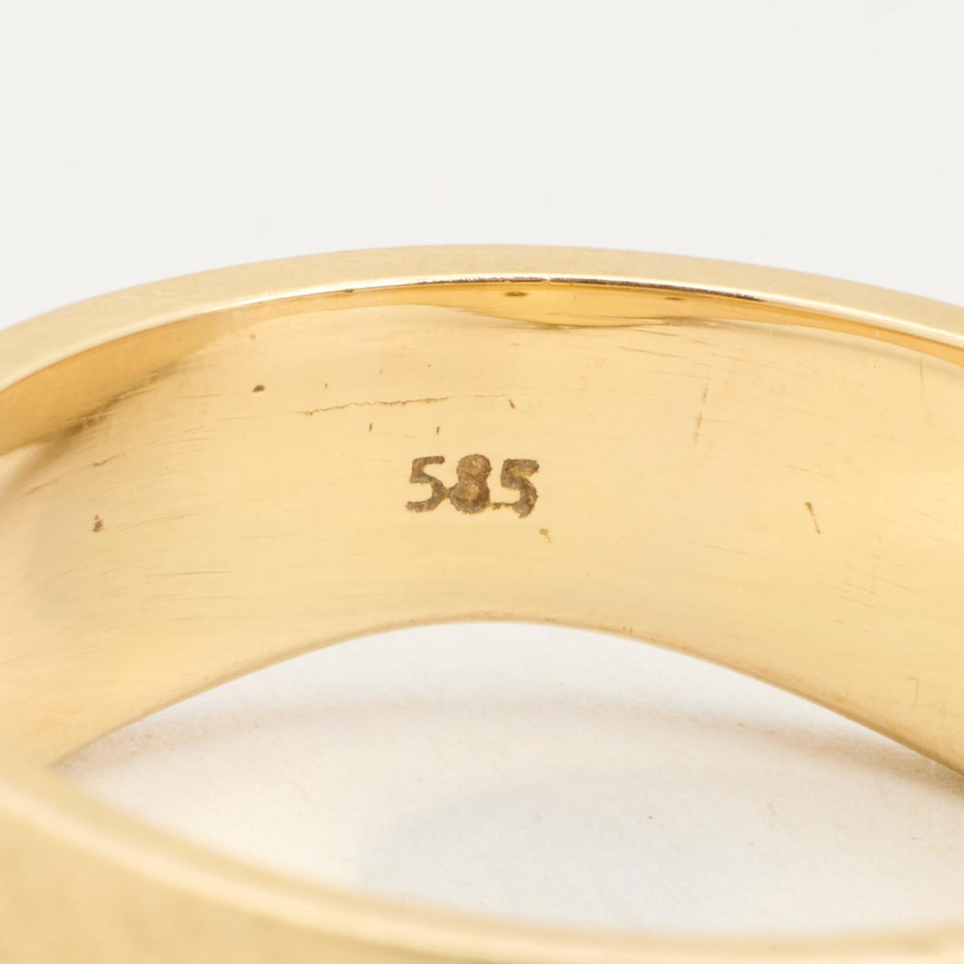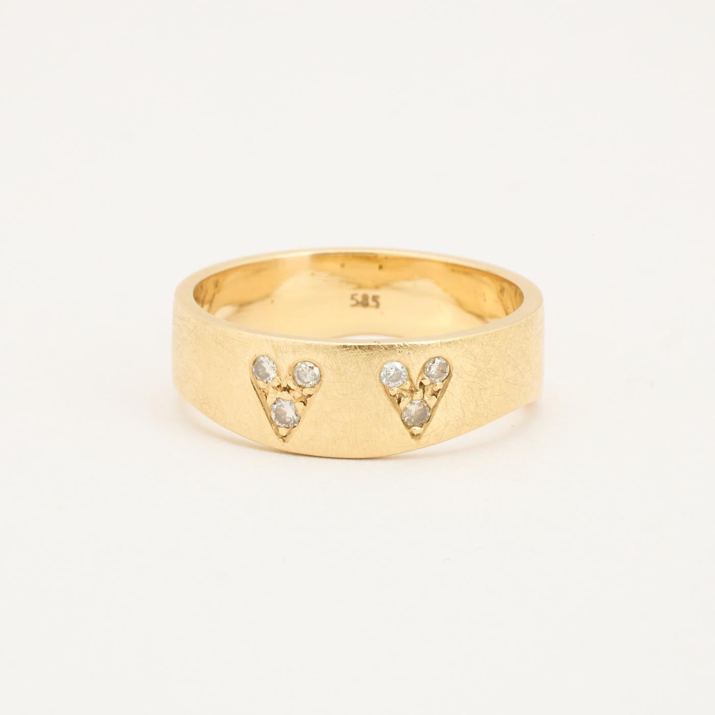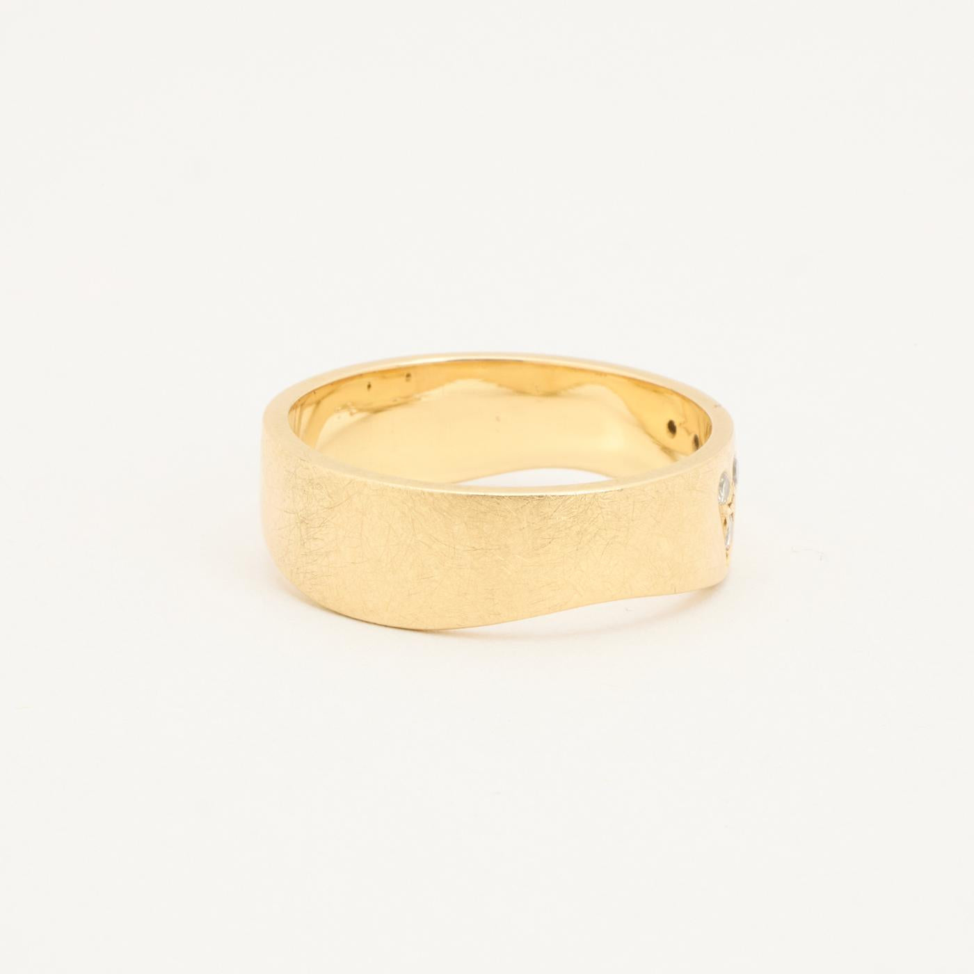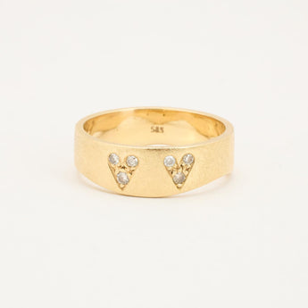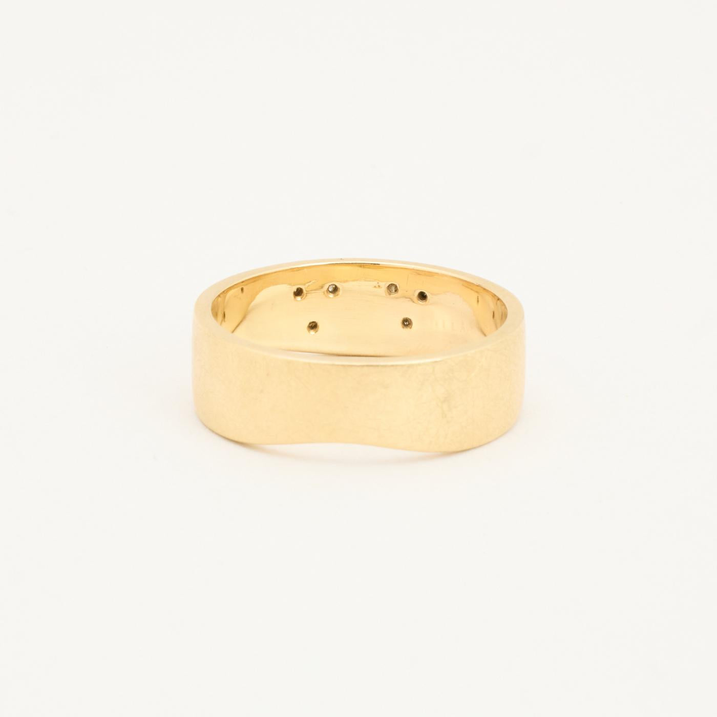 Bånd i 14K guld med flere hvide sten (0.09 ct), Str. 62