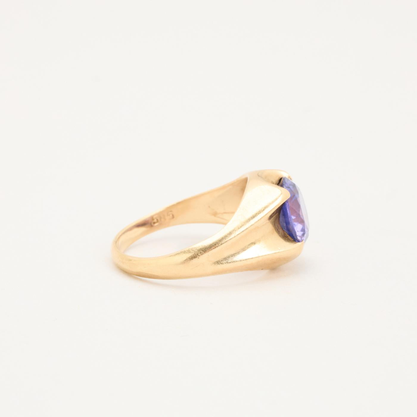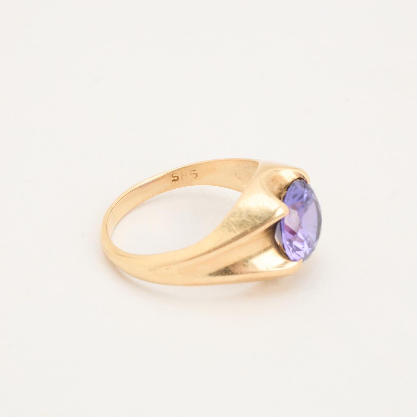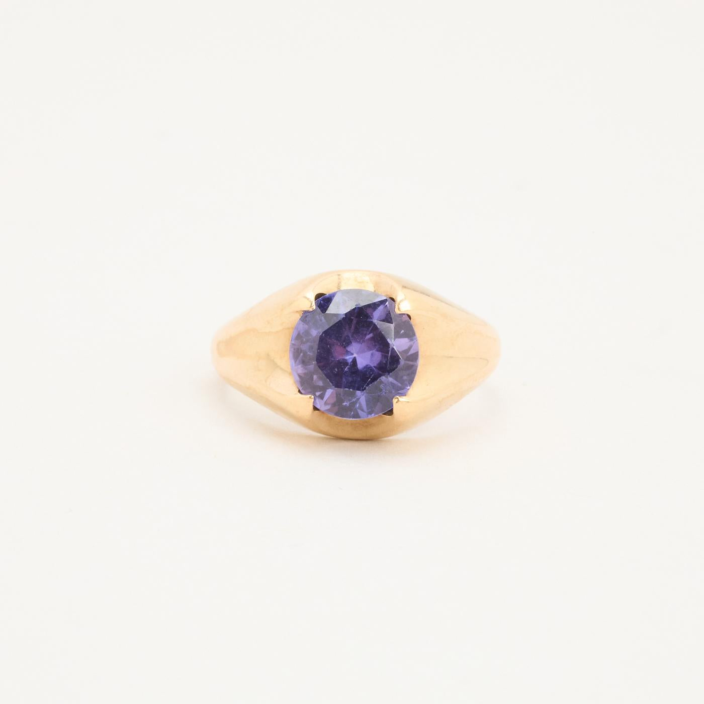 Signetring i 14 karat med lilla sten str. 51