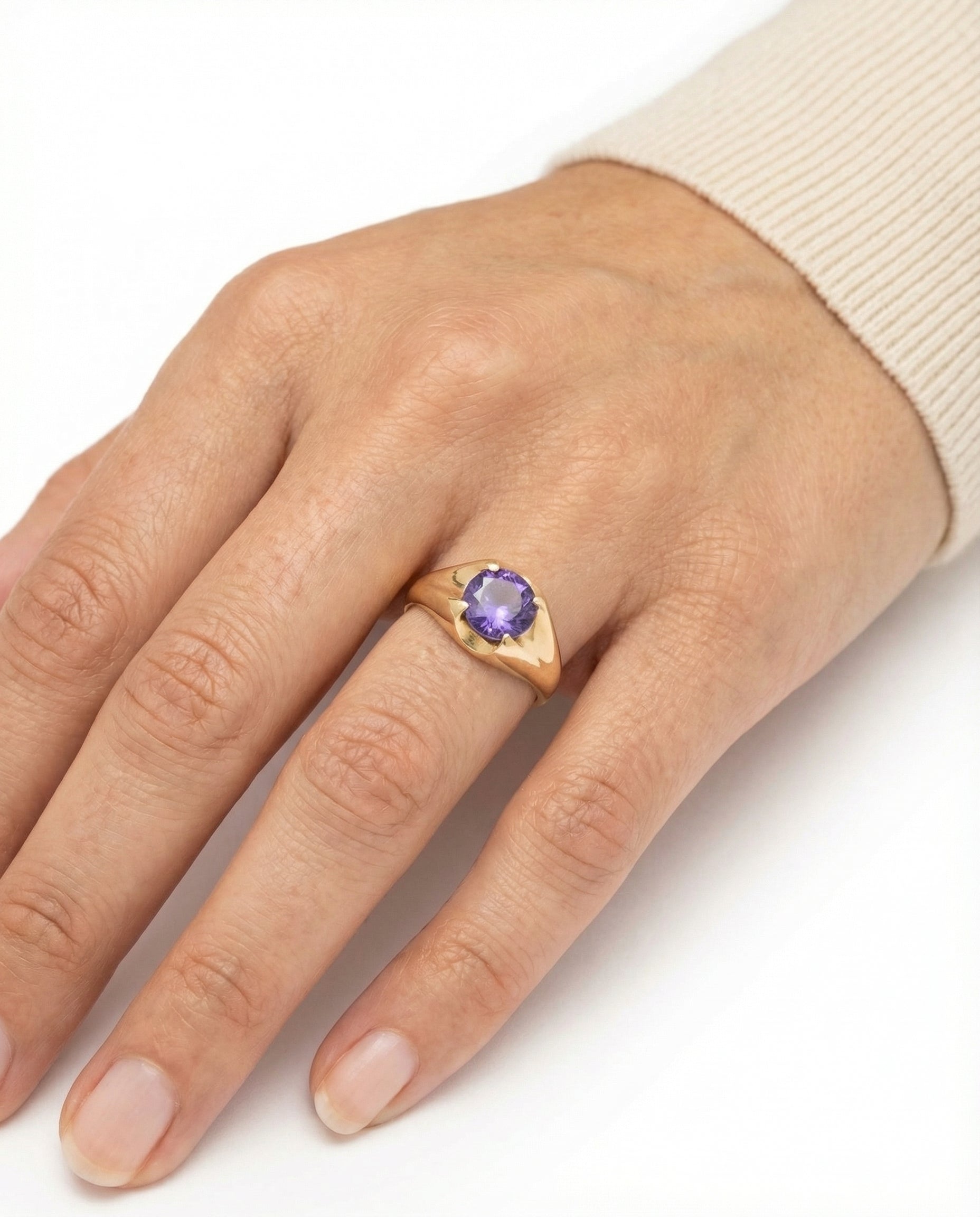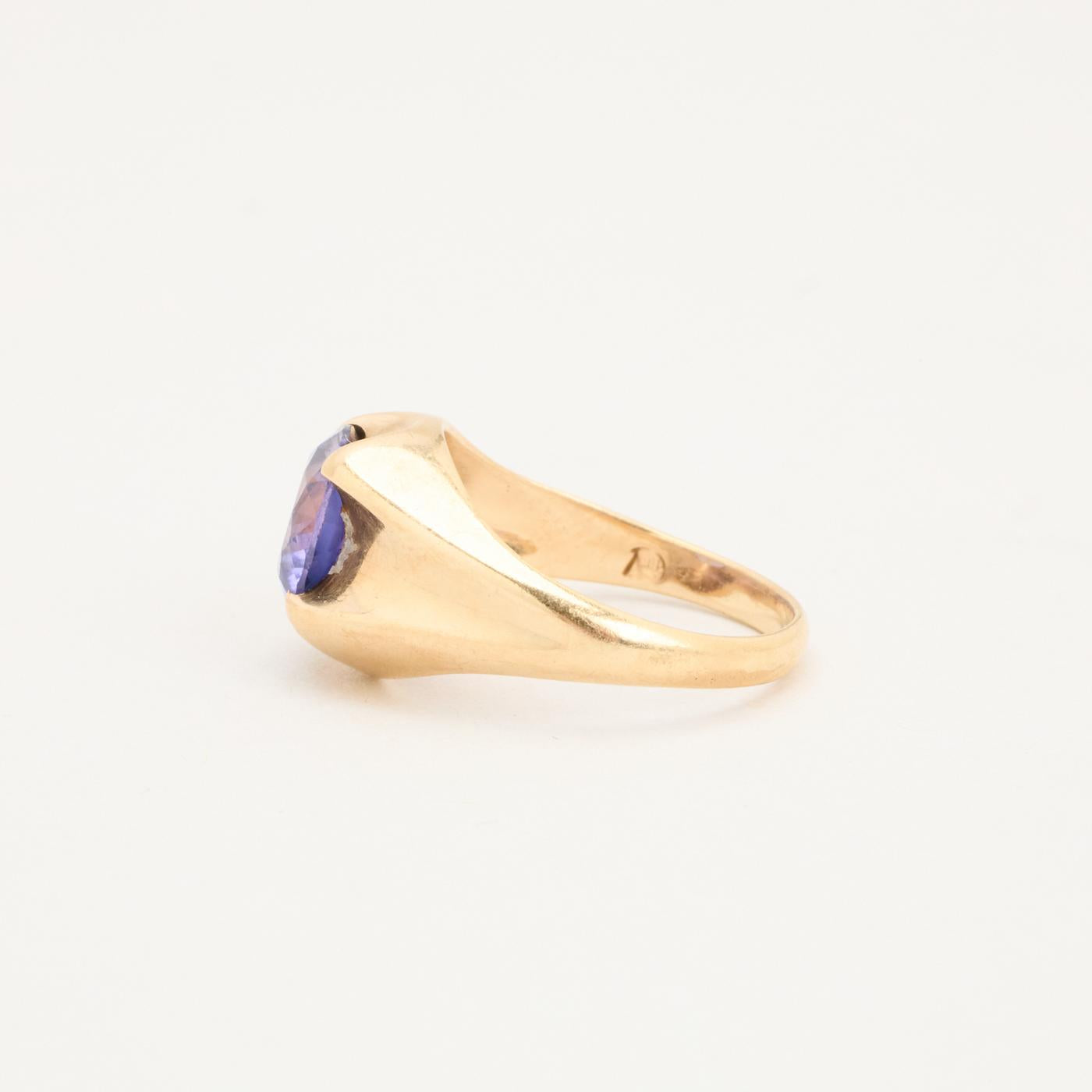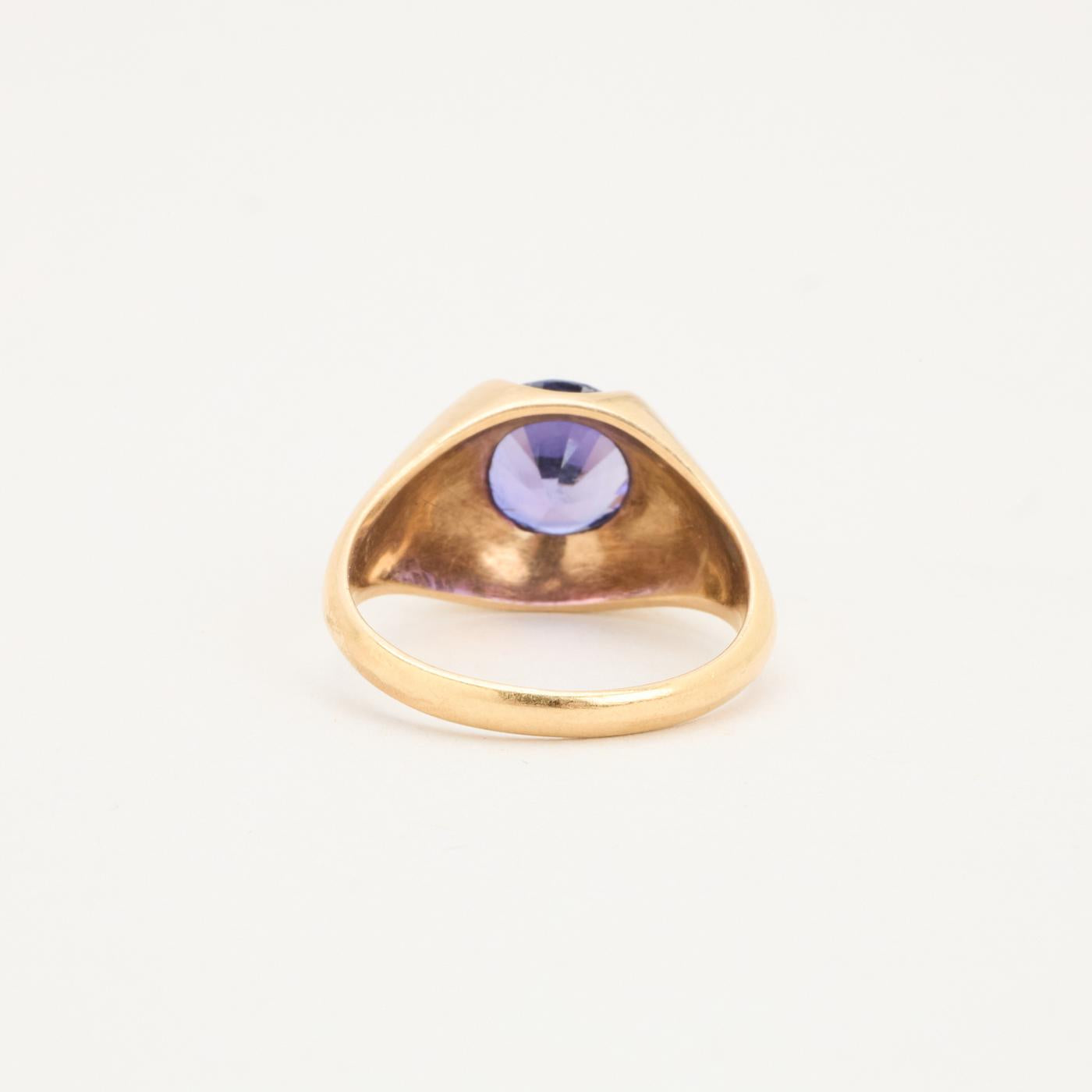 Signetring i 14 karat med lilla sten str. 51
