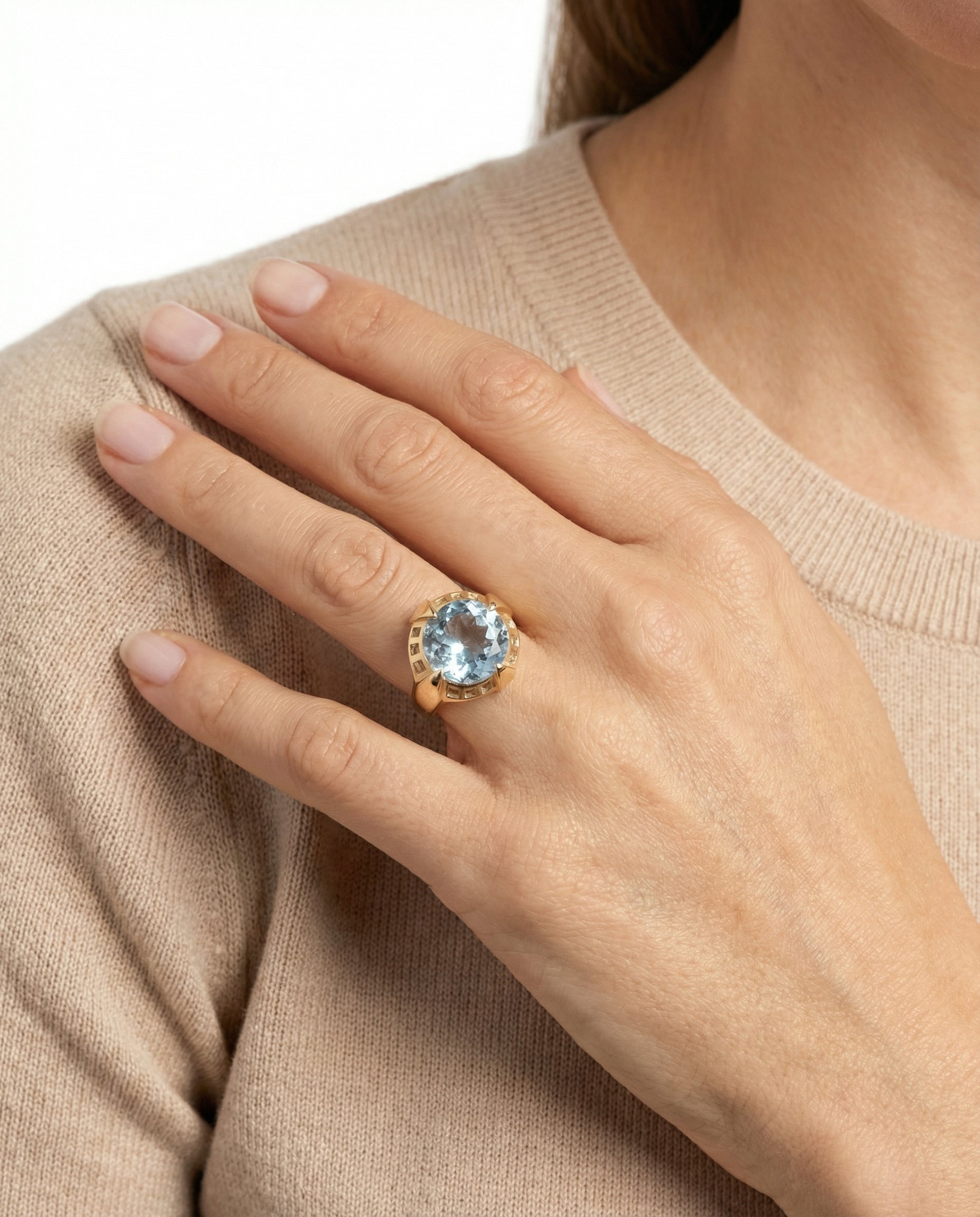 Cocktail ring i 14K guld med en syntetisk spinel, str. 49 - 50