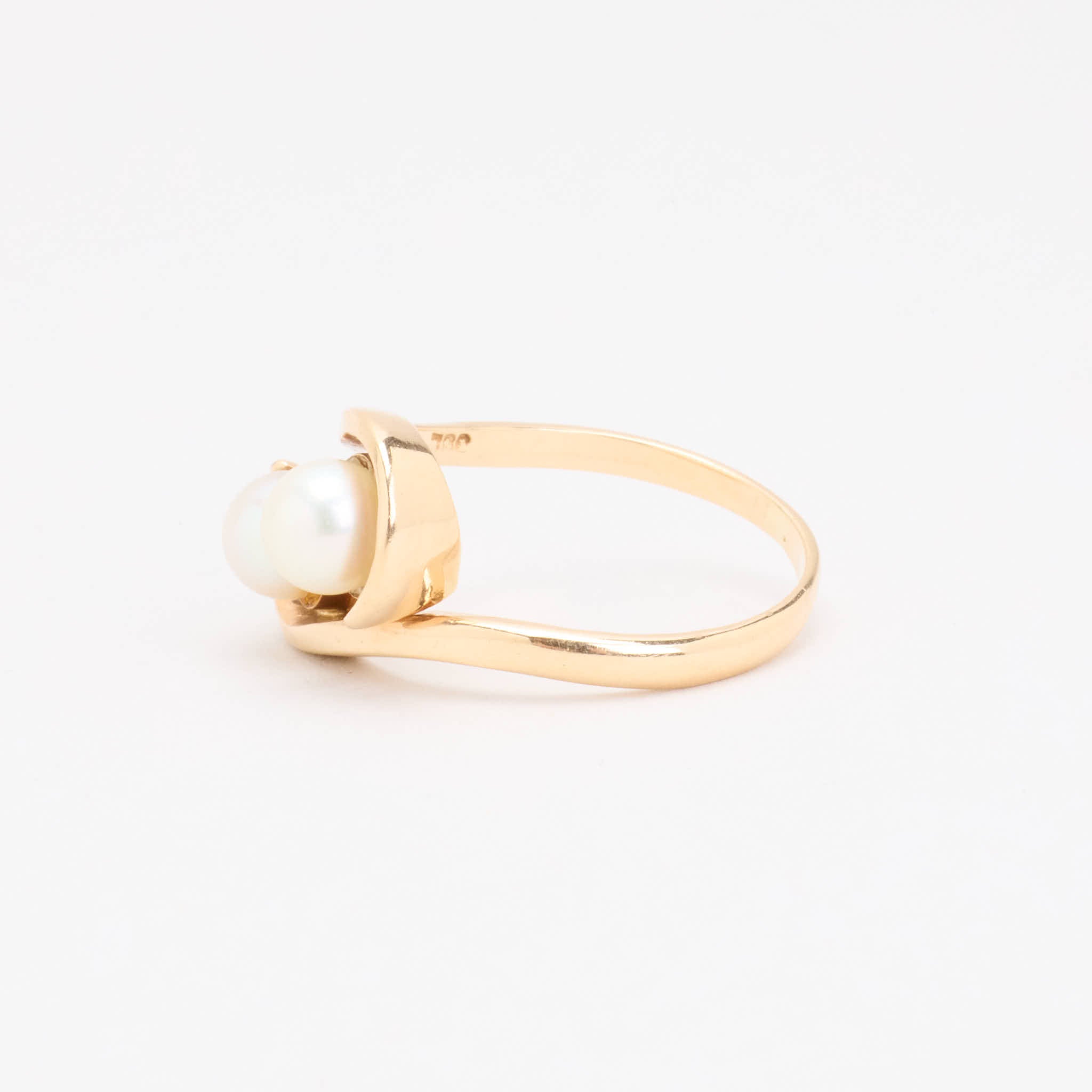 Perlering i 14 karat med en Perle str. 56