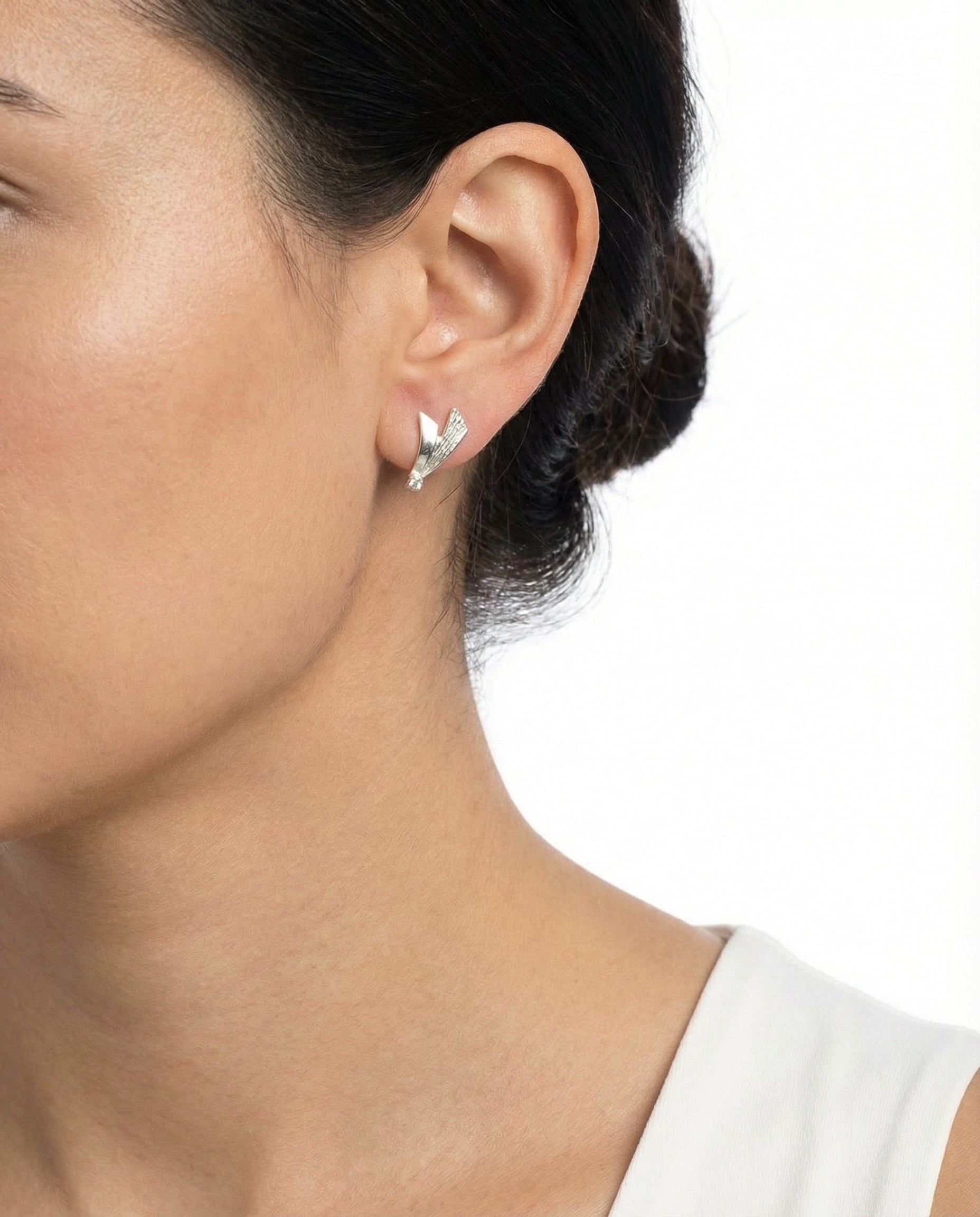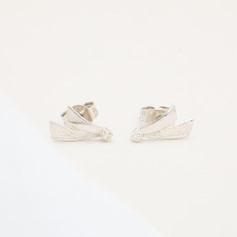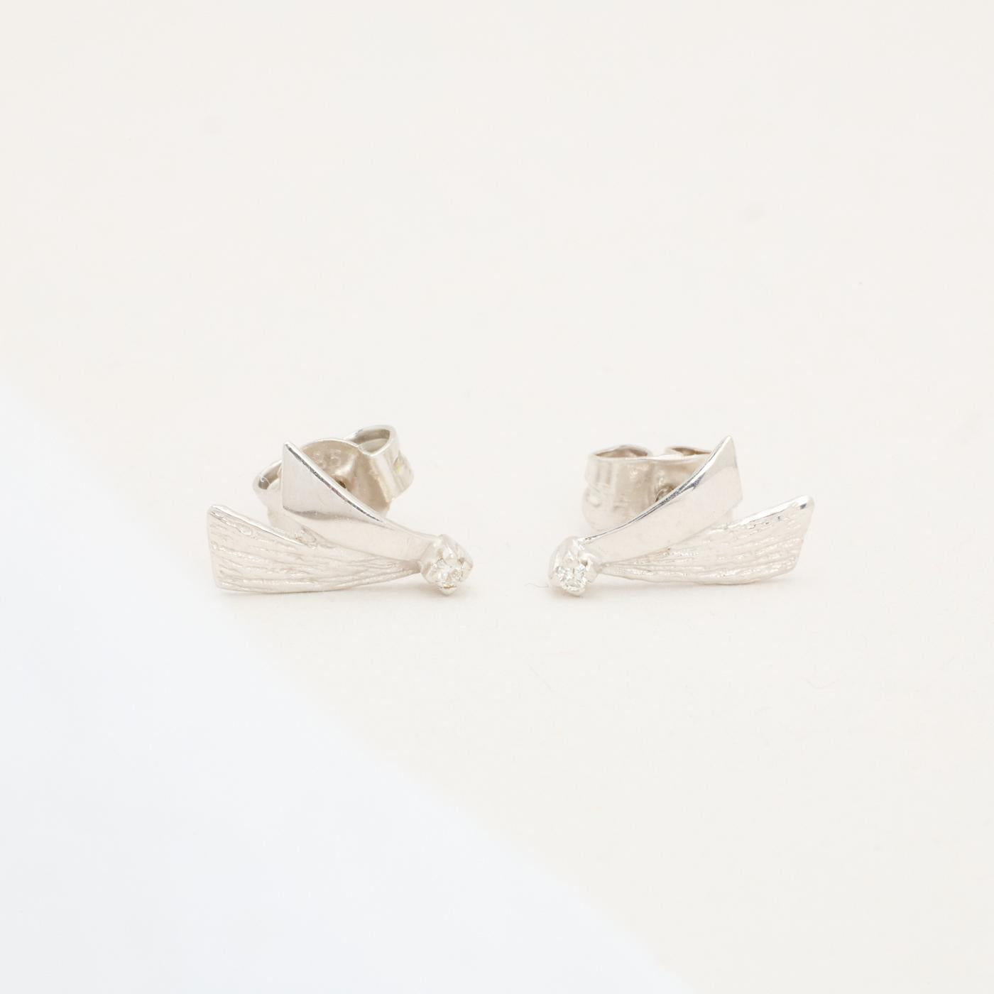 Øreringe med stik i 14 karat med hvid sten, 1.1 cm