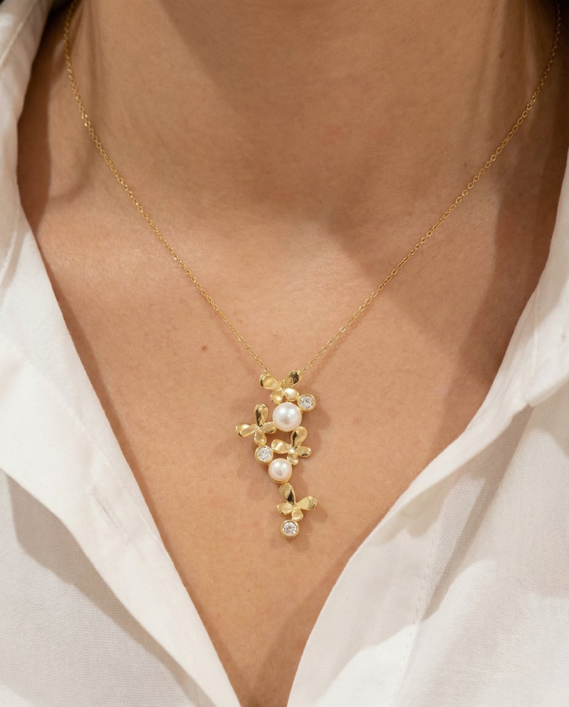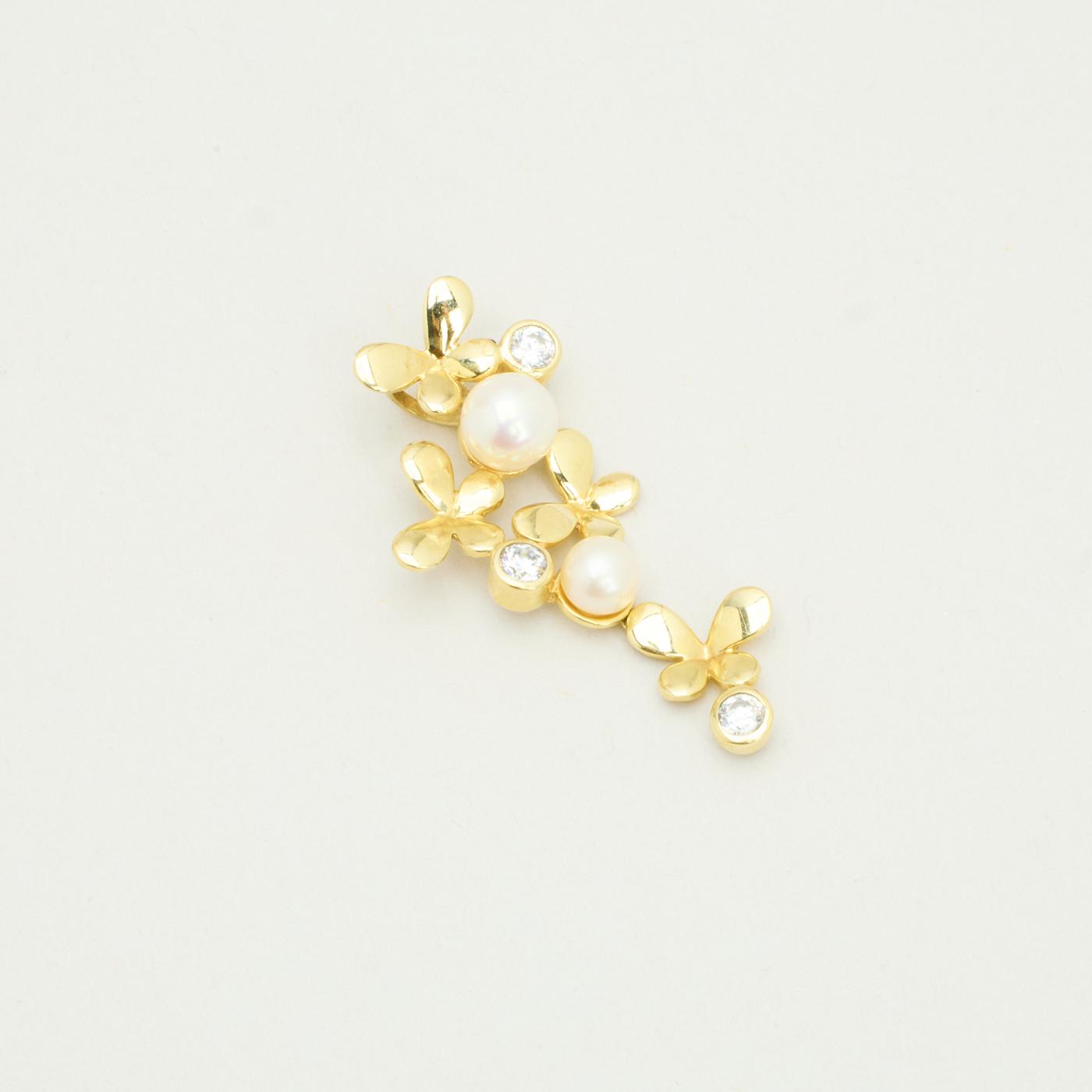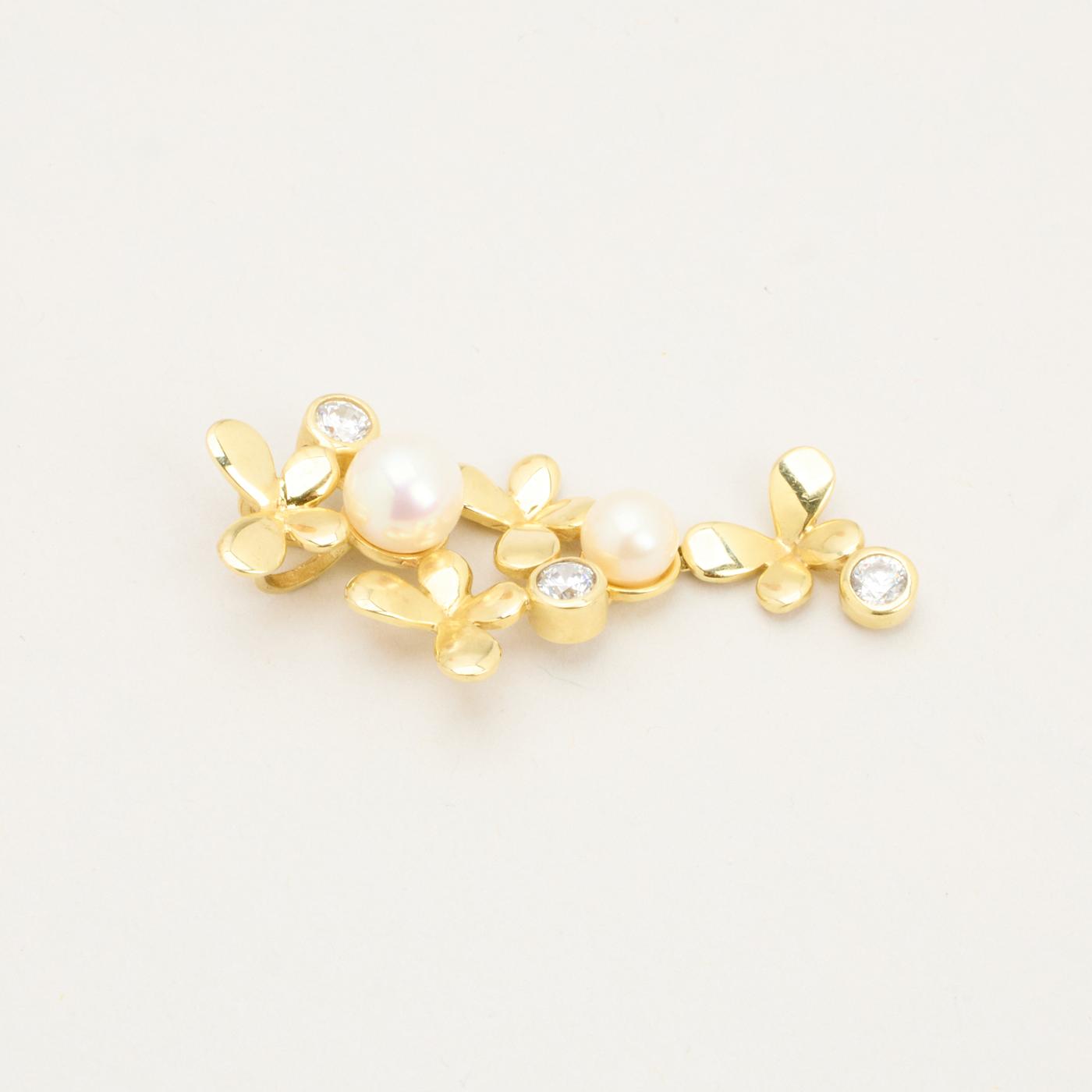 Vedhæng i 8K guld med flere zirkonia og perler, 3.5 cm